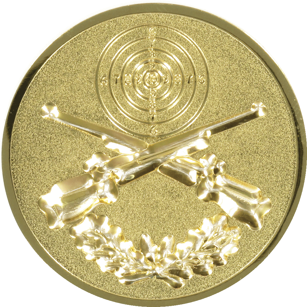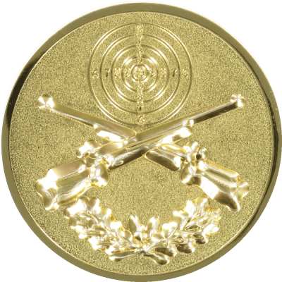 Het 3D embleem met gekruiste geweren, vervaardigd uit aluminium, geeft extra flair aan je trofeeën. Met zijn 50 mm formaat en goudkleurige uitstraling is het een echte blikvanger.