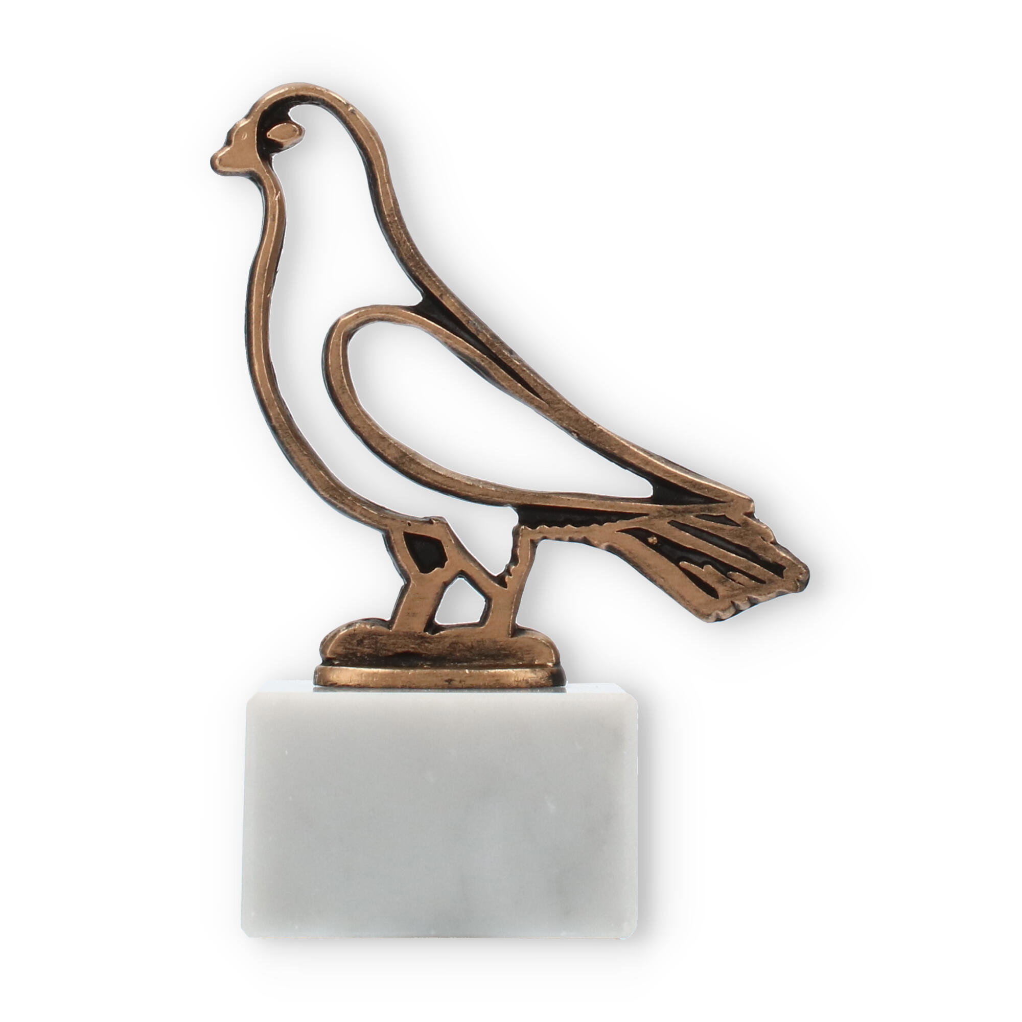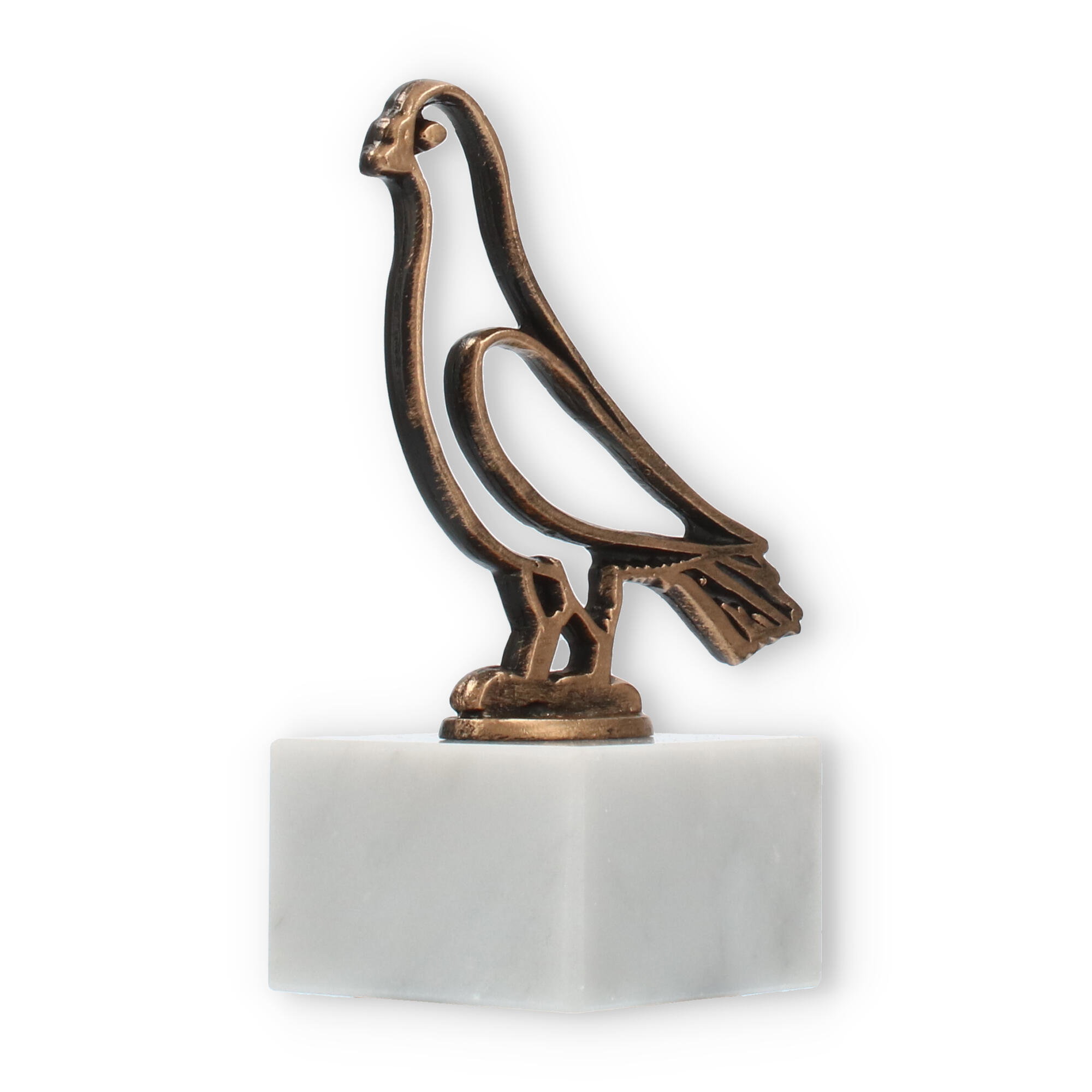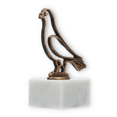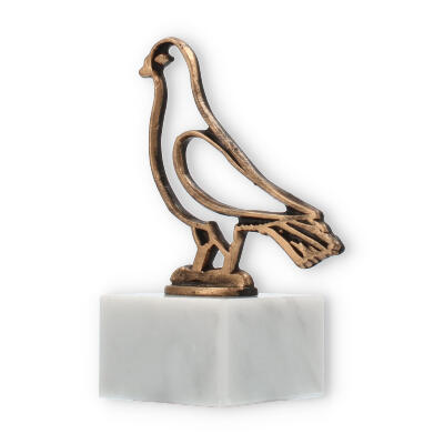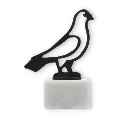 Denne pokal, som står 14,4 cm høj med sin majestætiske due-kontur i gammelguldfarve, bringer en stærk følelse af tradition og ære til enhver lejlighed. Base fremstillet af ægte hvid marmor giver en tidløs elegance, der supplerer den kunstneriske stilisering af fuglen. Dens minimalistiske design tillader øjet at hvile på skønheden af enkelhed, mens negative rum skaber en både dristig og raffineret effekt.