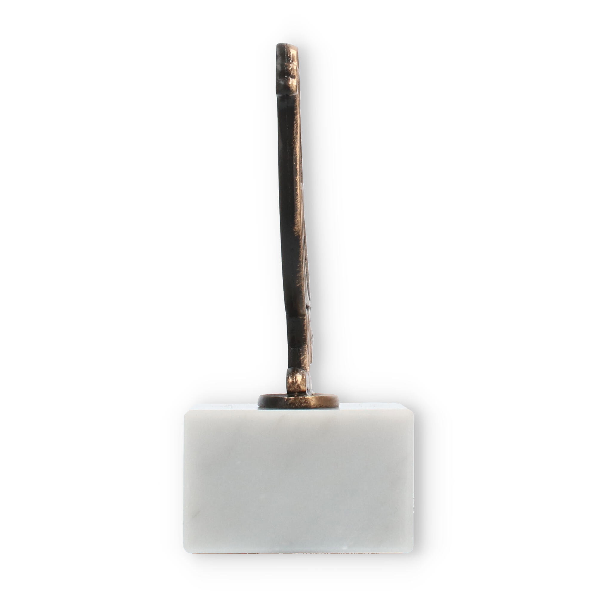 Med en bredde på 6,5 cm og en højde på 4 cm, støder marmorsoklen op til ethvert skrivebord eller skabsrum uden at være dominerende, hvilket gør den ideel til både arbejdspladsen og hjemmet. Trofæet kan tilpasses til en bred vifte af arrangementer, både som et enkeltstående fokuspunkt eller som en del af en større kollektion af præmier.