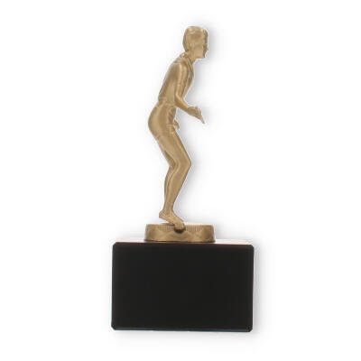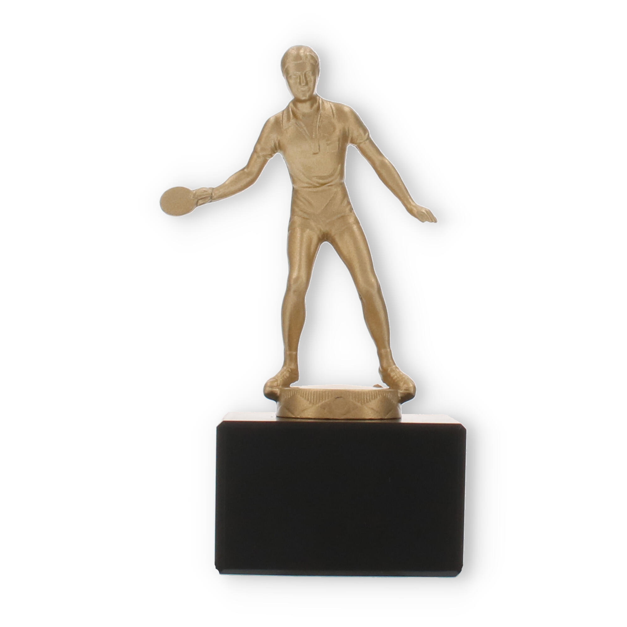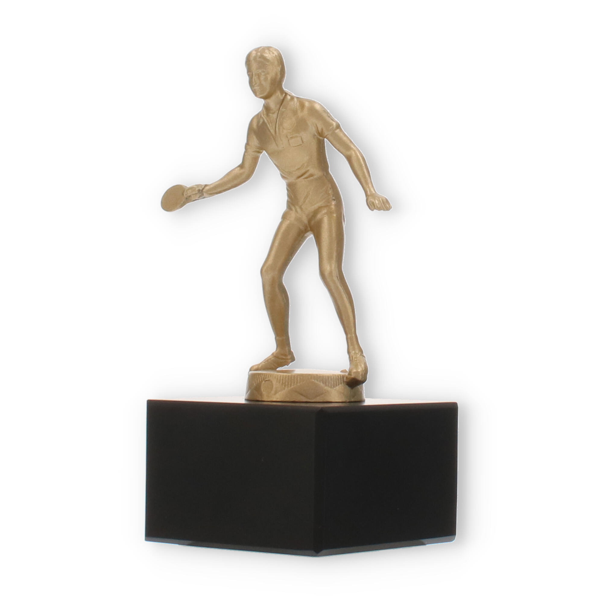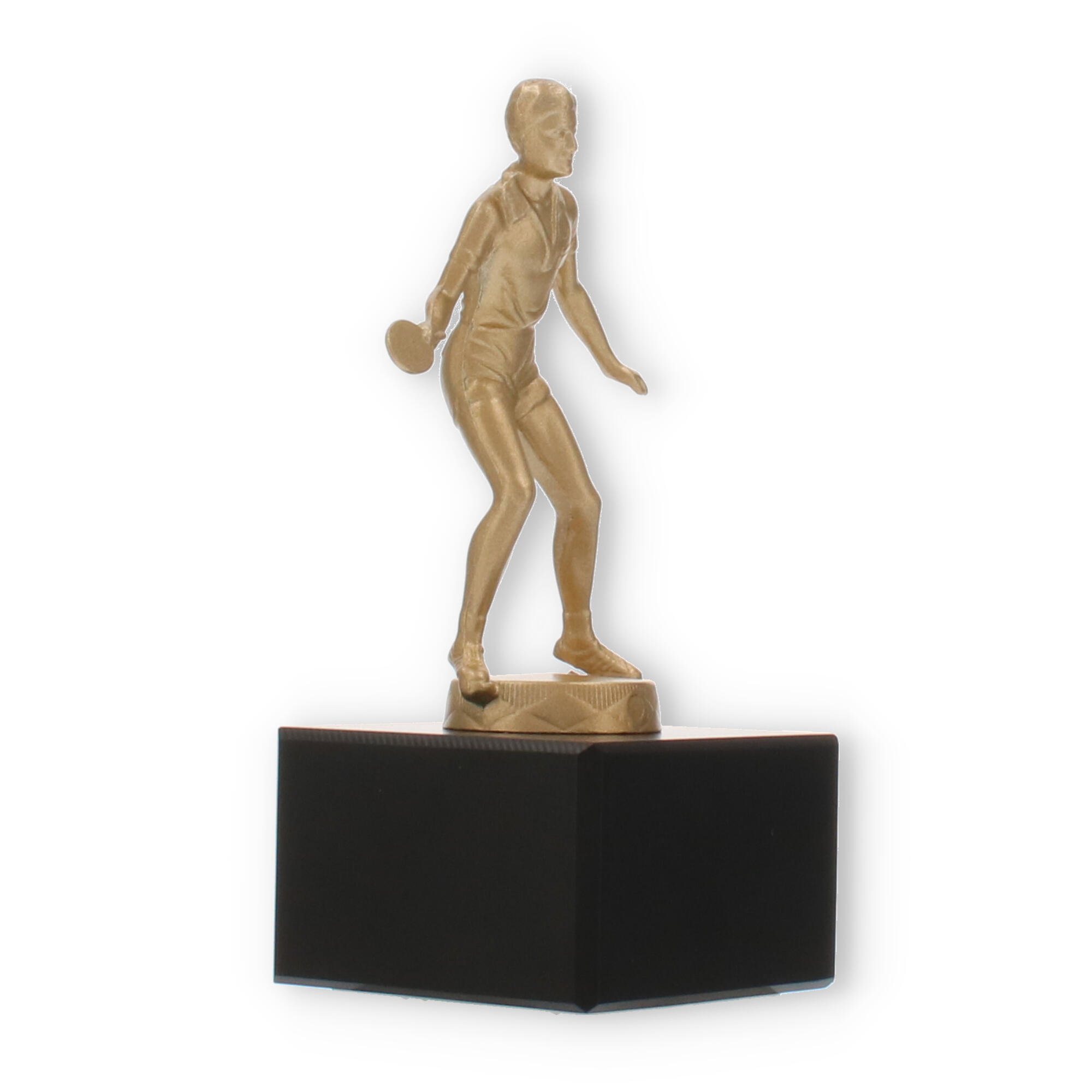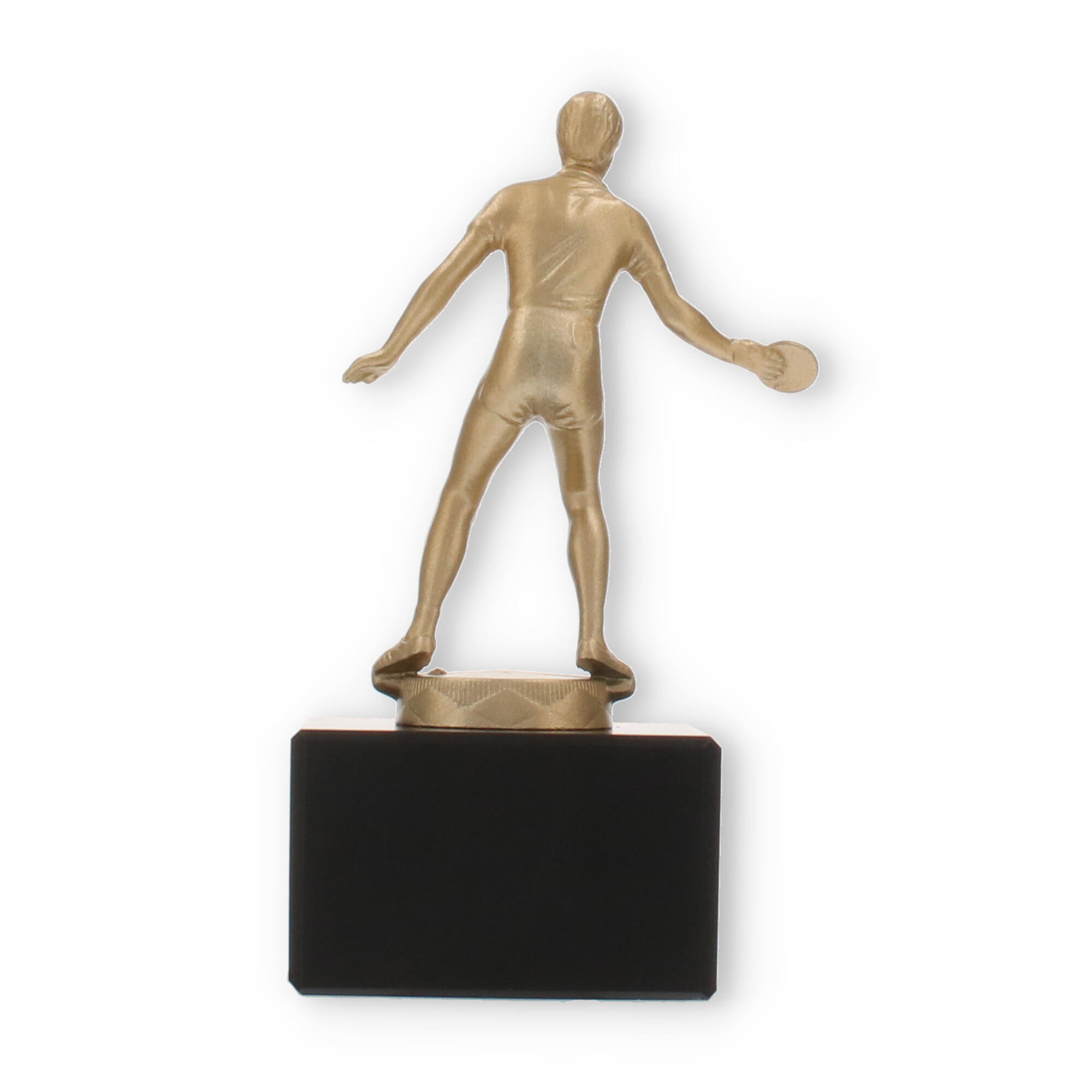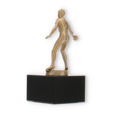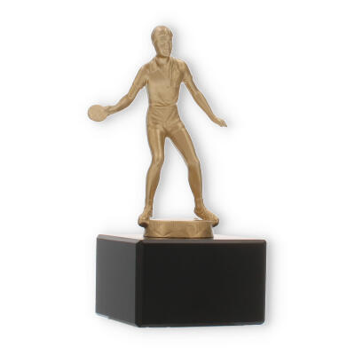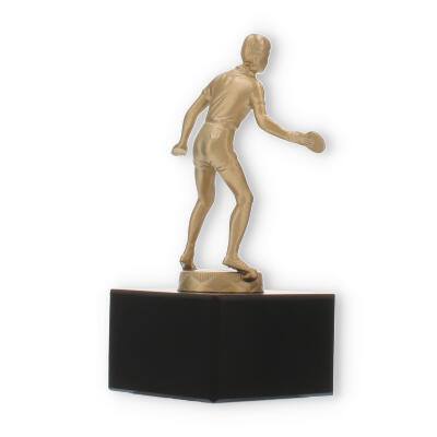 Den guldfarvede figur fanger essensen af bordtennis: hastighed, præcision og passion. Dens matte til let skinnende finish fremhæver figurens detaljer, fra sportstøjet til spillepladen. En sådan håndværksmæssig finesse sikrer, at pokalen imponerende skildrer sporten, dens aktører og deres dedikation.