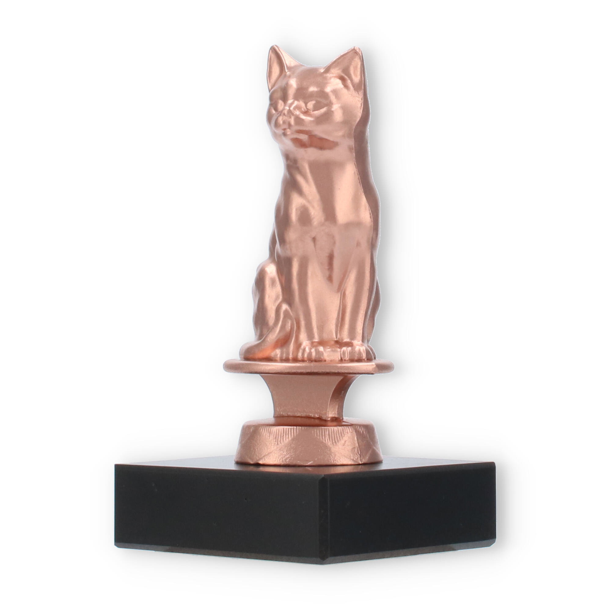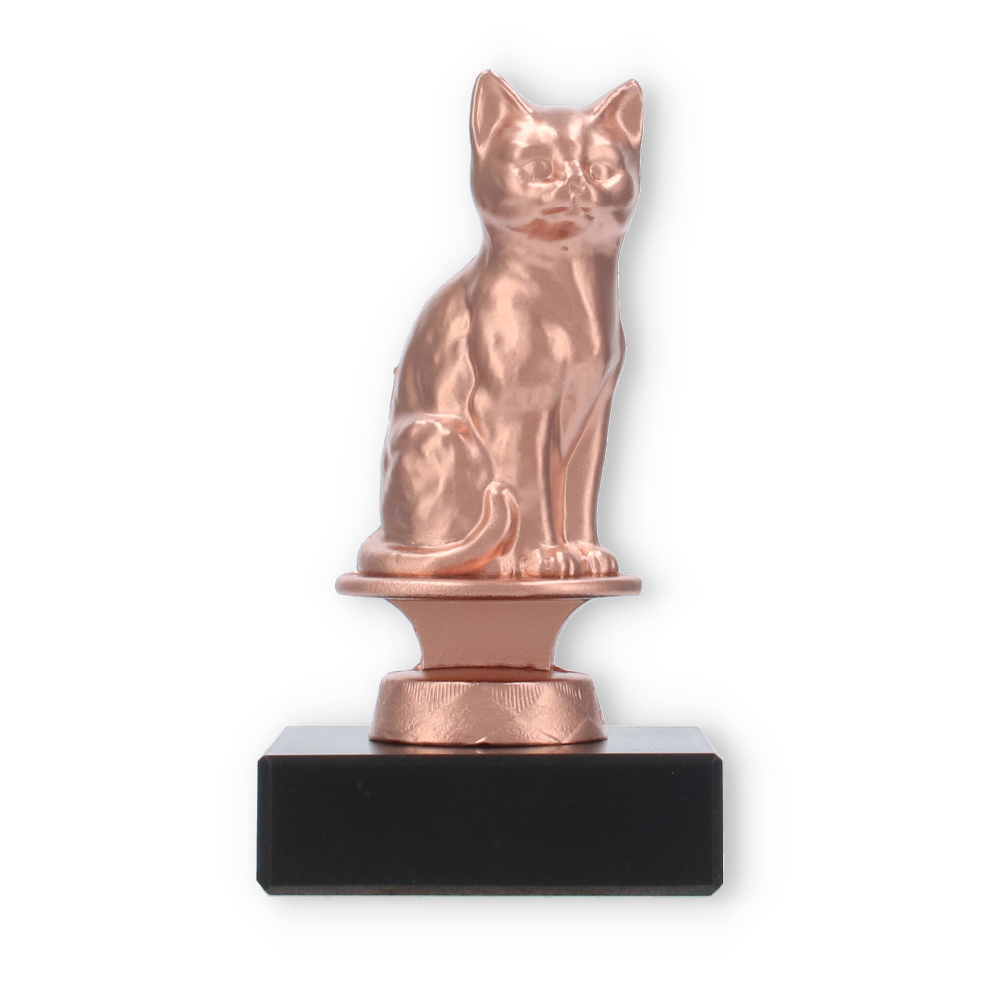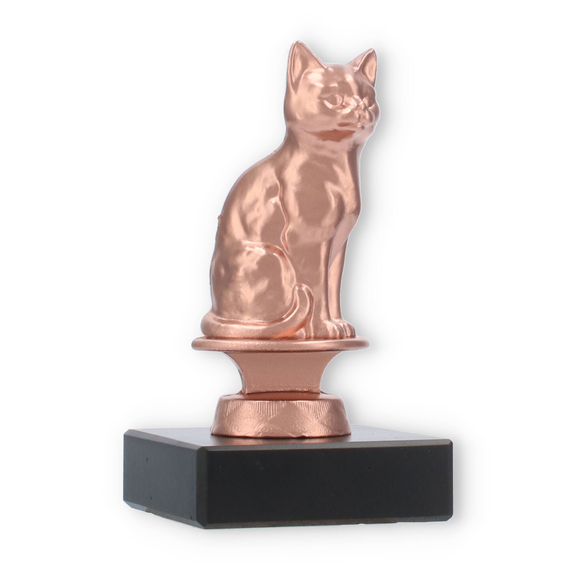 For dem, der værdsætter skønheden i enkle, men elegante udmærkelser, tilbyder vores pokaler med bronze-kat en storslået mulighed. Denne unikke figur skal forestille en siddende kat og præsenteres i en varm bronzefinish, der tilføjer et aristokratisk touch til enhver præmieoverrækkelse. Den er placeret på en robust, sort marmorbase, hvilket sikrer stabilitet og et klassisk udtryk.