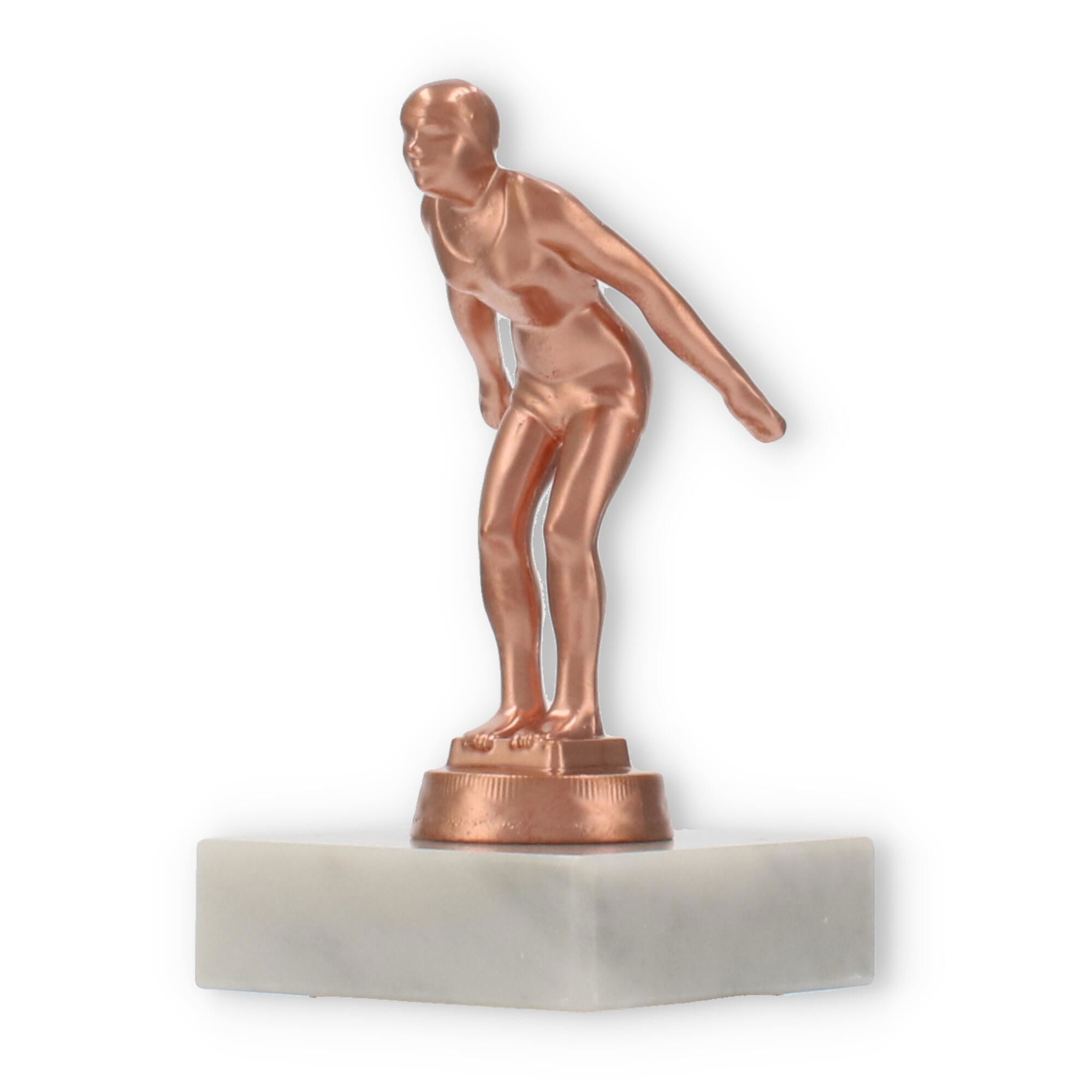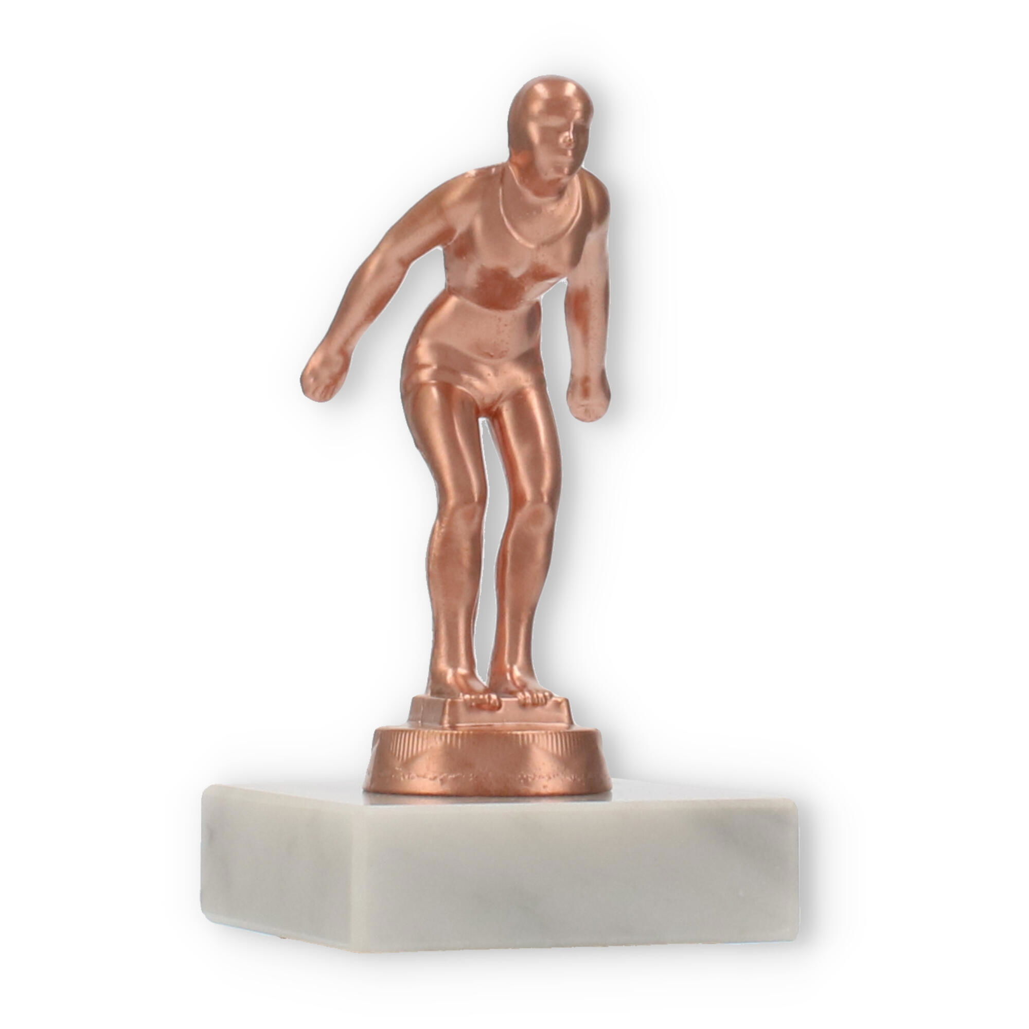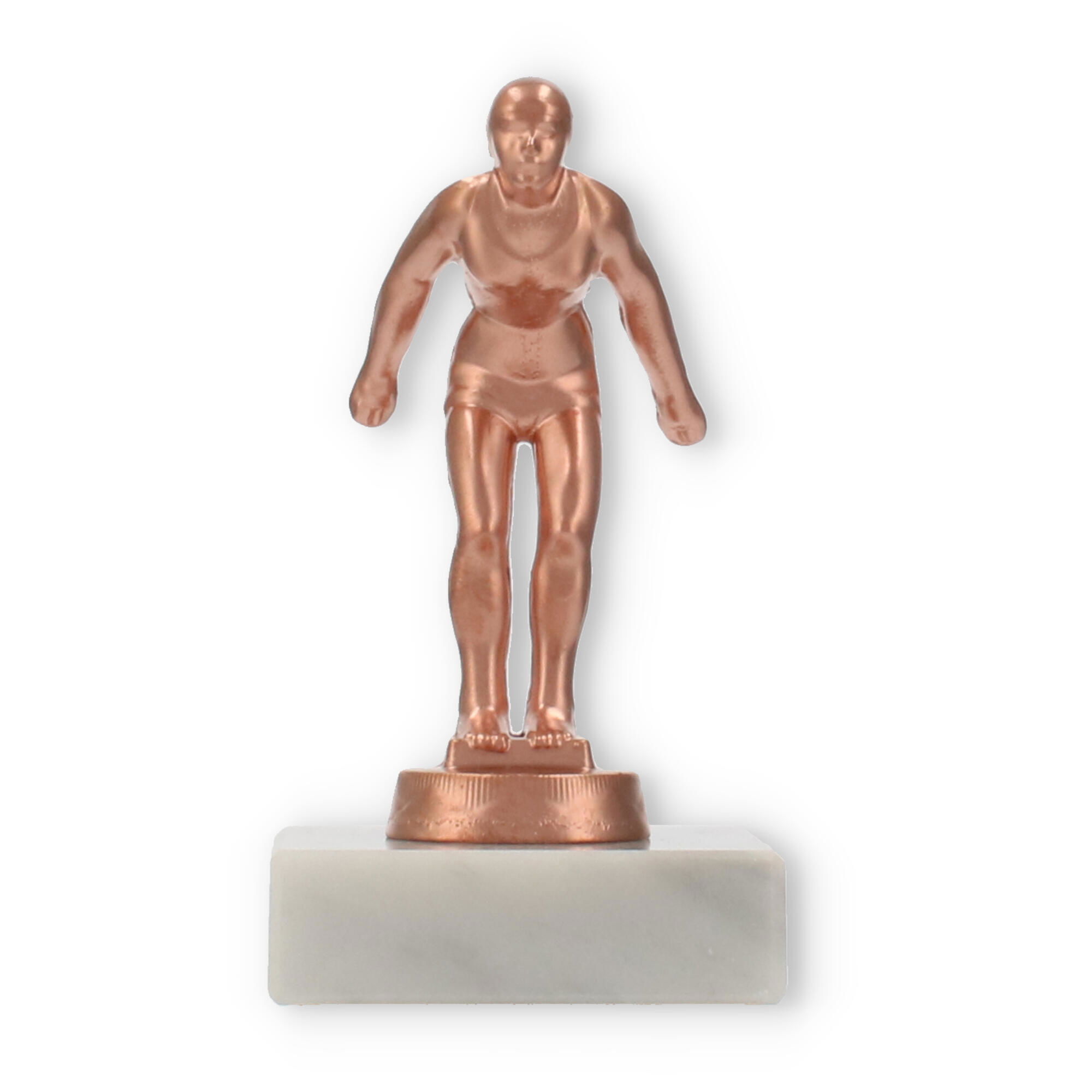 Uanset om det er til svømmestævner eller særlige sportspræstationer, vil denne 11,5 cm høje pokal med en bronzefarvet svømmerfigur på en hvid marmorbase bringe et glimt af anerkendelse. Basen giver stabilitet og kan personliggøres med en gravering, hvilket gør den til det perfekte valg for alle, der ønsker at hylde deres atleter med klasse.