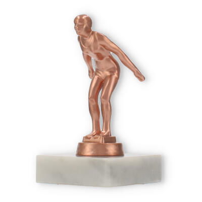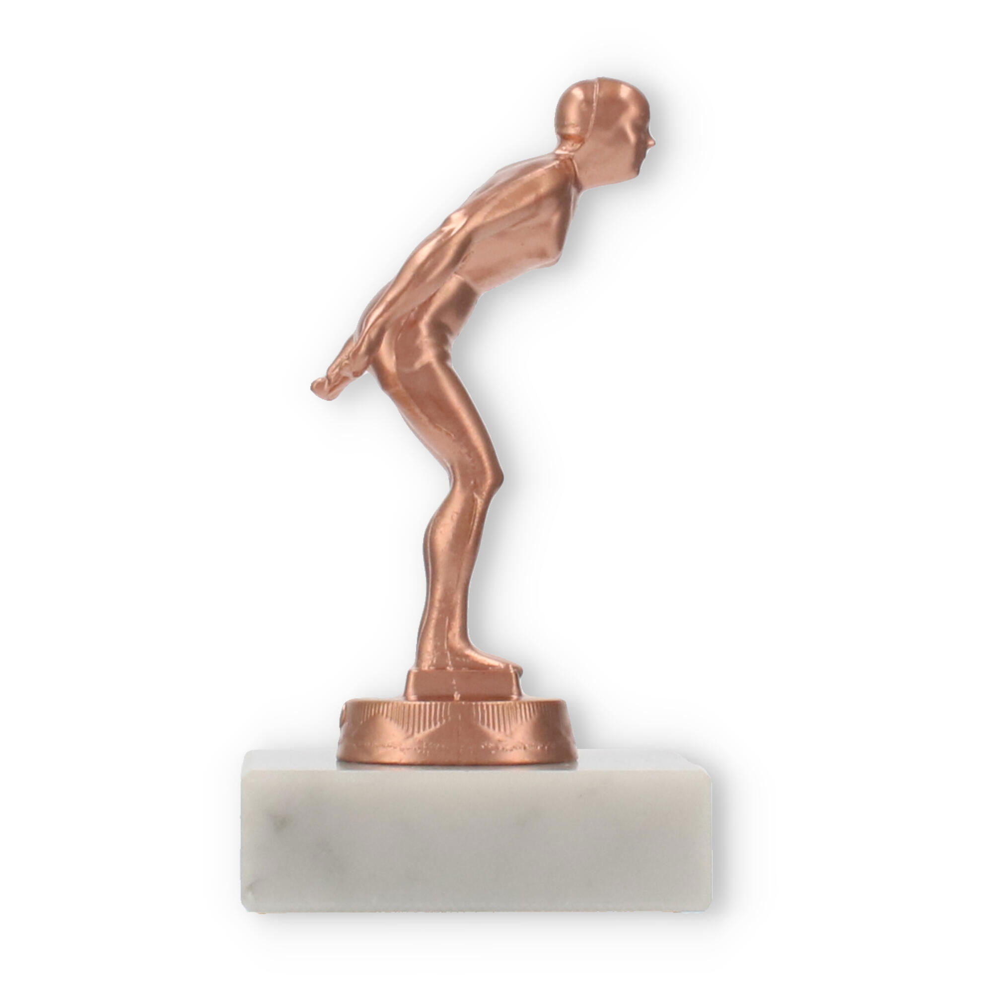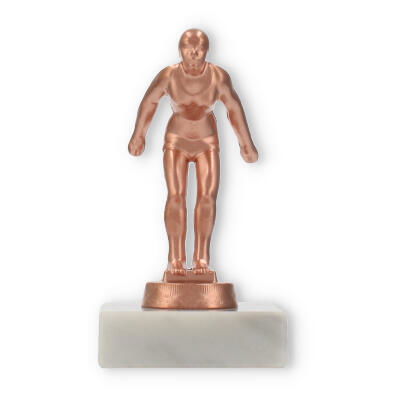 Ingen sejr bør gå ubemærket hen, og derfor er denne pokal det ideelle valg for at anerkende ekstraordinære præstationer inden for svømning. Med sin bronzefarvede metalfigur, der skildrer en svømmer i bevægelse, fanger den øjeblikkets dynamik og dedikation. Pokalens visuelle udtryk understreges af den omhyggeligt udformede marmorbase, der med sit hvidlige udseende tilfører elegance til din prisuddeling.