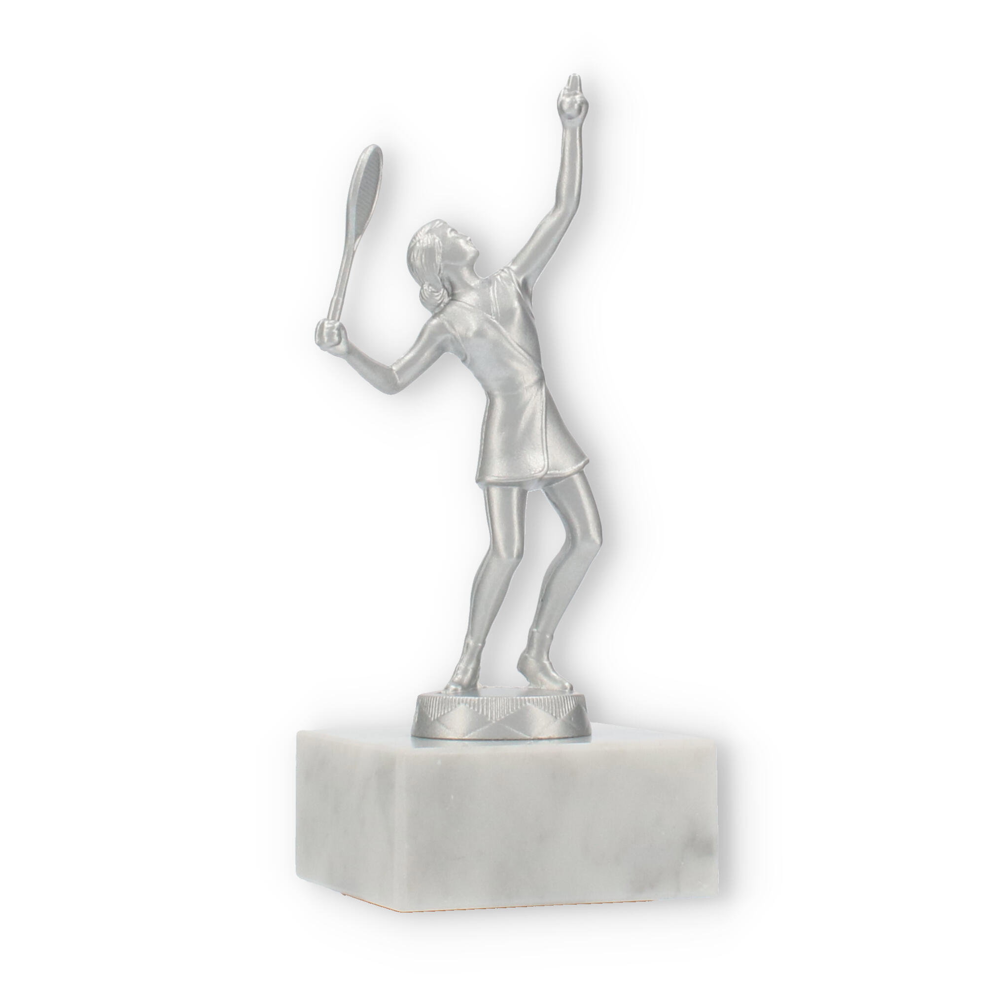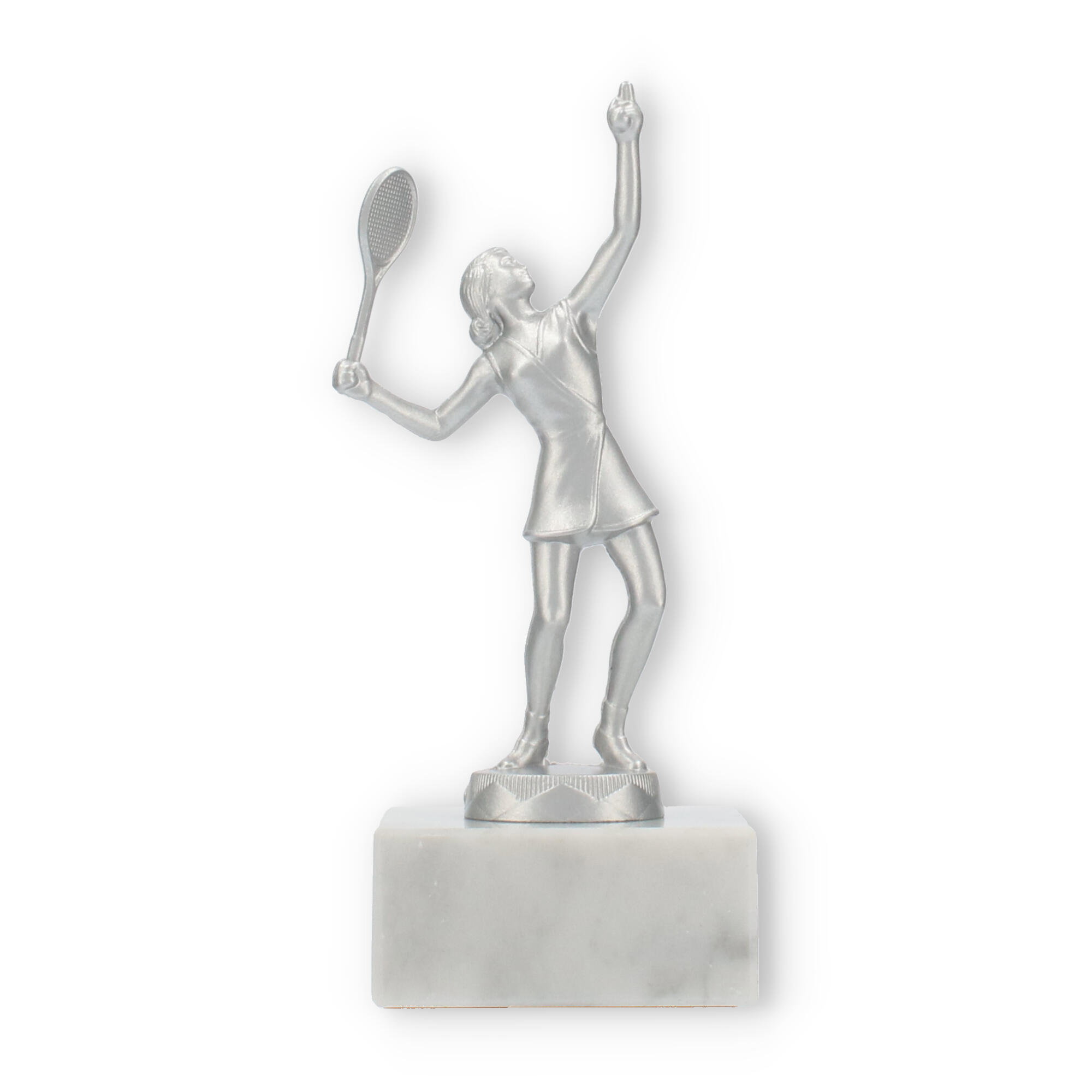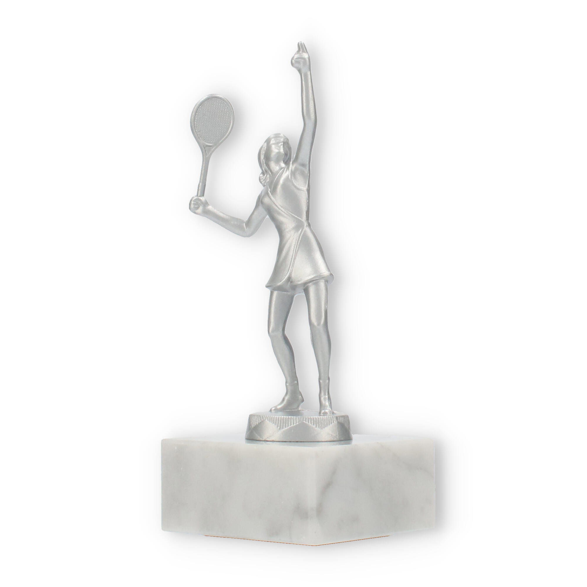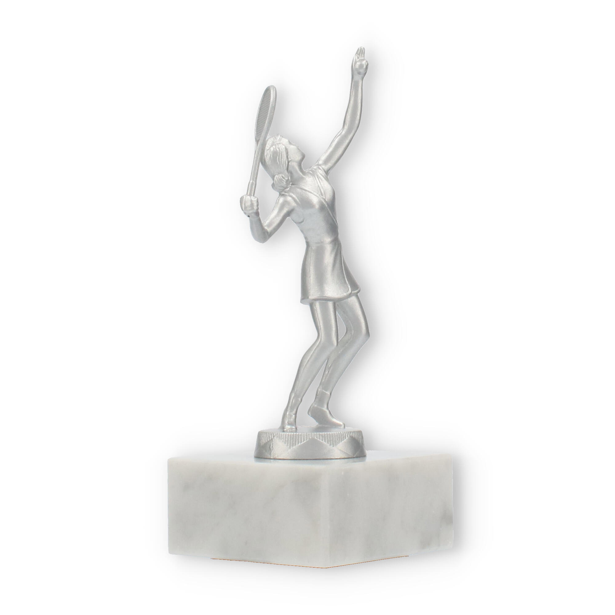 Når du vil markere en bedrift, der kræver mere end almindelig anerkendelse, tilbyder denne skulptur netop dette. Det sølvmetallic look leder tankerne hen mod triumfer, mens den naturlige marmorbase jordforbinder hele oplevelsen, som et varigt minde om succes.