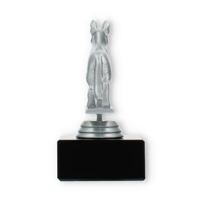 Forestil dig glæden i øjnene på modtageren, når de får denne pokal. Basen, lavet af ægte marmor, sikrer en solid og varig konstruktion. Marmorets dybe sorte farve står i smuk kontrast til schæferhundens glansfulde sølvfarve. Den rektangulære sokkel indeholder plads til en personlig gravering, der med laser kan tilpasses efter dine ønsker.