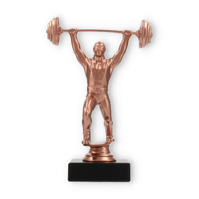 Oplev vægtløfterpokalerne i en elegant bronzefarve, designet med præcision. Monteret på en solid, sort marmorsokkel for stabilitet. Mulighed for personlig tilpasning med en indgravering. En perfekt gave til at fejre fremragende præstationer ved sportskonkurrencer og særlige lejligheder.