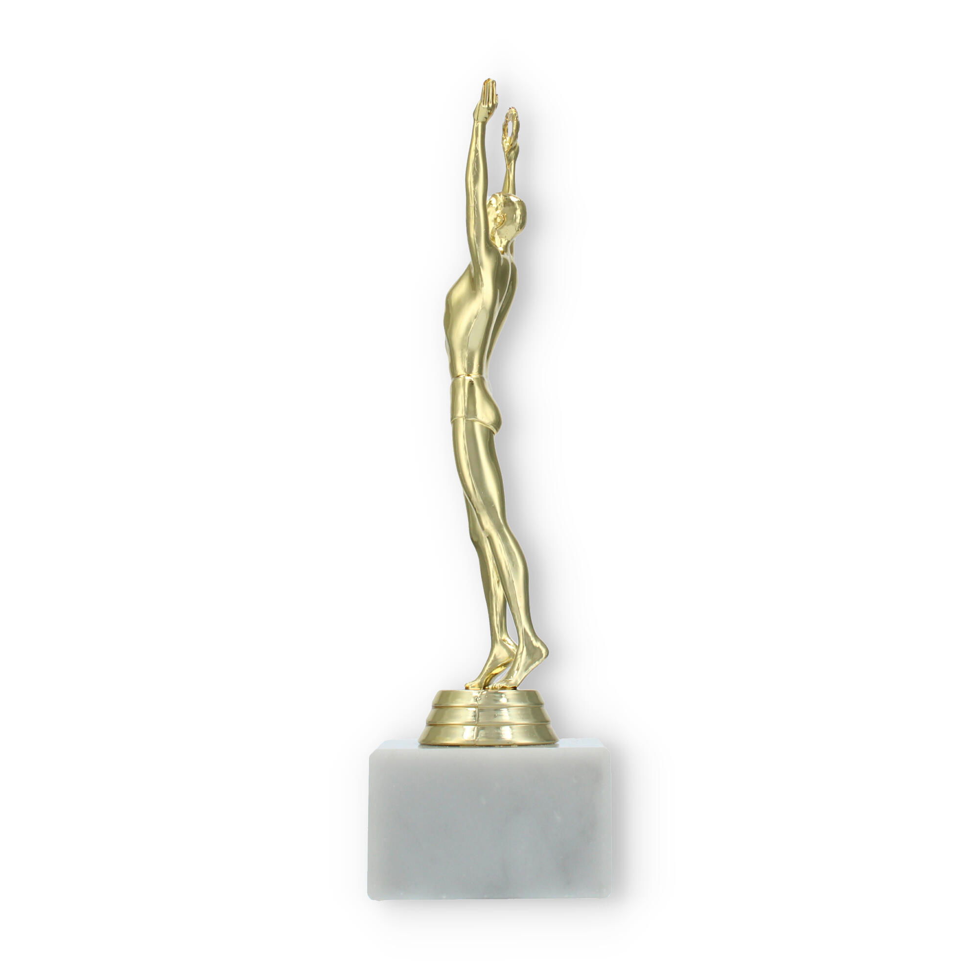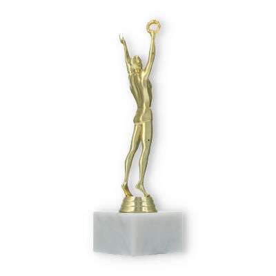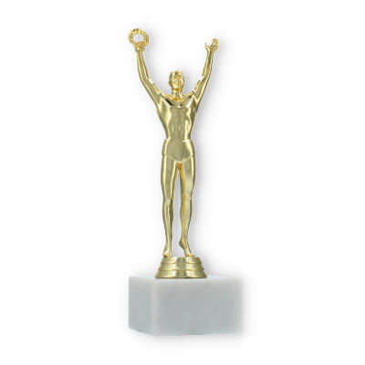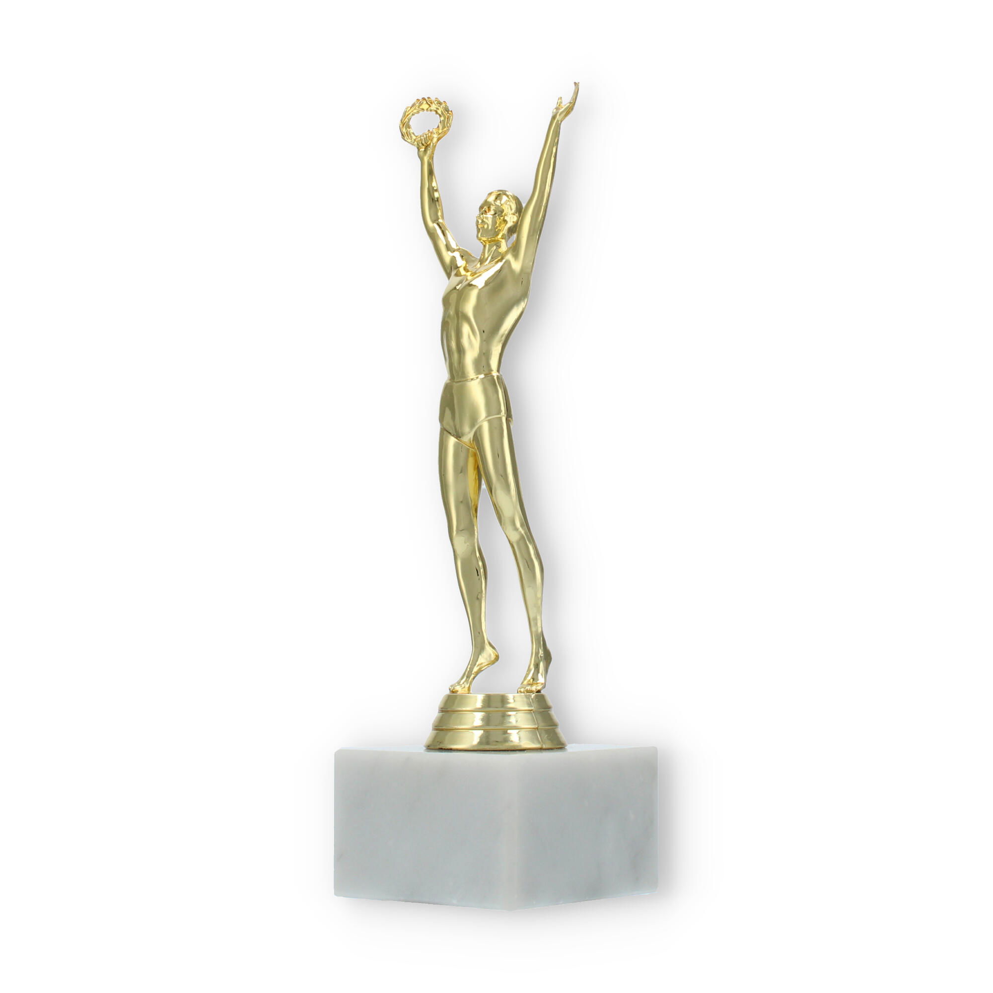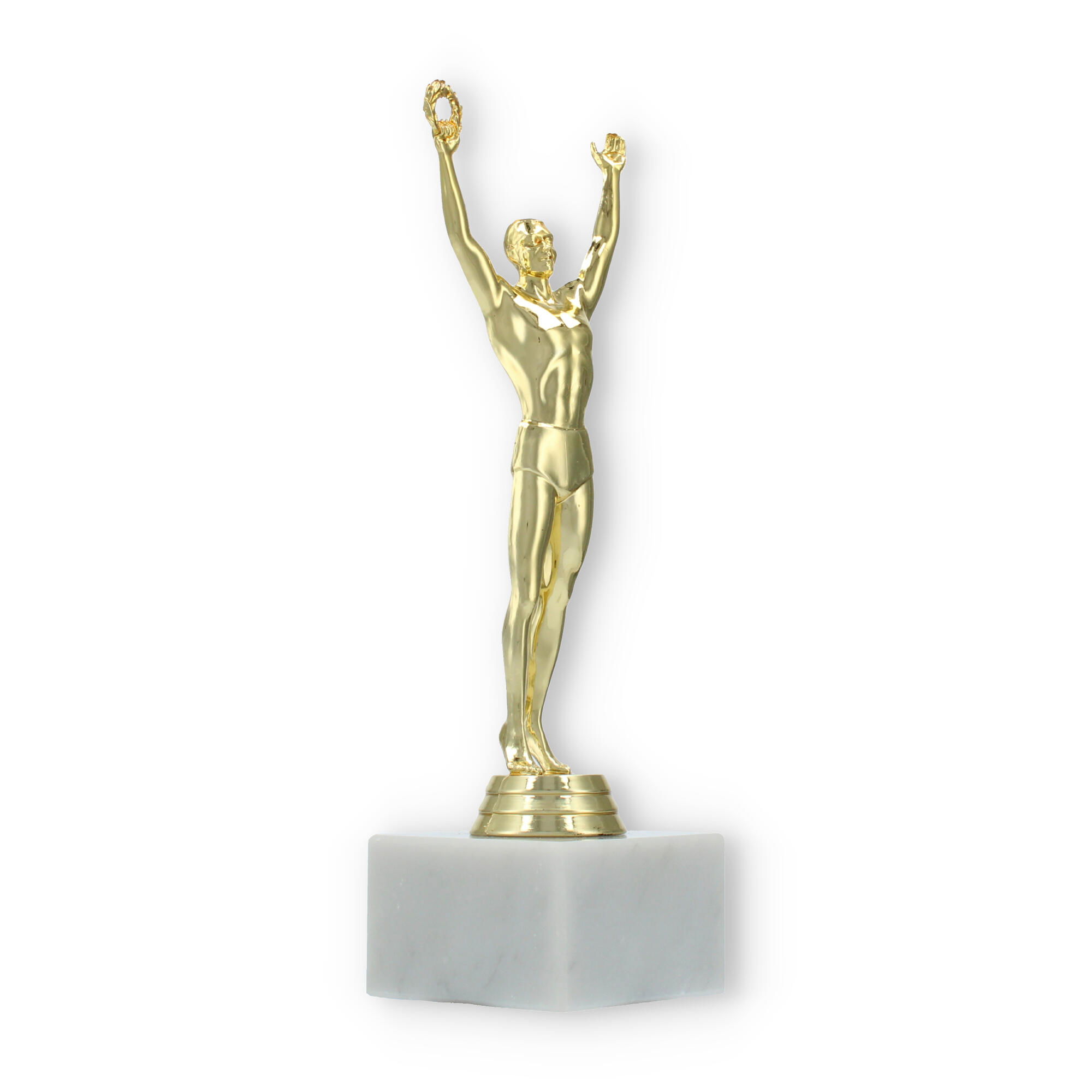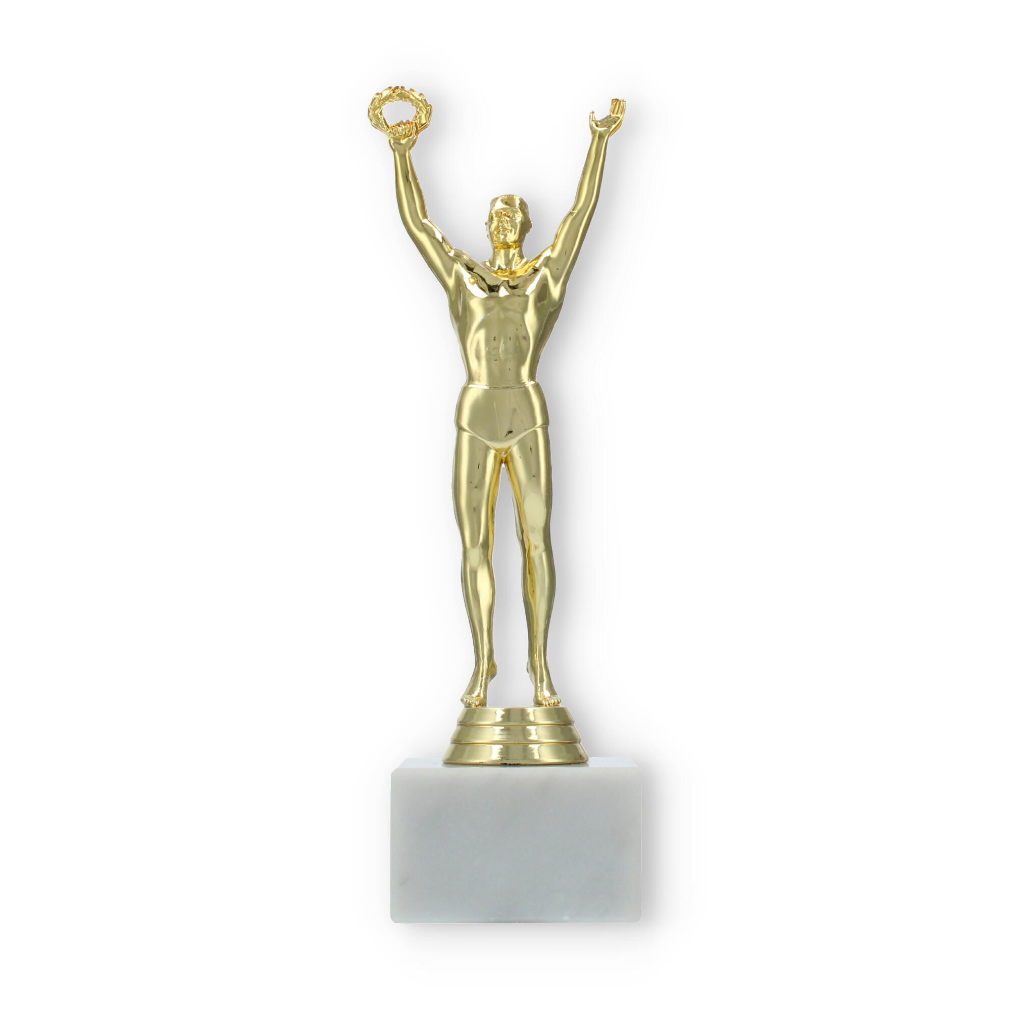 Pokal Vinder står som symbol på triumf og anerkendelse med sine 22,6 cm, udført i guldfarvet plastik på en hvid marmorsokkel. Den kan tilpasses med din ønskede gravering og er perfekt til enhver fejring. Med de strålende detaljer fungerer den som et blikfang og har en historie at fortælle ved hver overdragelse.