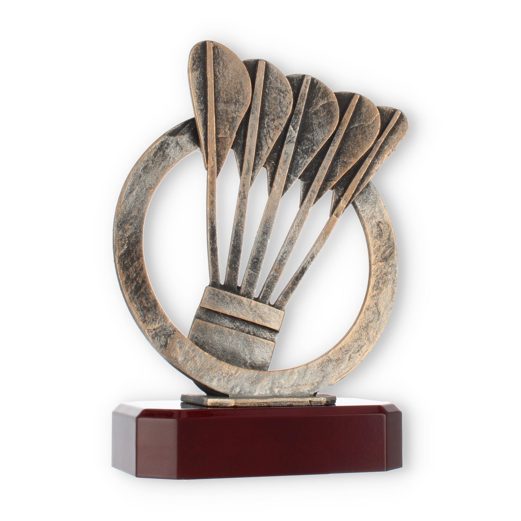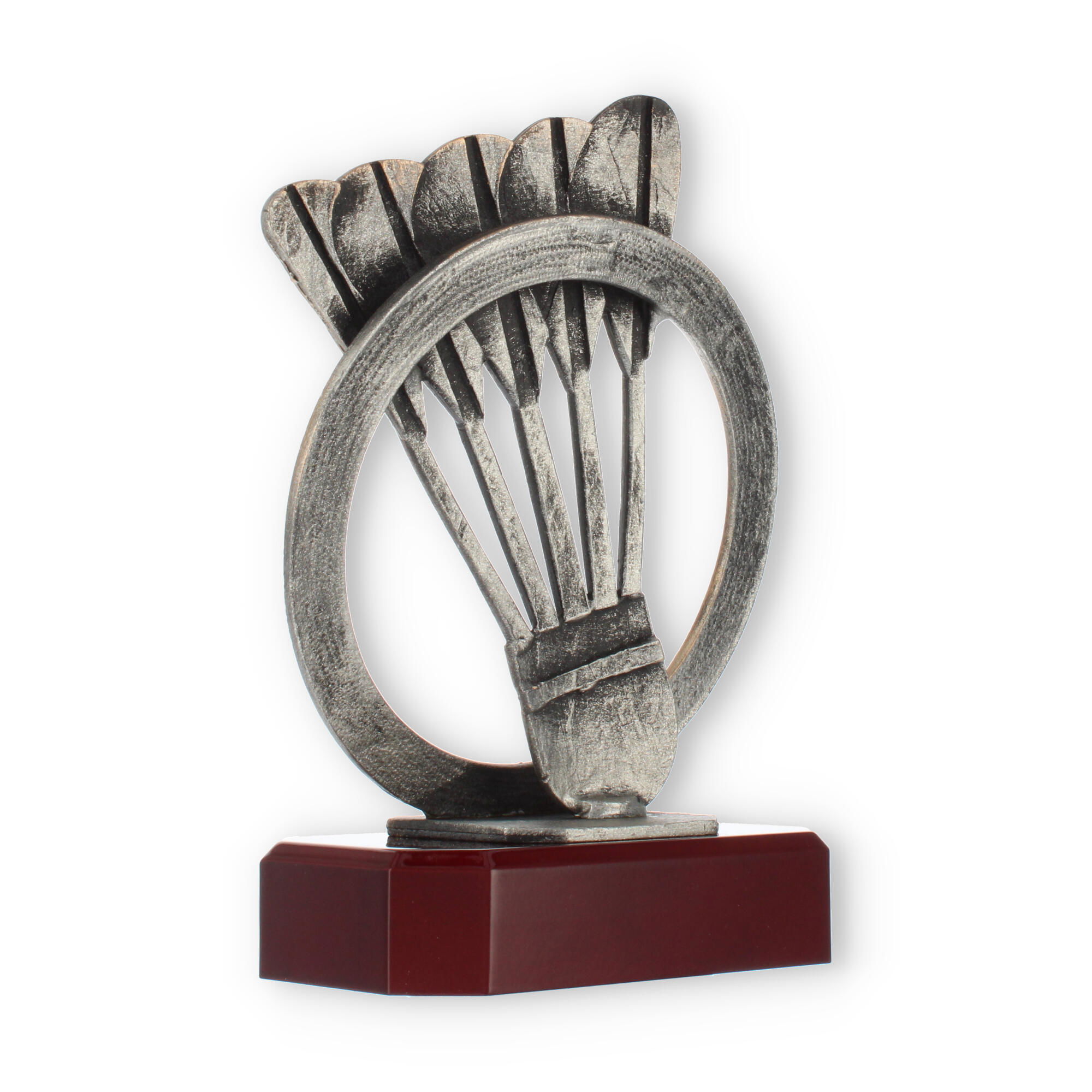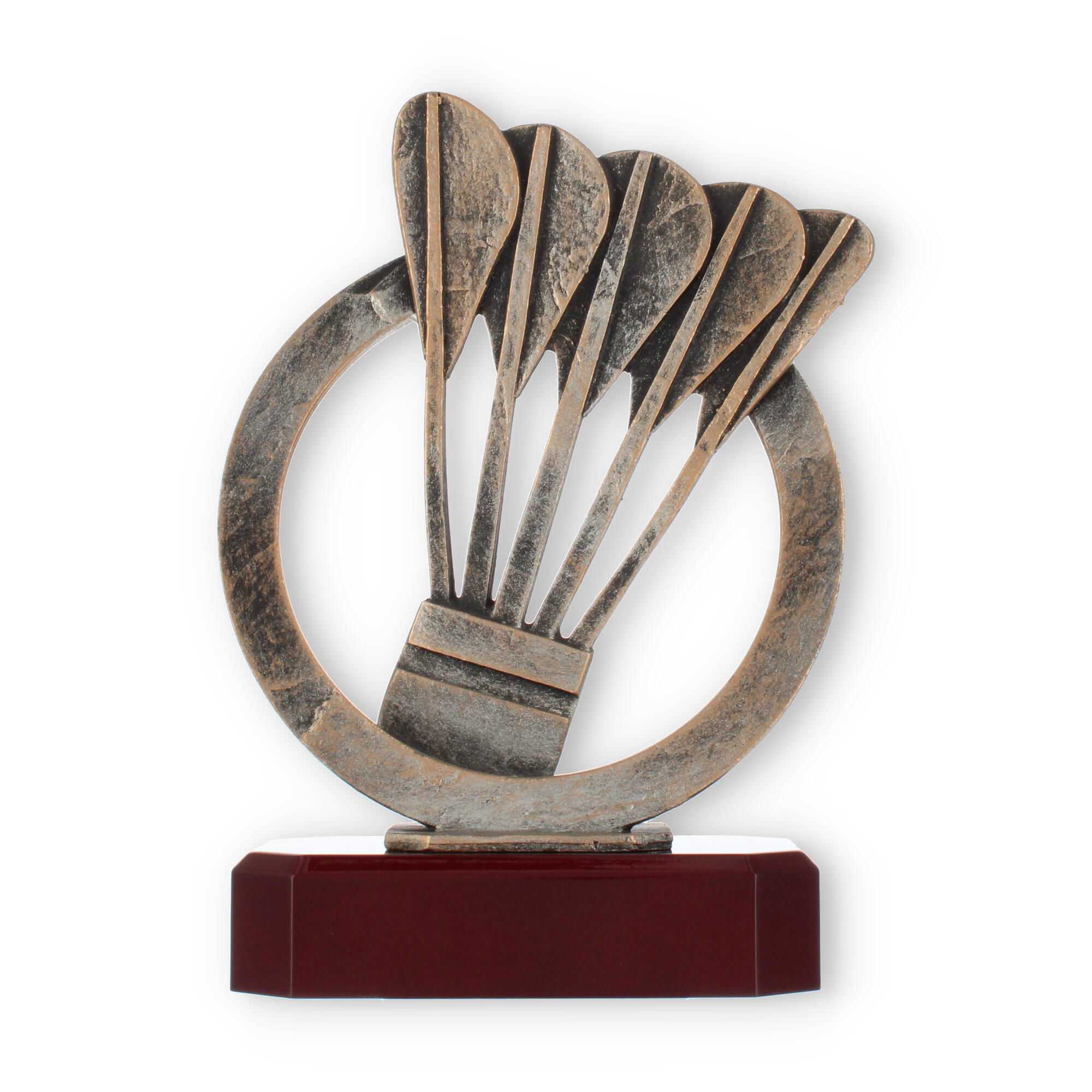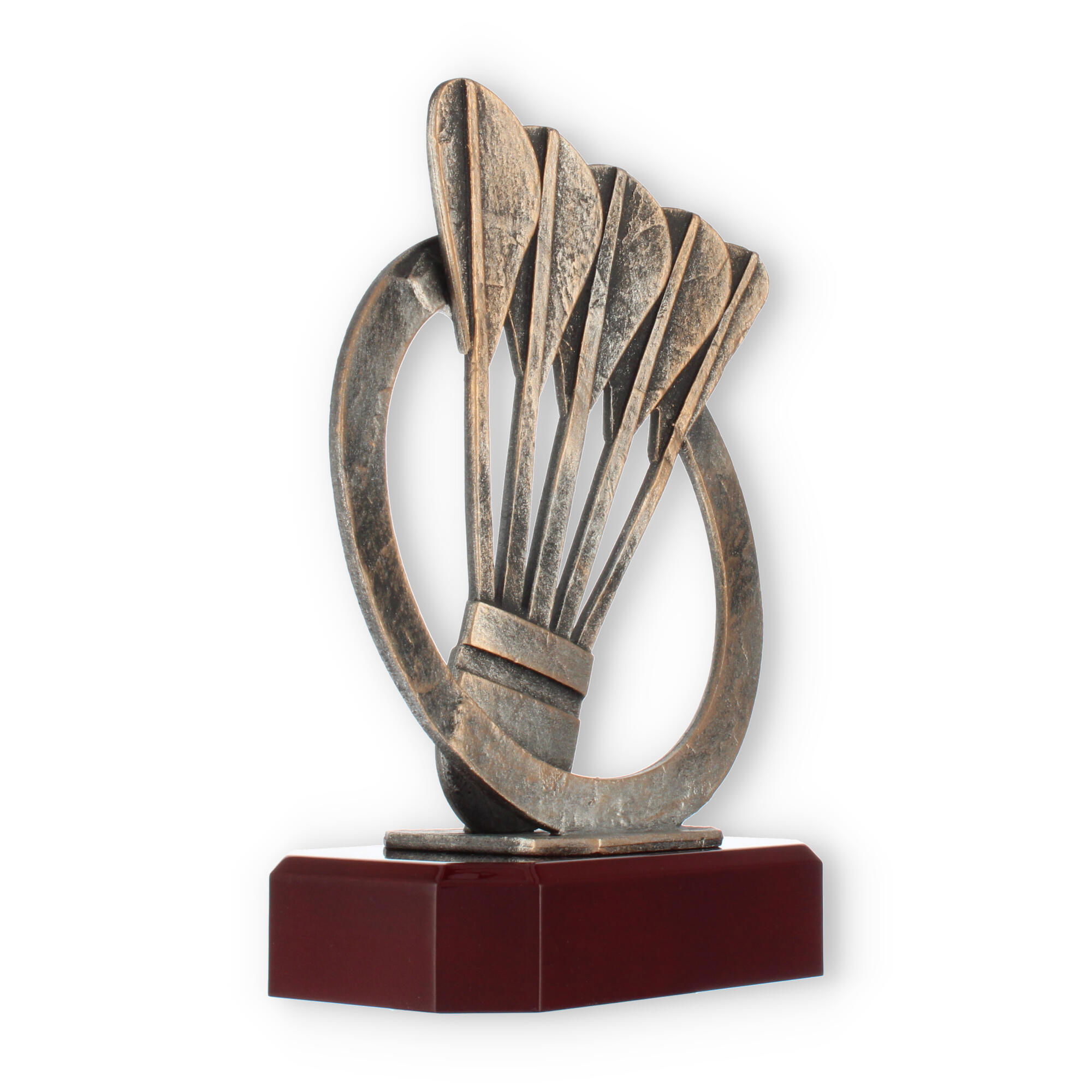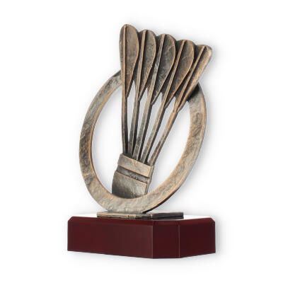 Designet med omtanke, så hver detalje får mulighed for at skinne, fjerboldpokalen forener den antikke bronzefarve med en base, der minder om luksusen fra mahognitræ. En pris, der leverer både skønhed og betydning til enhver ceremoni.