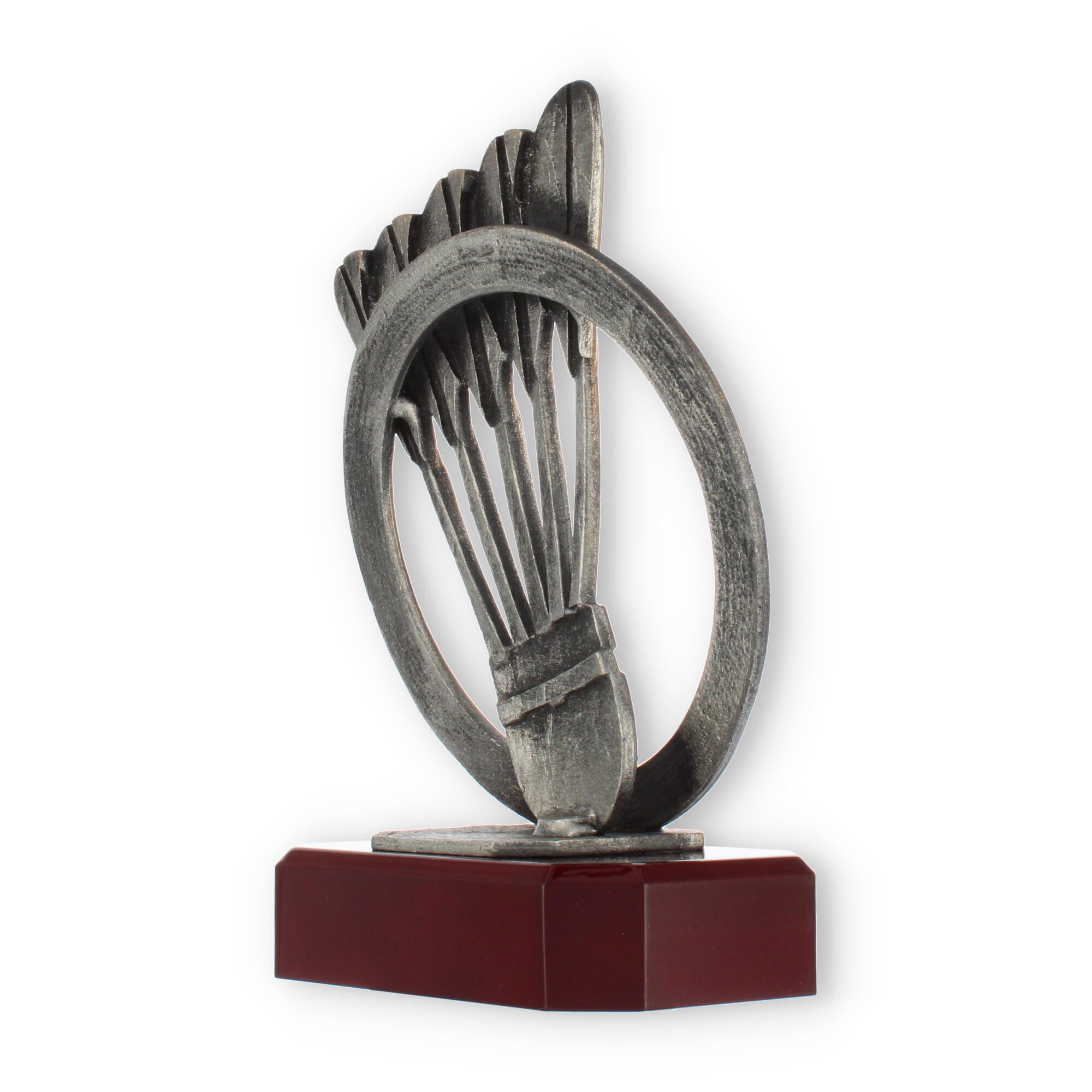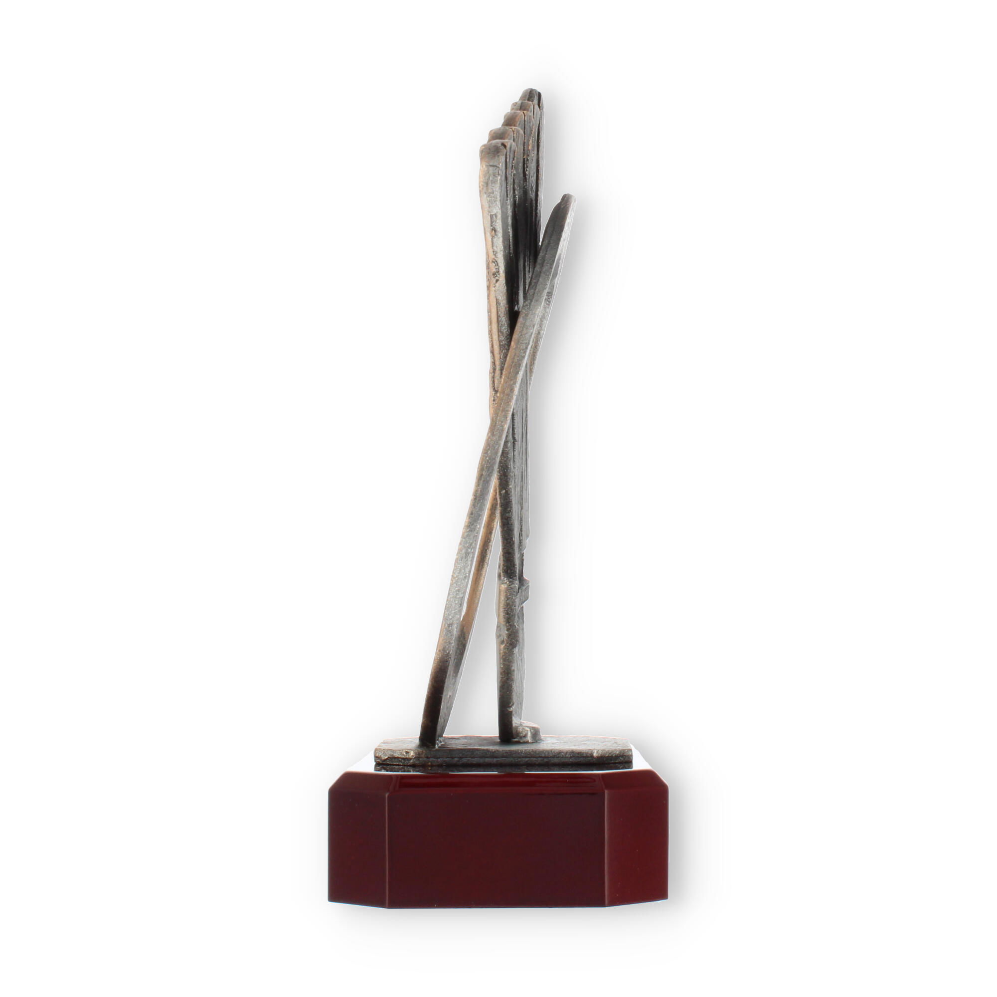 Bunden af pokalen består af en mahognifarvet base, der skaber en smuk kontrast til skulpturens rustikke brune nuancer. Denne base er perfekt poleret og reflekterer lys, så dine skinnende graveringsdetaljer står frem. Graveringen kan skræddersys, så du kan dedikere prisen til netop den anledning, der betyder mest for dig.