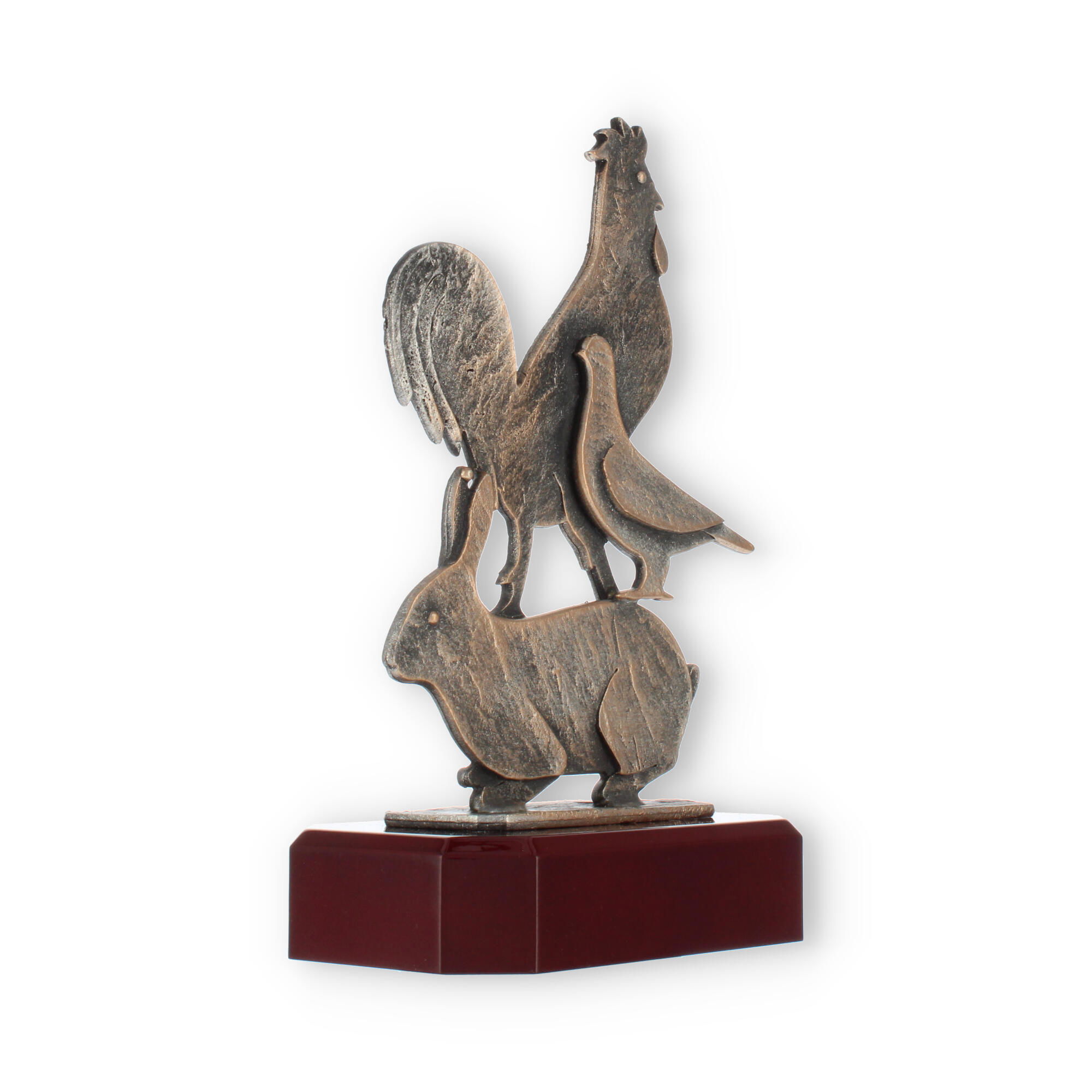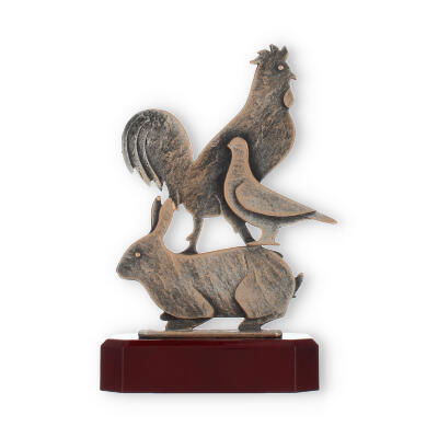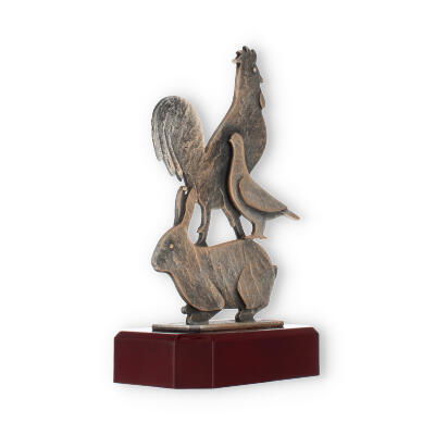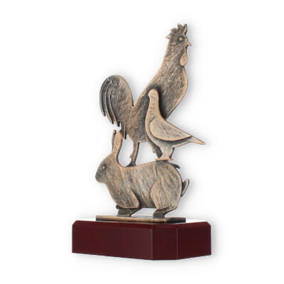 I hjertet af dyreavlernes triumfer står denne pokal, der kombinerer æstetik med historie. Med en zamak-figur i en antik guldfarvet nuance bringer den en følelse af tidløshed til enhver prisoverrækkelse. Figurens detaljerede fremstilling, der illustrerer et kanin, en due og en hane, alle stablet i en kunstnerisk stil, symboliserer naturens harmoni.