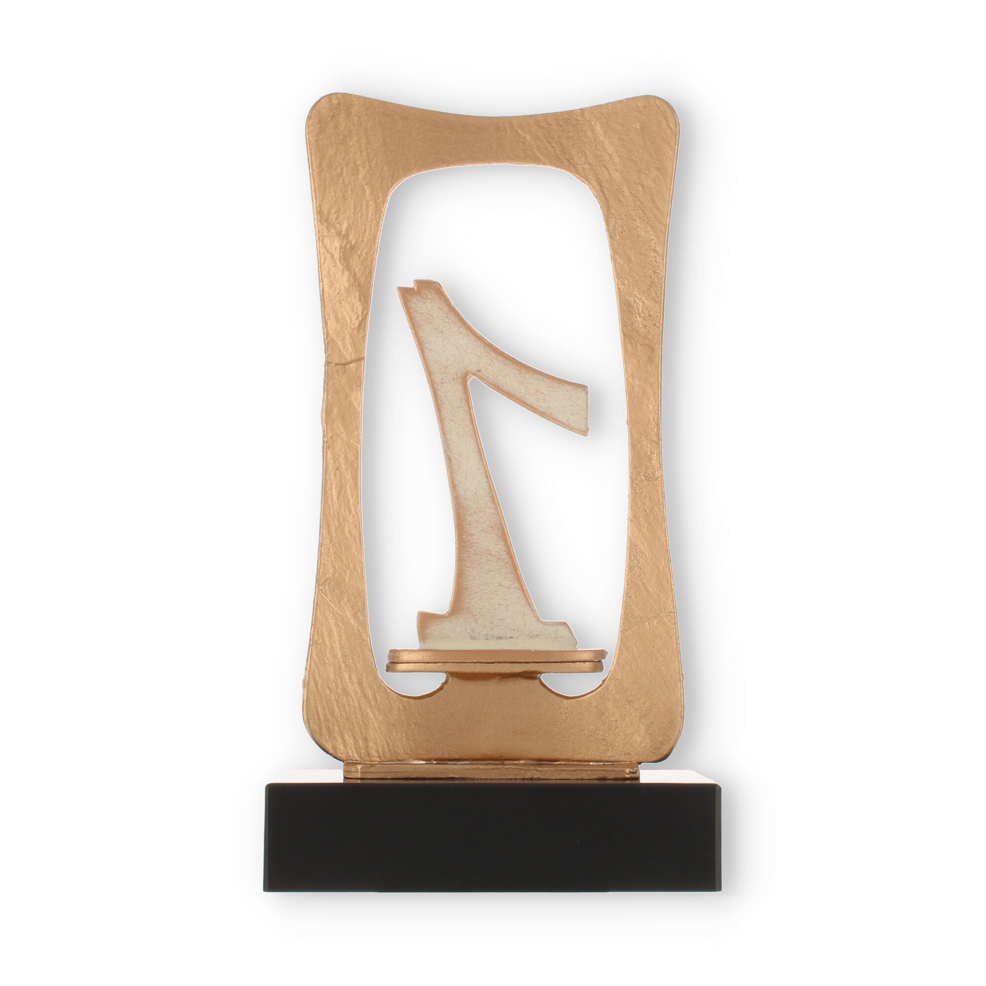 Basen på denne pokal er lavet af kvalitetsmaterialer i sort finish og understøtter det stilfulde udtryk af den guldfarvede ramme, som indeholder den iøjnefaldende nummer 1. Det er denne sammensætning af materialer og farver, der giver pokalen en unik udstråling, der både er enkel og elegant.