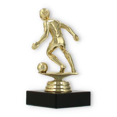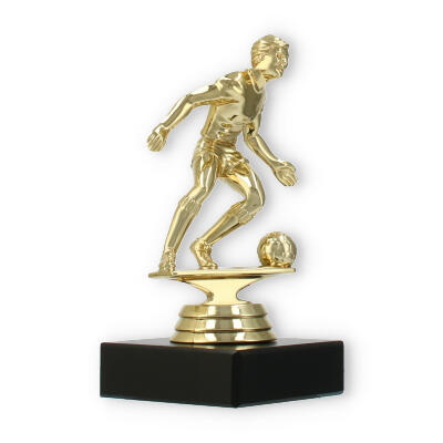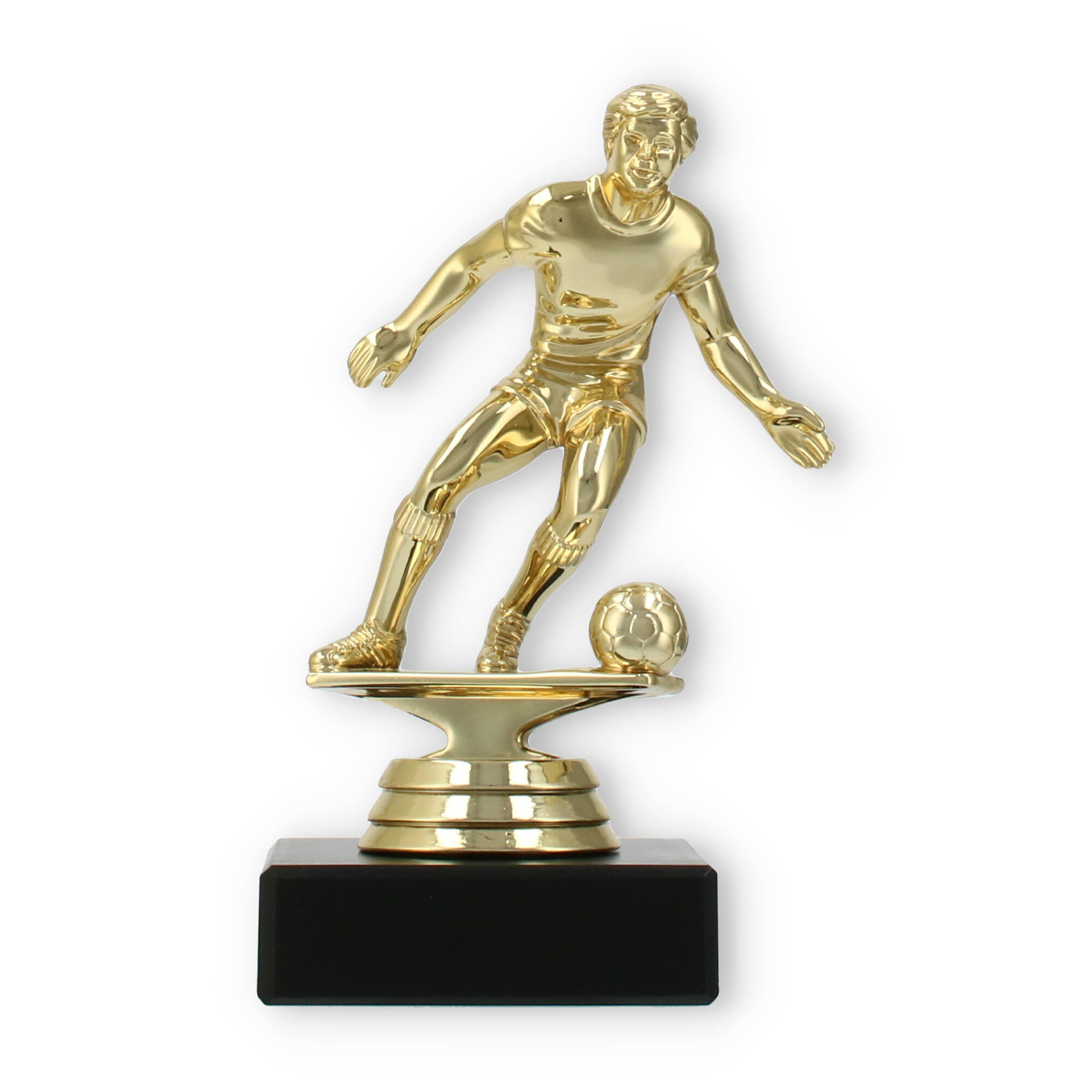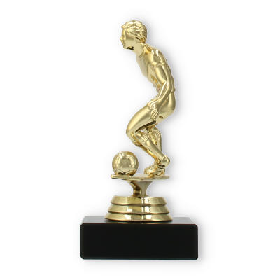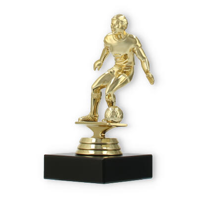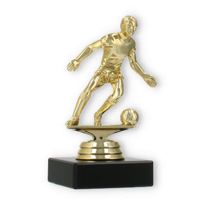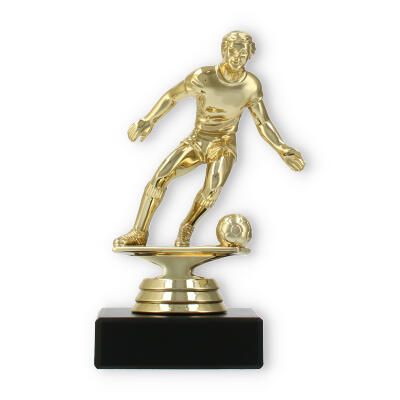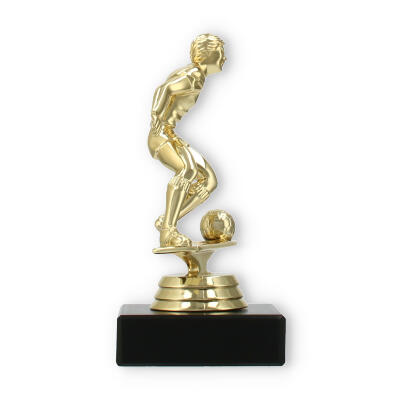 Disse pokaler med fodboldspillermotiv er den ideelle belønning til dine sportsstjerner. Den guldfarvede plastfigur står på en solid sort marmorbase og kan personliggøres med en unik gravering. Uanset hvilken sportsbegivenhed der er tale om, er denne pokal en stolt markering af en vellykket præstation.