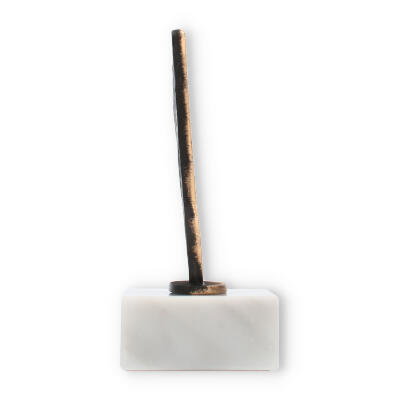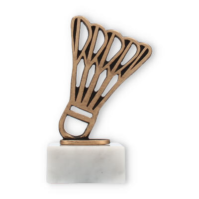 Pokalen med konturfiguren af Fjerbold er designet til at yde anerkendelse med stil og skønhed. Dens skulptur af bronzefarvet metal forestiller en klassisk fjerbold, og den sidder smukt på en hvid marmorsokkel. Kombinationen af den velskabte metallic skulptur og det naturlige marmor giver en unik kontrast og elegance til prisen.