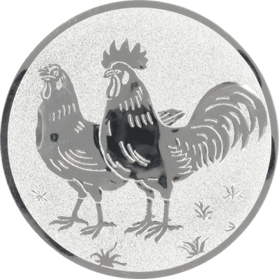 The Hen and Rooster Silver Emblem is a perfect way to highlight any achievement. Made of aluminum with a 50mm diameter, this emblem features two precisely engraved roosters that seem to come to life. The detailed engravings highlight the feathers, combs, and beaks of the roosters, adding a special touch to every trophy.