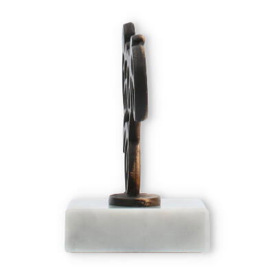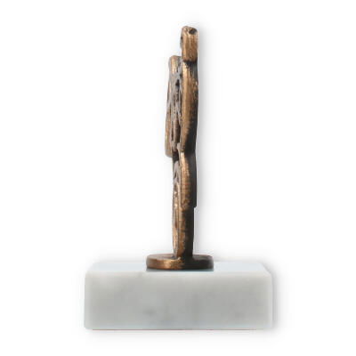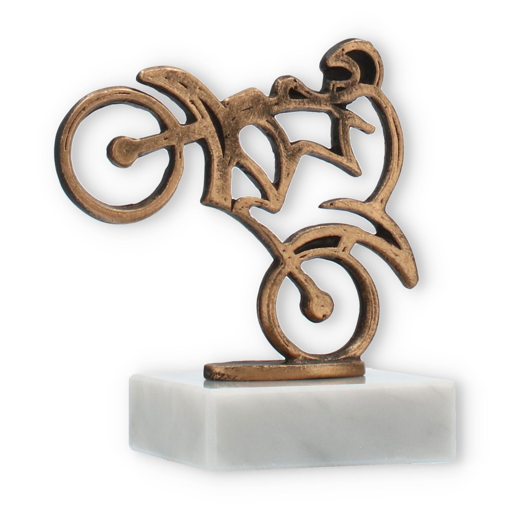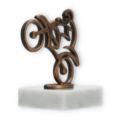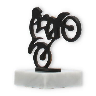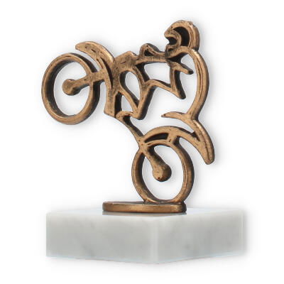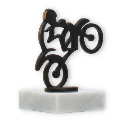 The Motorcross trophy figure brings excitement to any competition. Crafted from Zamac, the figure showcases a motorcyclist in a daring wheelie position, finished in an old gold hue that evokes a sense of timeless achievement. This remarkable piece stands proudly on a solid white marble base, contrasting beautifully with subtle grey veining that enhances its elegance.