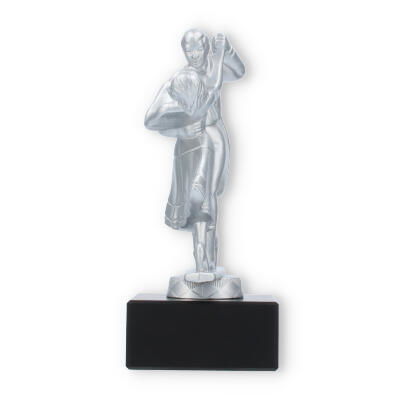 This 15.0 cm tall trophy stands proudly on a solid black marble base, providing both stability and a striking contrast to the shining silver-colored figure. The marble base also serves as the perfect spot for a personalized engraving, adding a unique touch to each award.