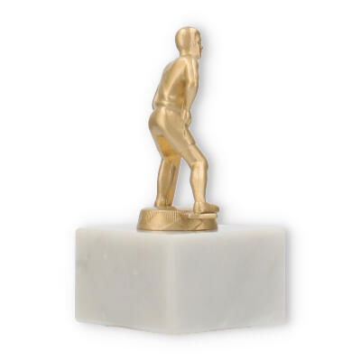 Our high standards in material selection and crafting ensure that each piece not only meets but exceeds expectations. The combination of the gold-colored metal figure and the white marble base gives this trophy a timeless and classical appearance.