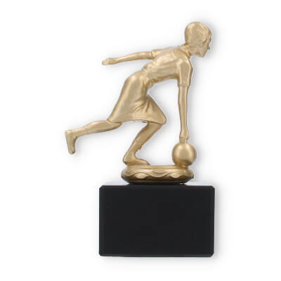 The Skittles Ladies trophy brings an element of grace and pride to any bowling competition. Standing at 13.6 cm, this elegantly designed trophy is crafted with a gold-colored metal figure, capturing the essence of victory.