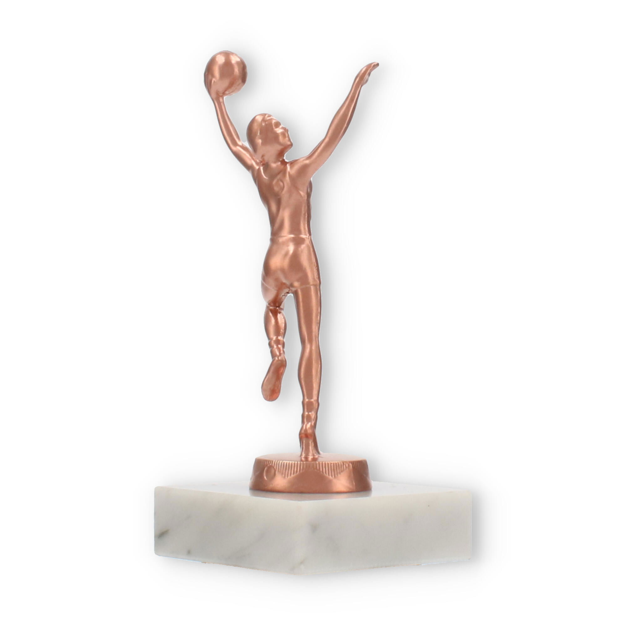 The female basketball trophy emanates a blend of elegance and recognition. At every award ceremony, it becomes a cherished token of success for the champions. The bronze-colored metal figure is artfully crafted, capturing the dynamic movement of a basketball player in action. With its distinctive form, it stands as a testament to athletic prowess.