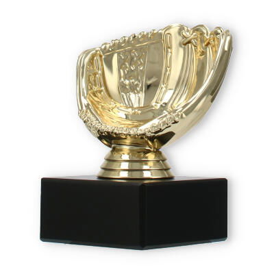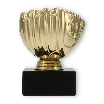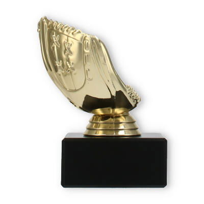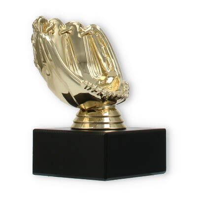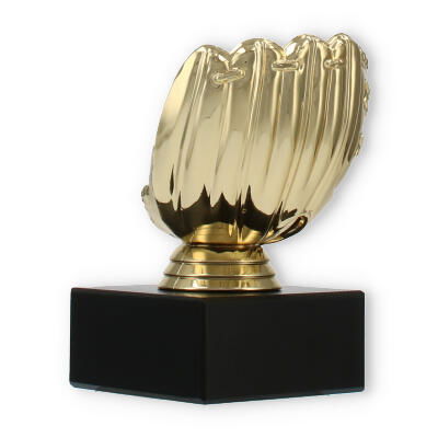 Mounted on a solid black marble base, the trophy exudes a sense of weight and permanence. The contrast between the gleaming gold of the glove and the rich black of the marble base creates a striking visual effect, ensuring the award stands out in any setting.