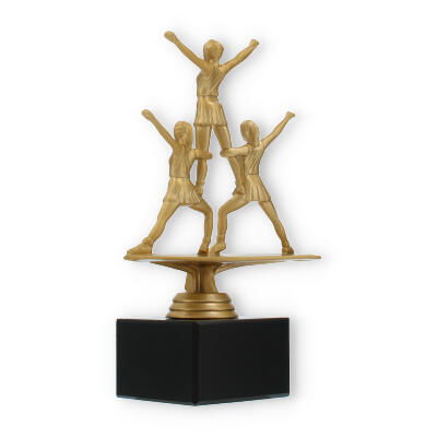The Cheerleader Pyramid trophy stands as an enduring emblem of athletic excellence. This 18.3 cm tall trophy features a golden trio of cheerleaders arranged in a dynamic pyramid, symbolizing teamwork and victory. The intricate detailing captures the essence of the cheerleading spirit, making it a perfect centerpiece for celebratory moments.