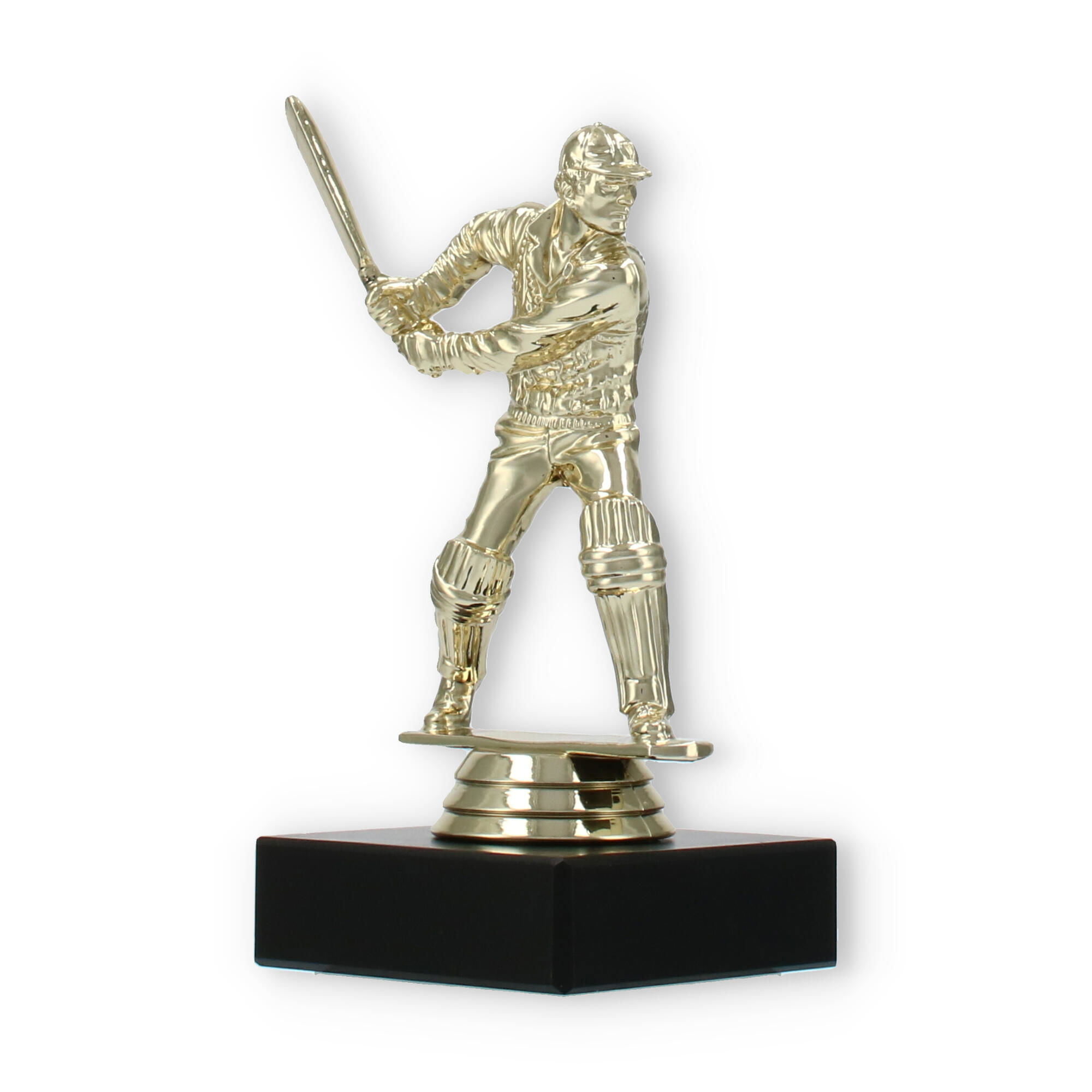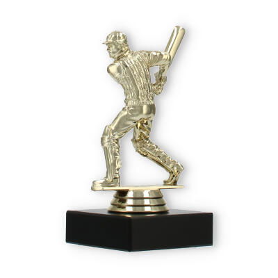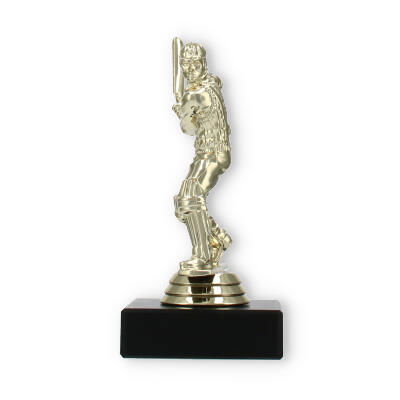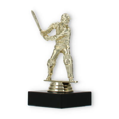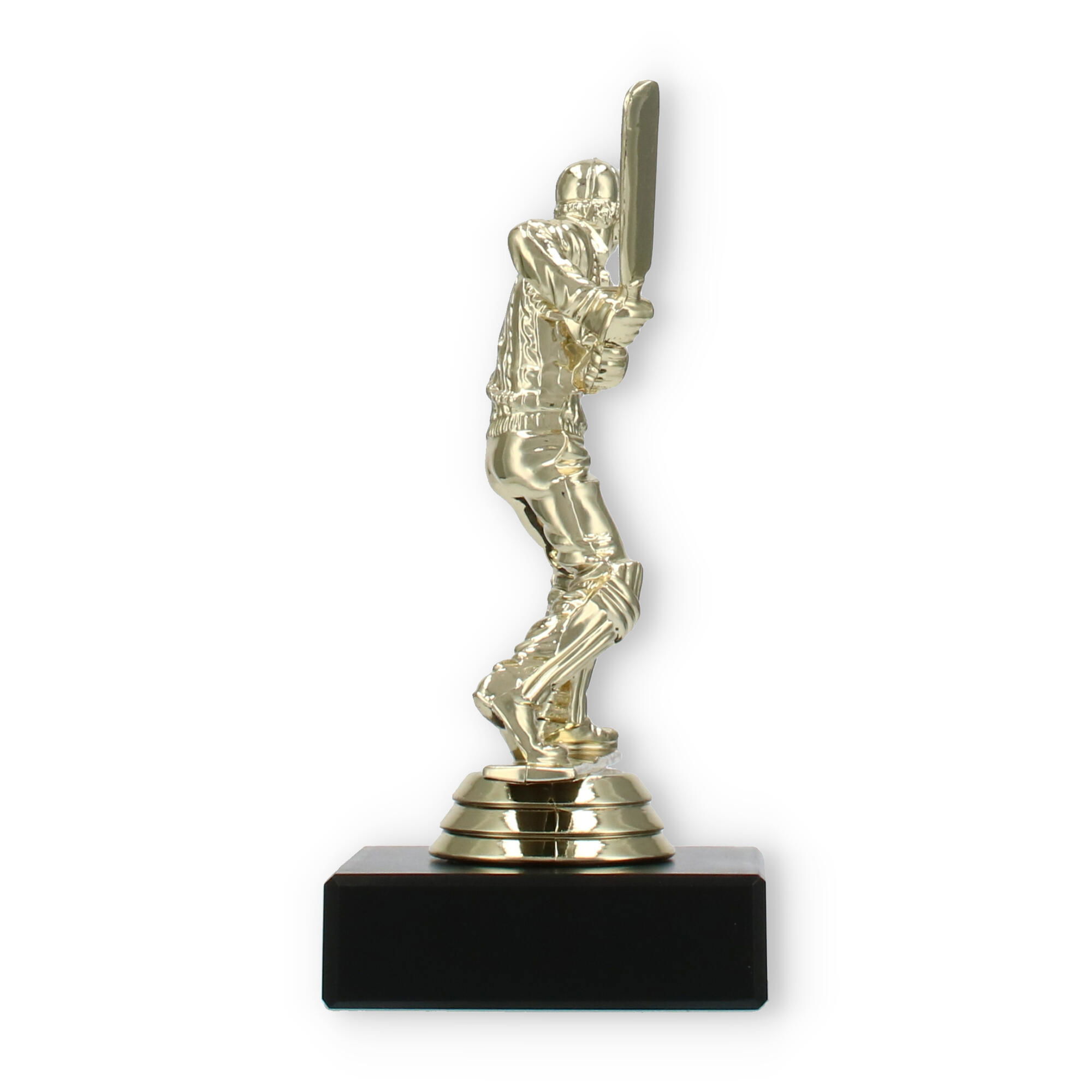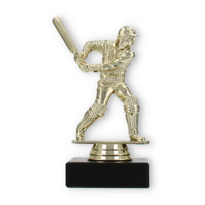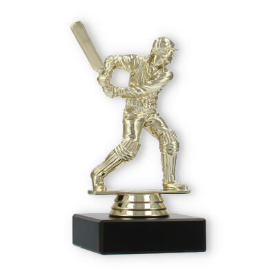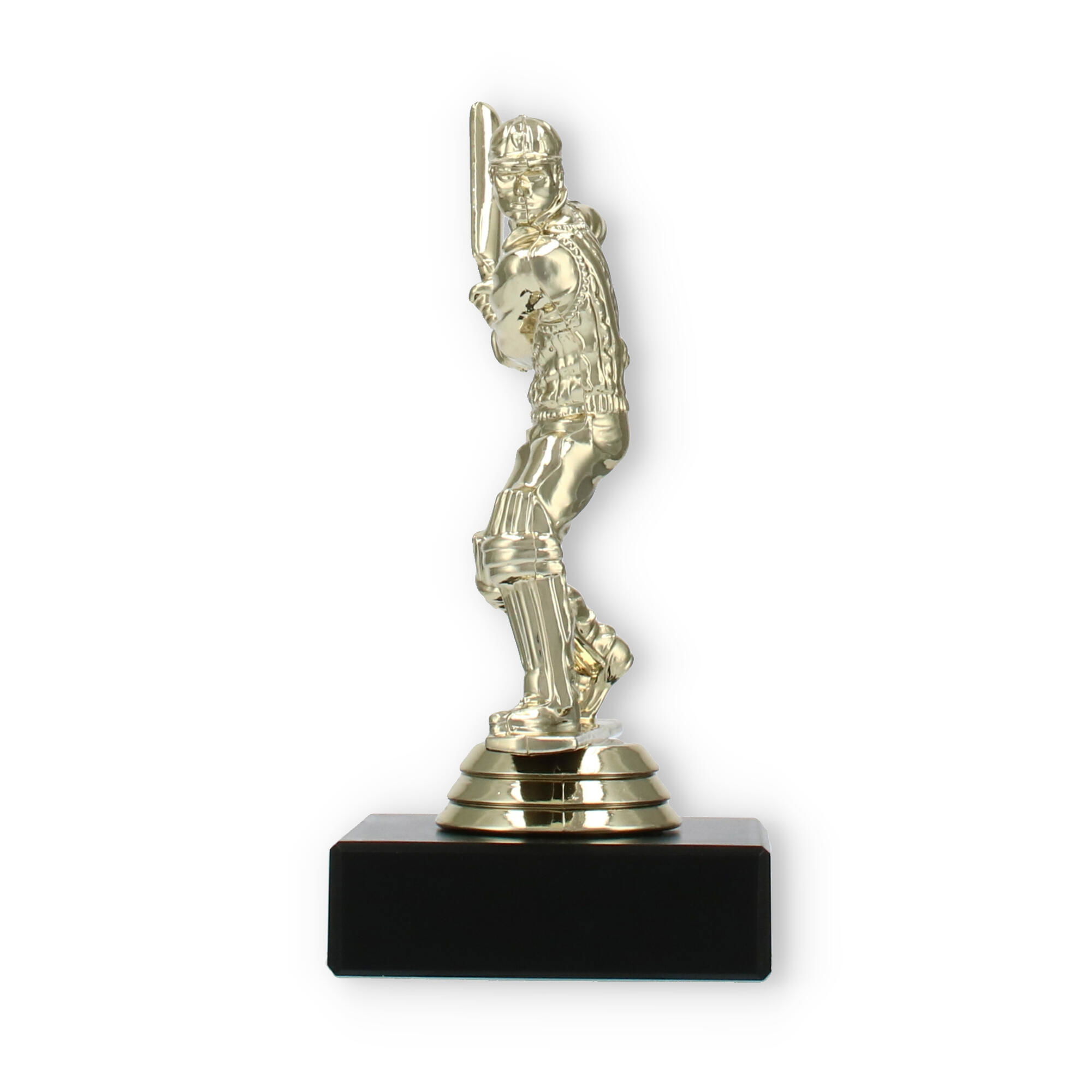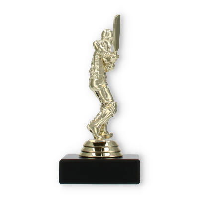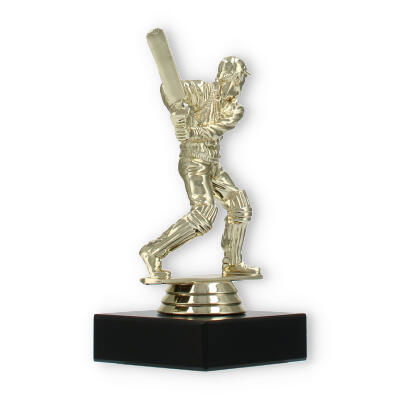 The Cricket Batsman trophy celebrates the prowess and dedication found in cricket competitions. Standing at 13.0 cm, this award captures the essence of triumph for players who excel in this beloved sport. Made from gold-colored plastic, the figure is artfully detailed, depicting a batsman poised in a striking position, helmet on, ready to hit the next big shot.