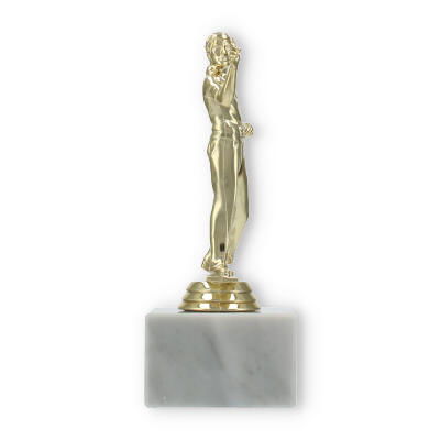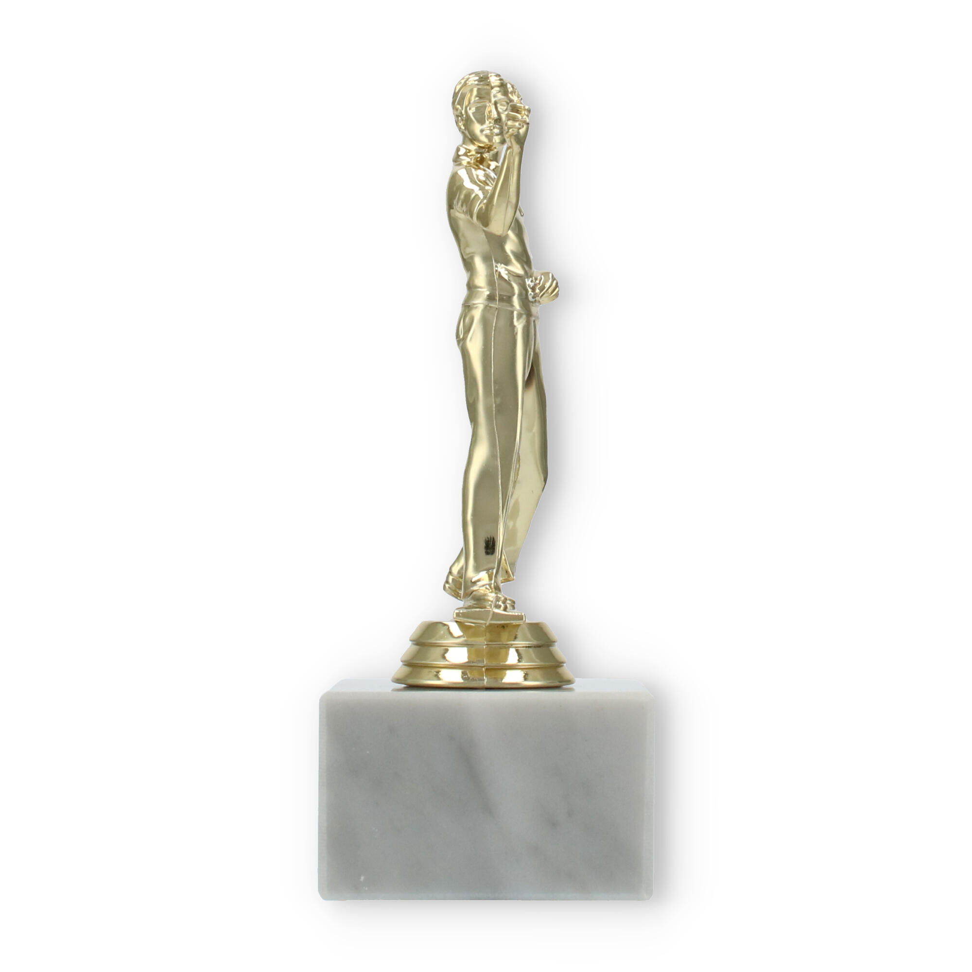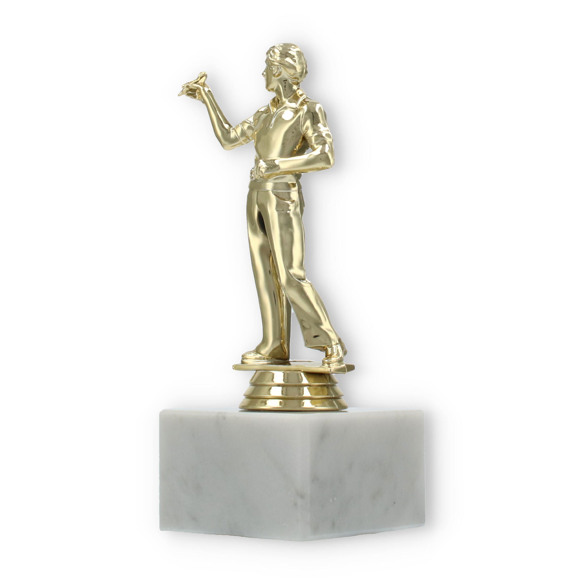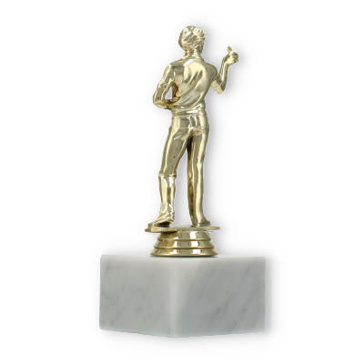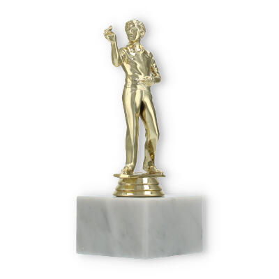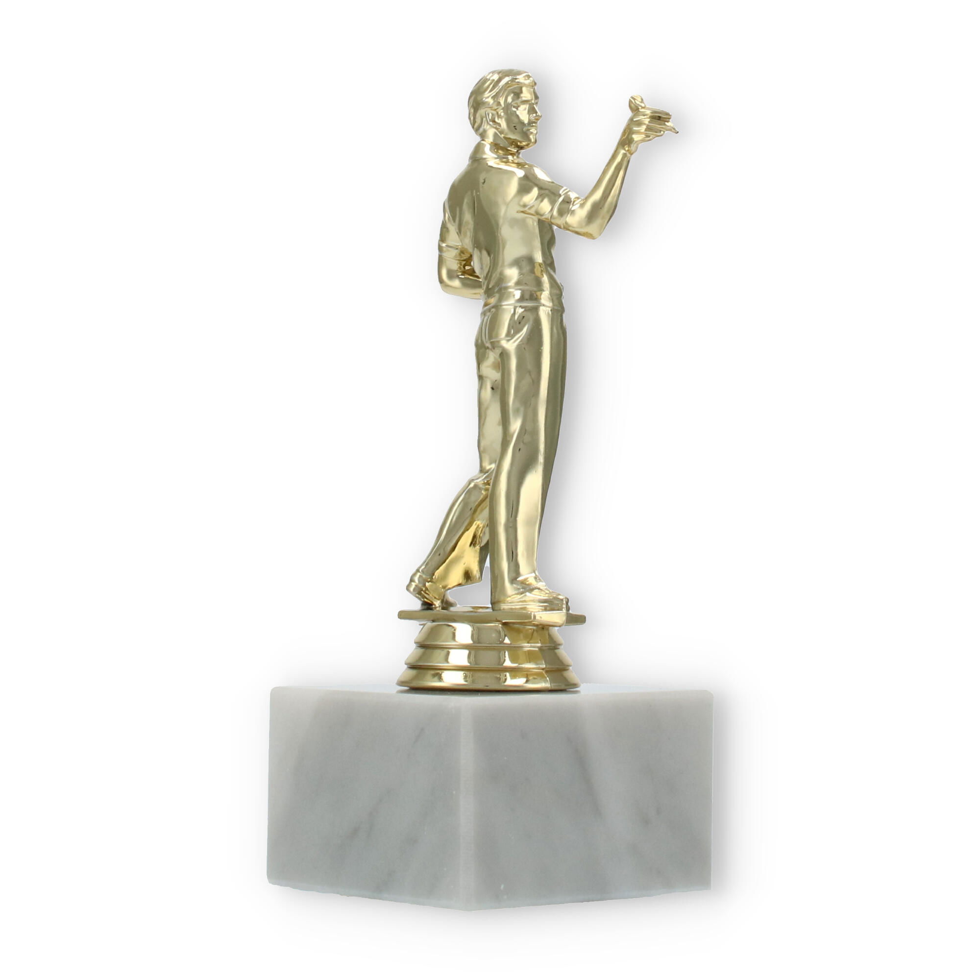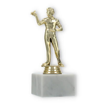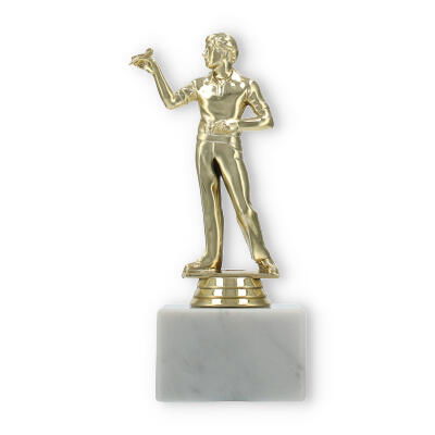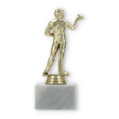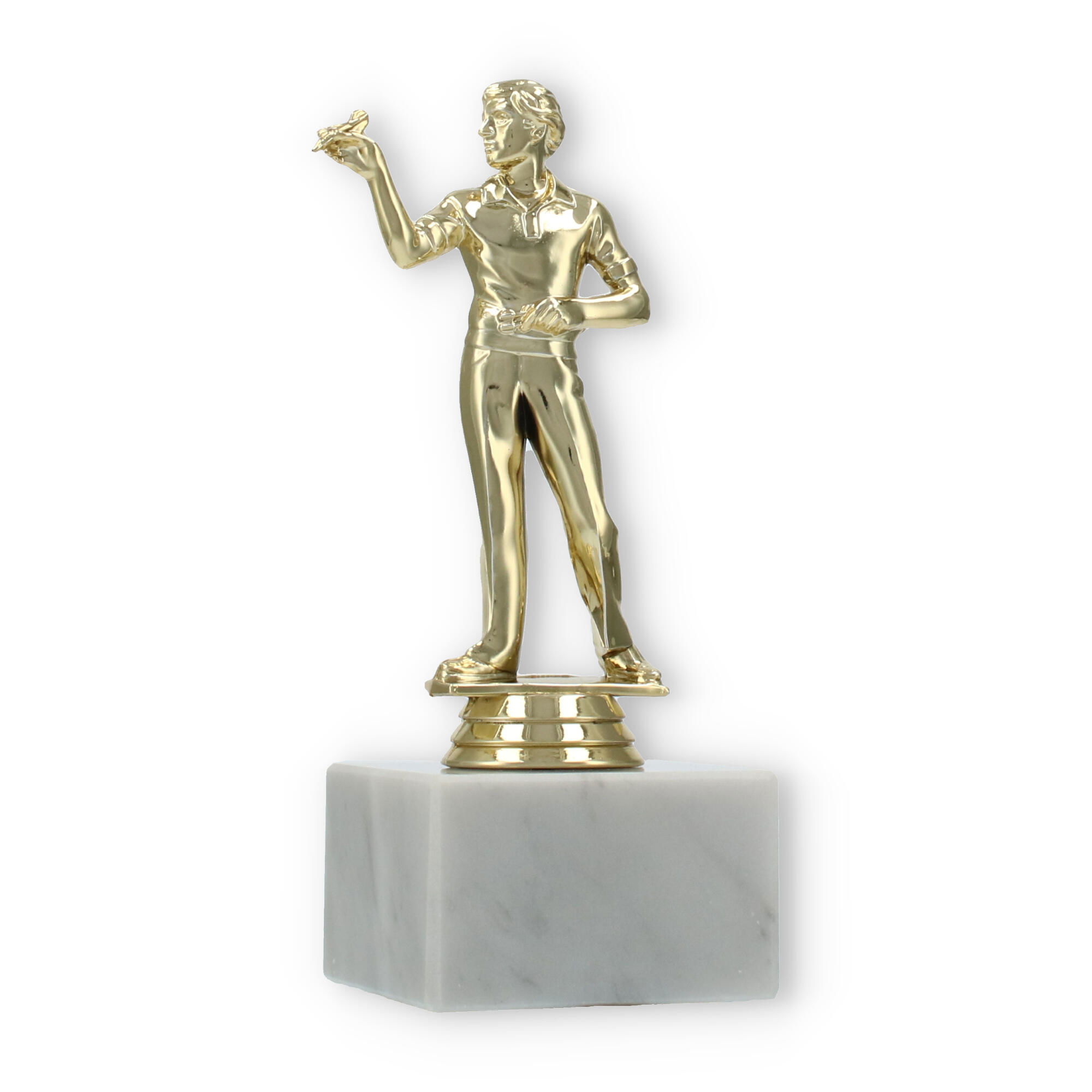 The trophy plastic figure dart player gold on white marble base is a stunning representation of achievement in the sport of darts. Crafted to capture the essence of victory, this trophy makes a perfect centerpiece for any awards ceremony.