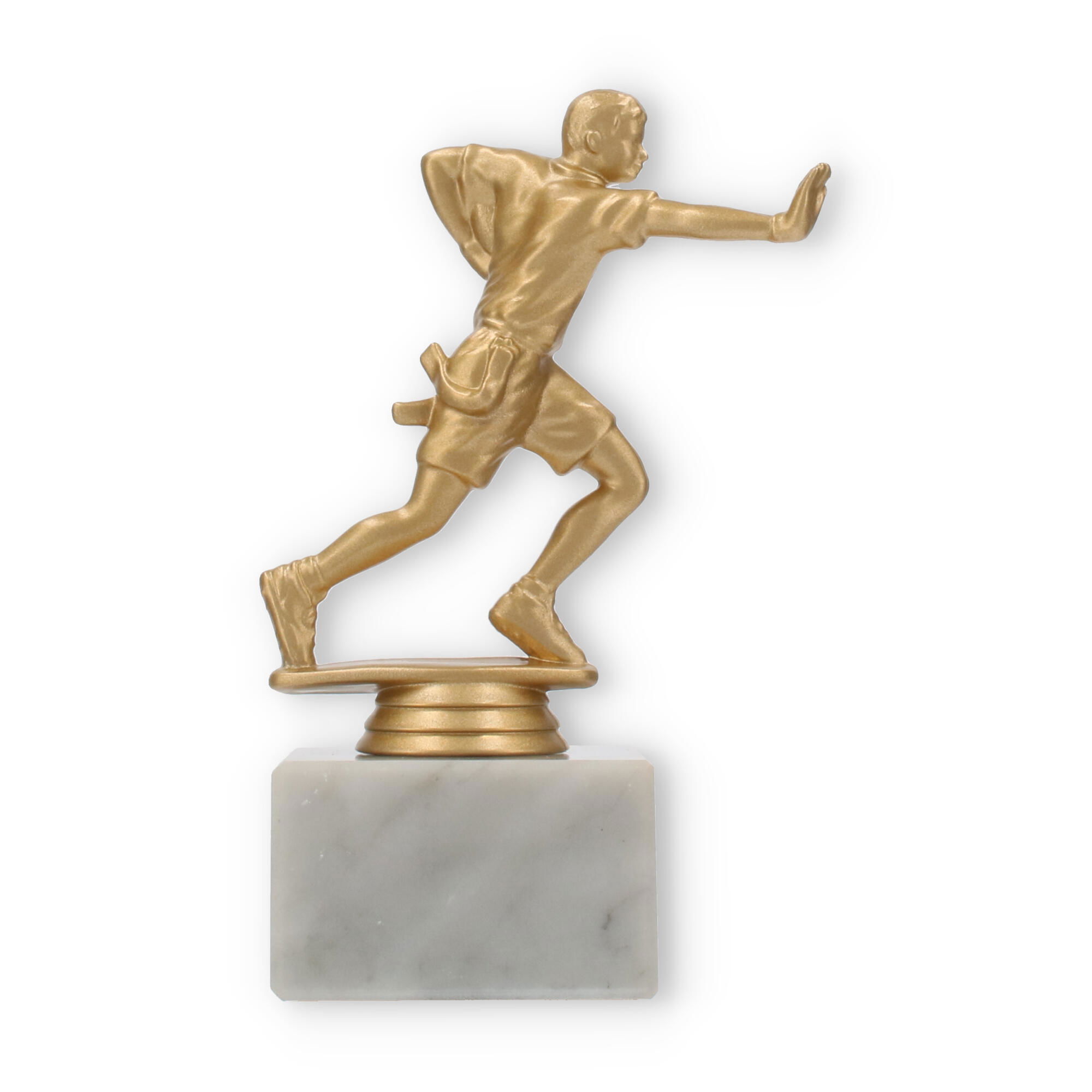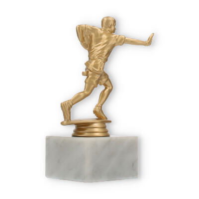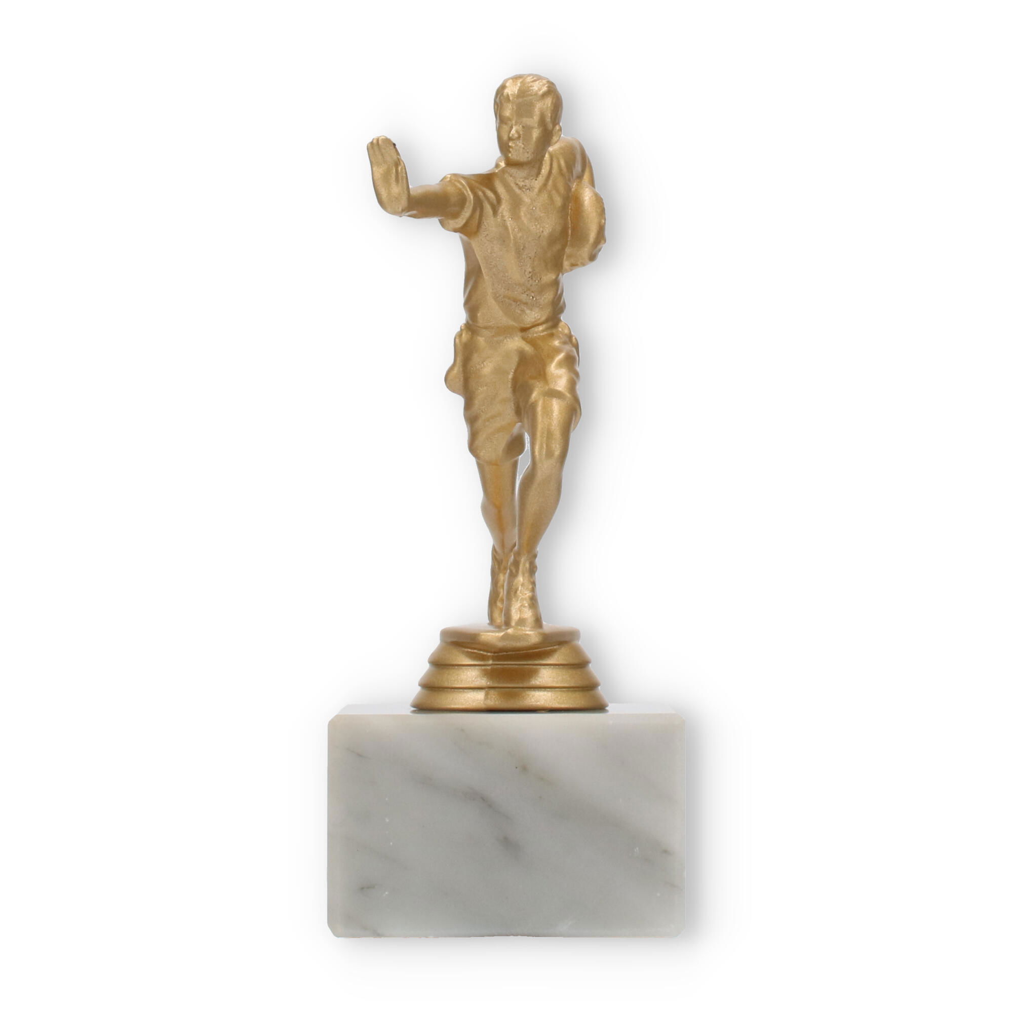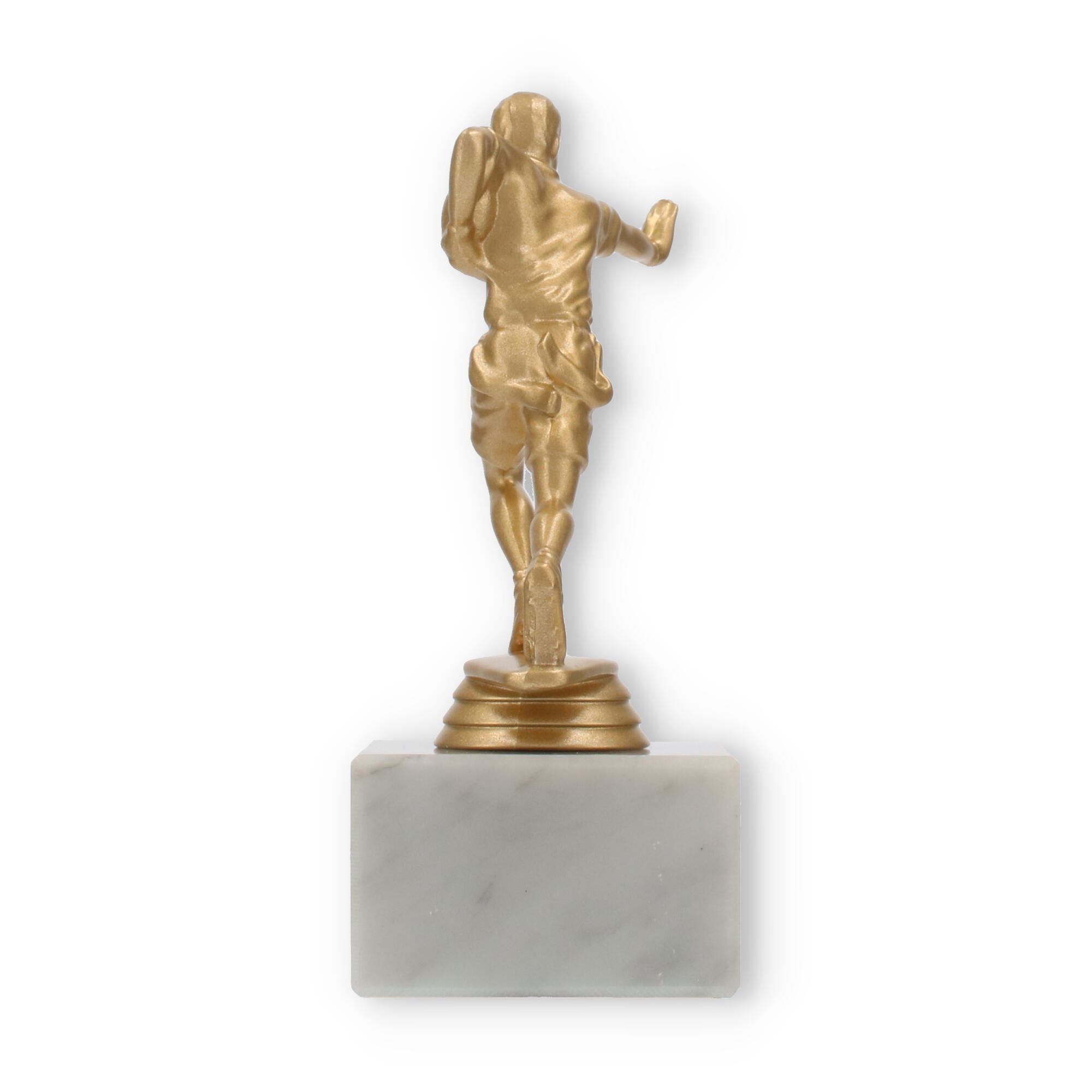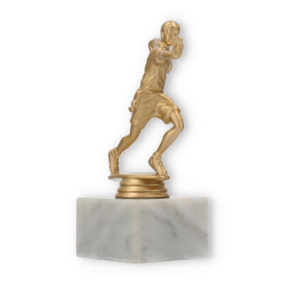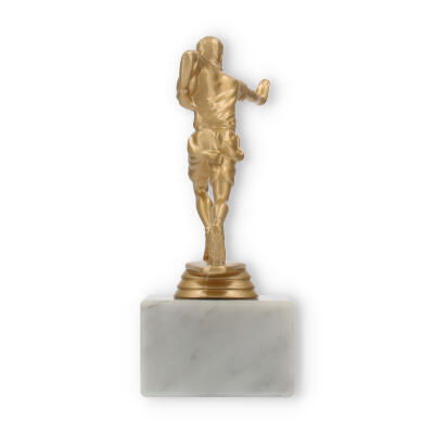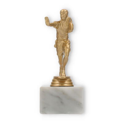 The white marble base contrasts elegantly with the gold metallic hue of the figure, creating a visually striking combination. Standing at 16.0 cm, this trophy is perfectly proportioned to command attention without overwhelming the presentation space.