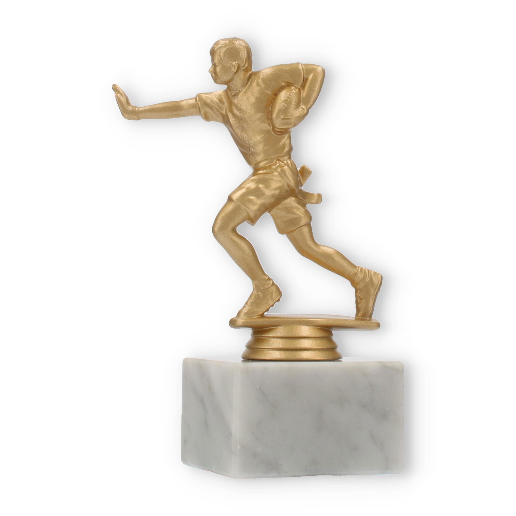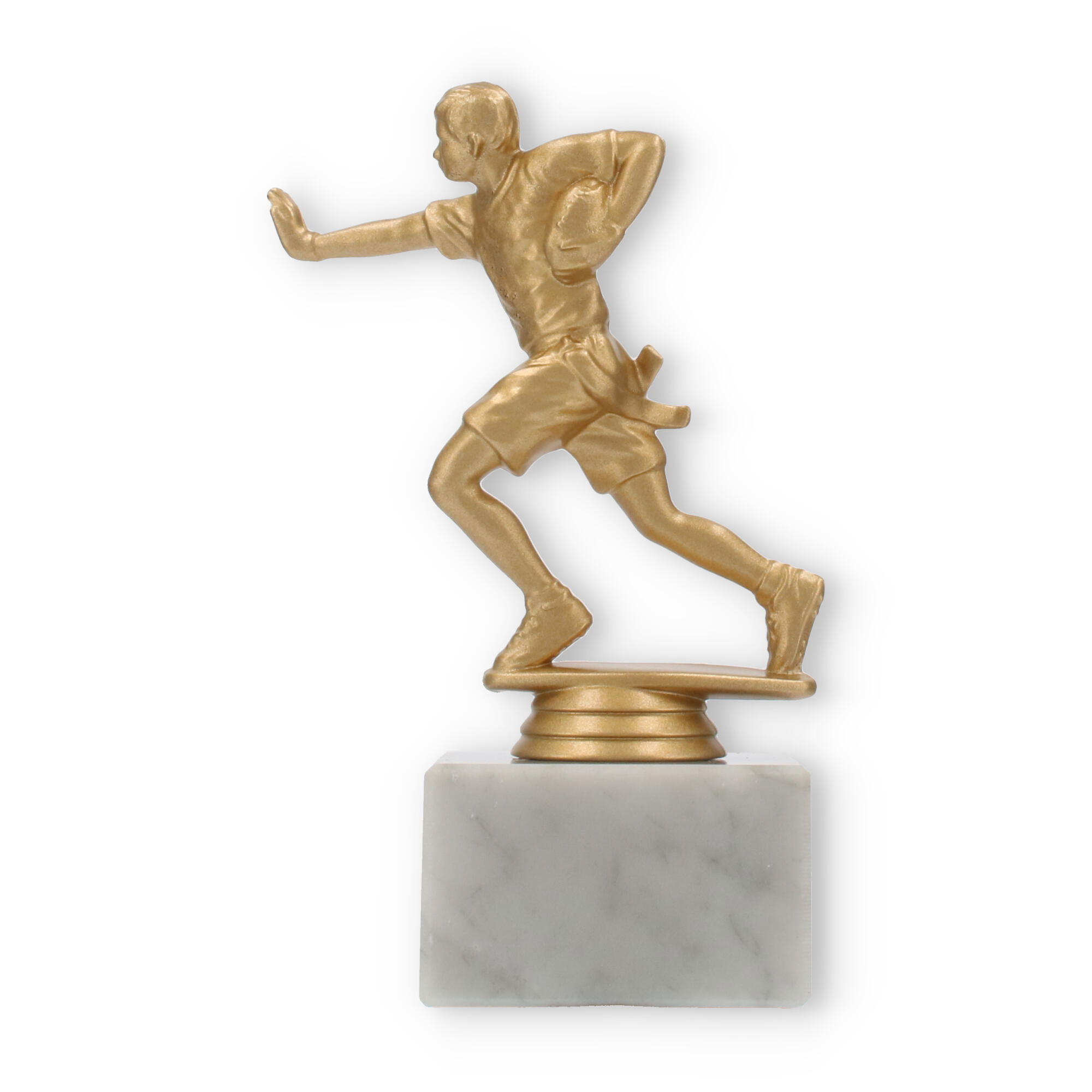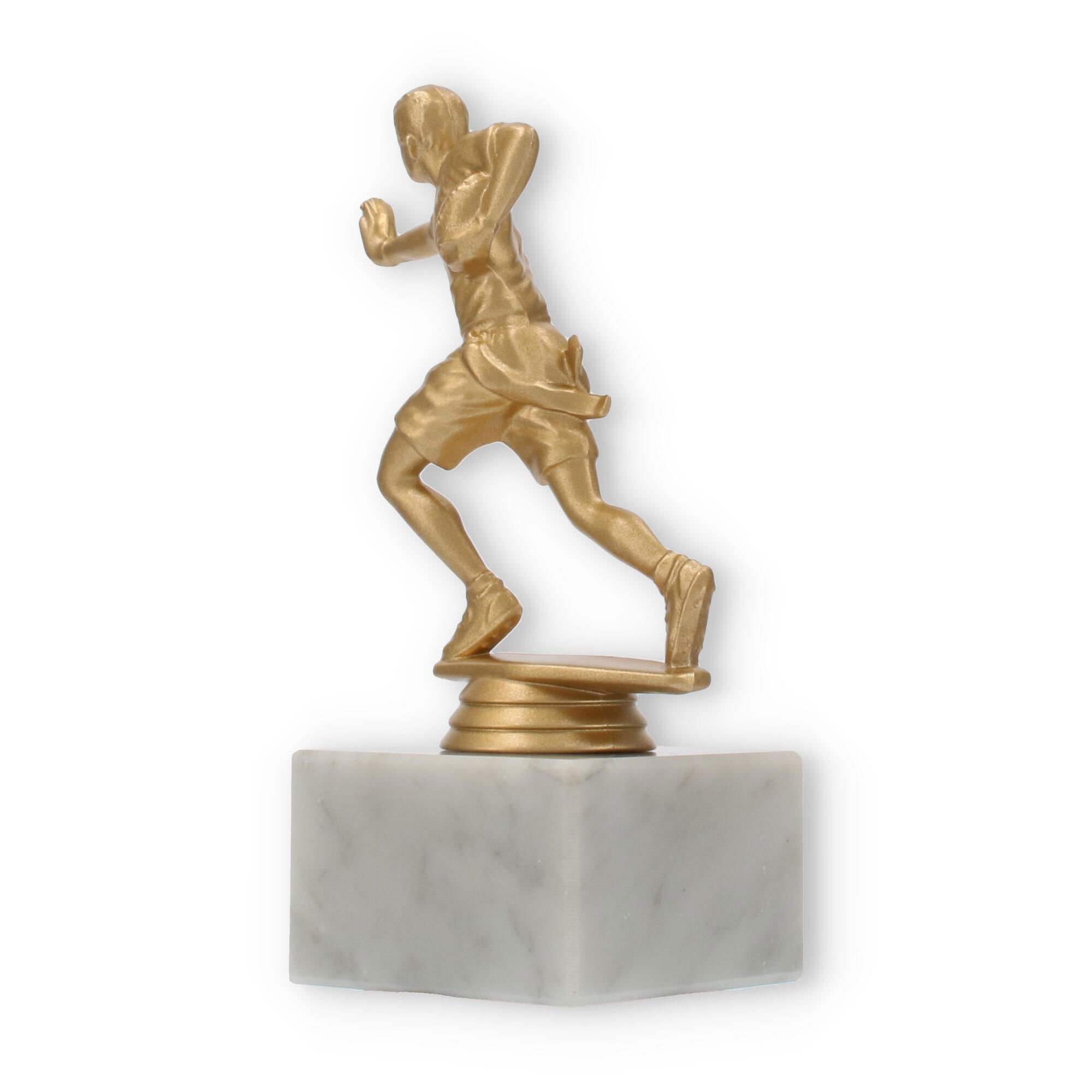 The white marble base contrasts elegantly with the gold metallic hue of the figure, creating a visually striking combination. Standing at 16.0 cm, this trophy is perfectly proportioned to command attention without overwhelming the presentation space.