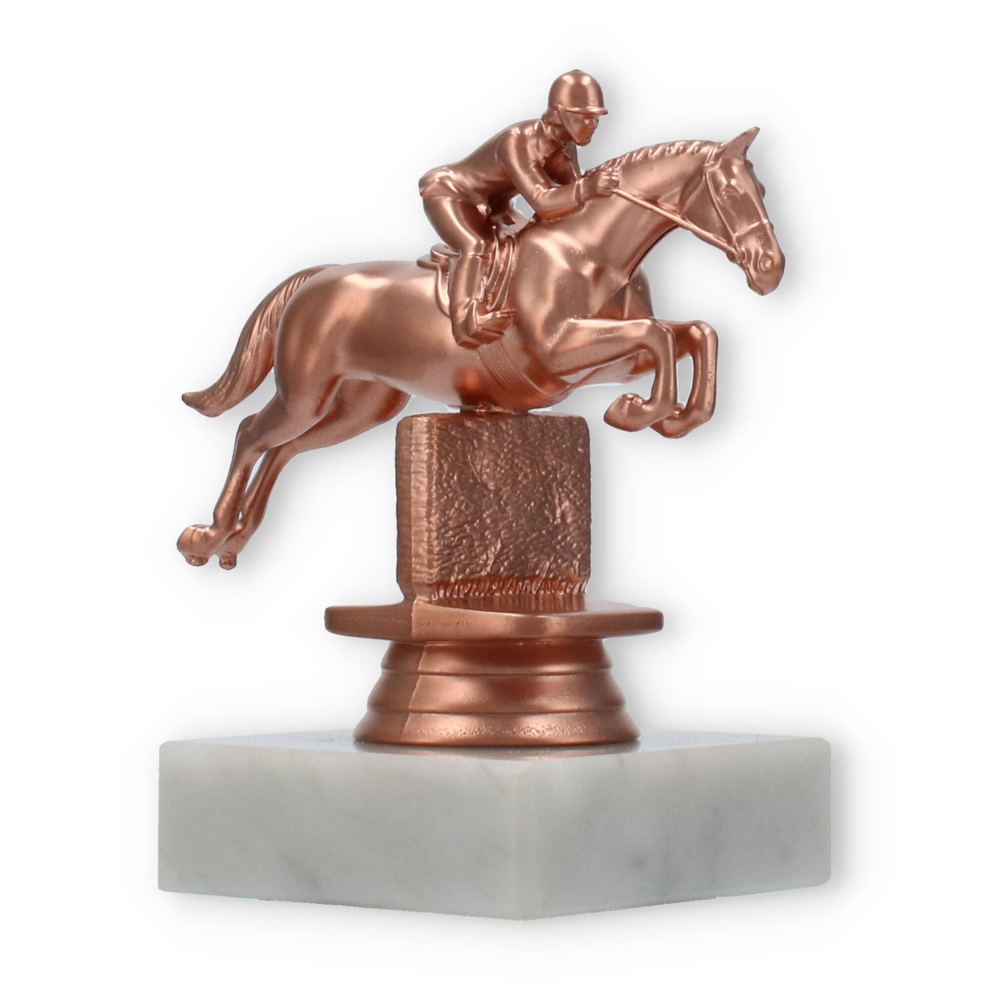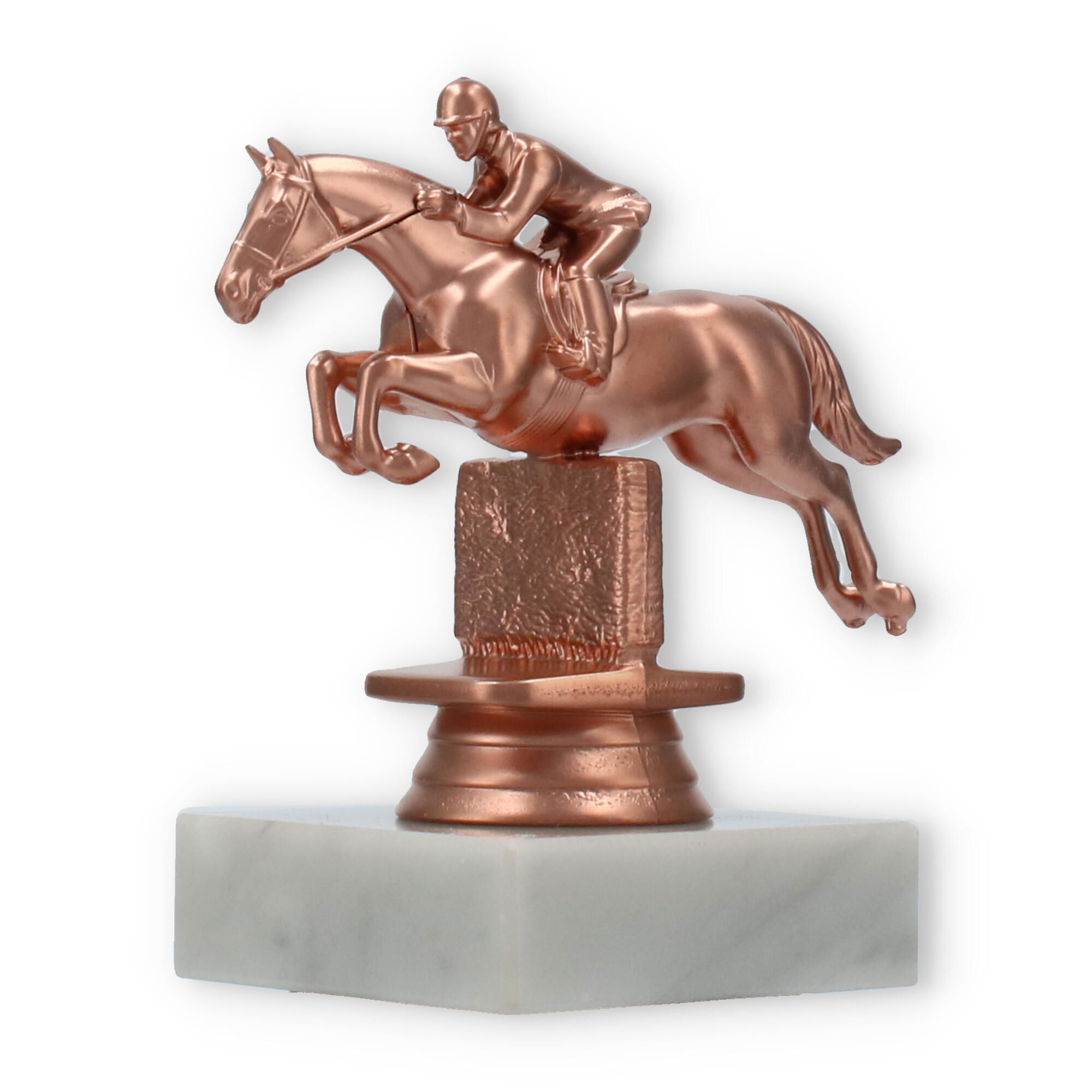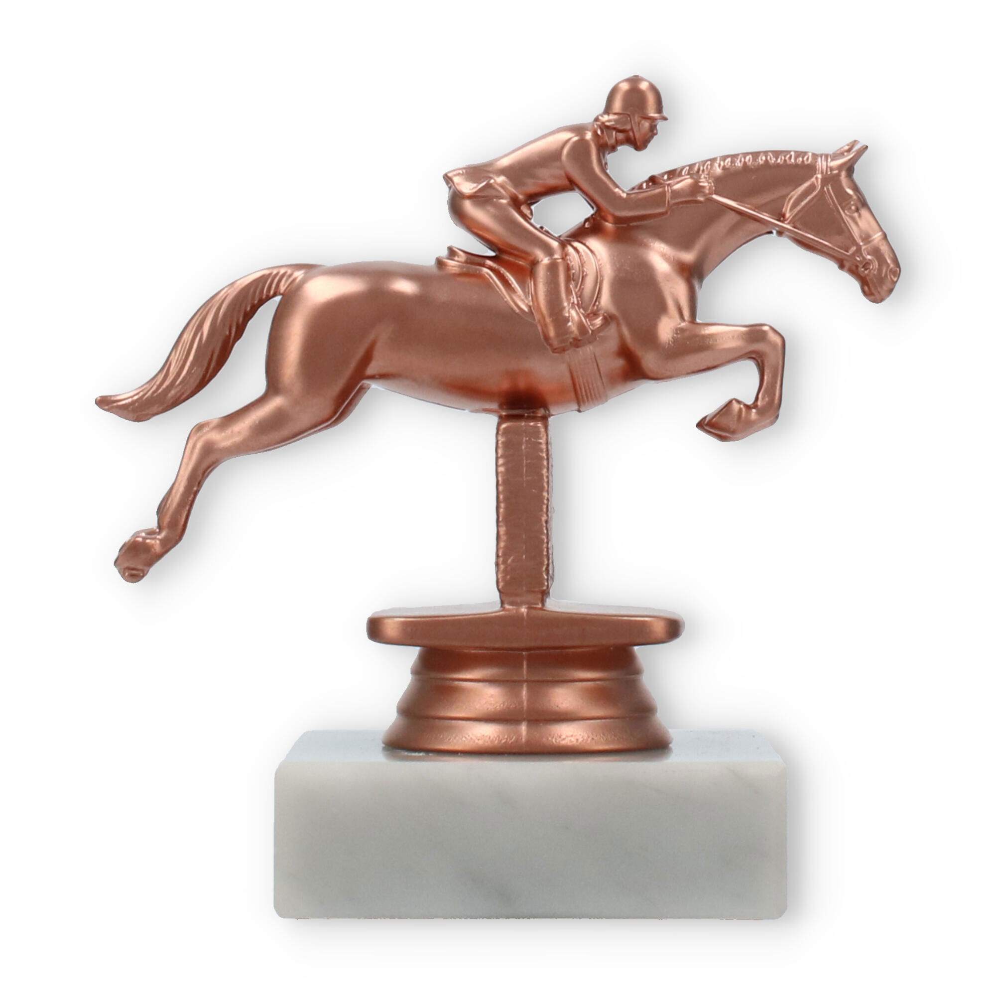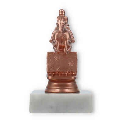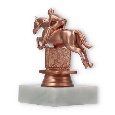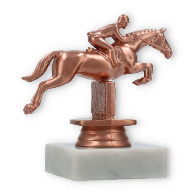 The trophy plastic figure show jumping in bronze-tone, perched elegantly on a white marble base, epitomizes the spirit of competition. This 10.8cm high figure embodies the dynamic and graceful nature of equestrian sports, making it a fitting tribute to the champions of every event.