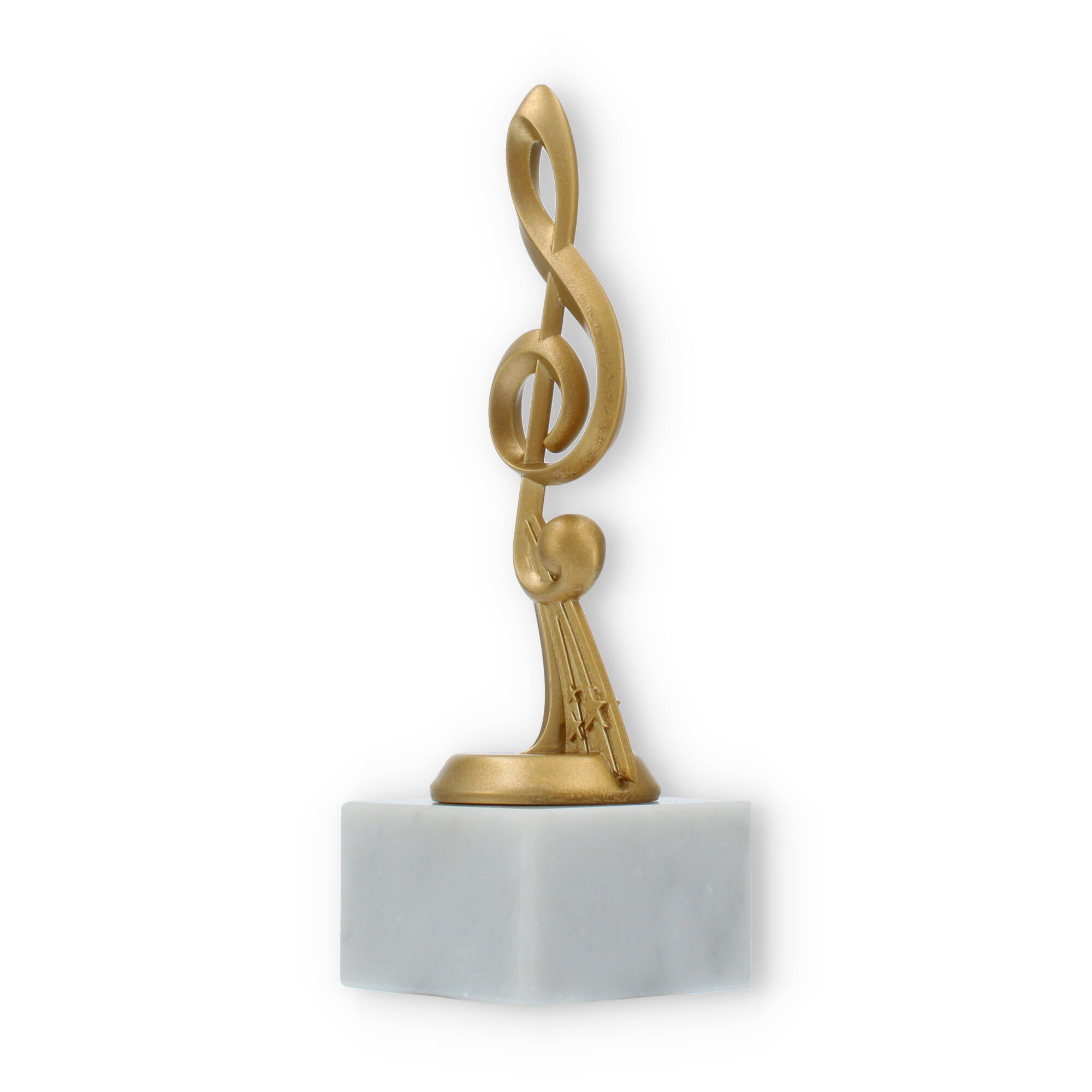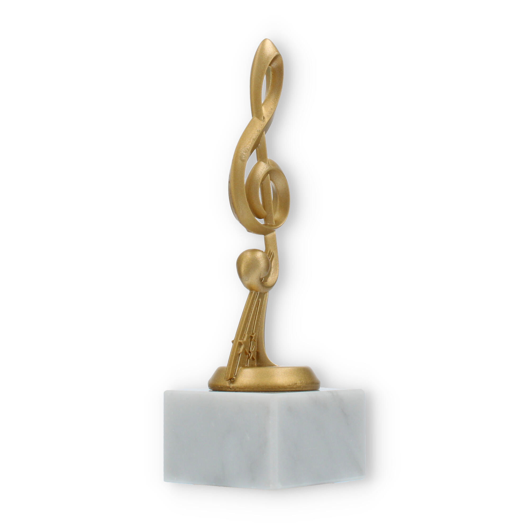 The base of this trophy is crafted from solid white marble, polished to reveal subtle grey veins that add a touch of class. Its cube shape provides a stable foundation, ensuring the trophy stands proudly on any surface. The top is adorned with a stylish gold-colored clef, made from durable metal-like plastic, which captures light beautifully and adds a warm glow to the award.