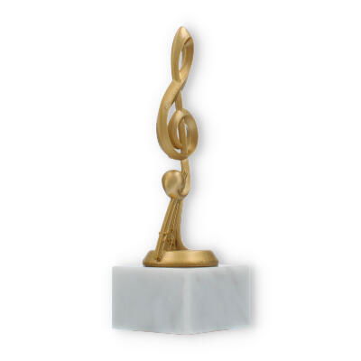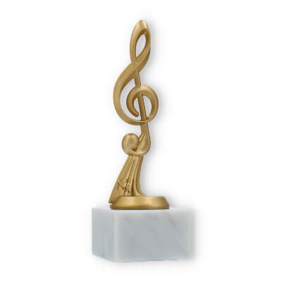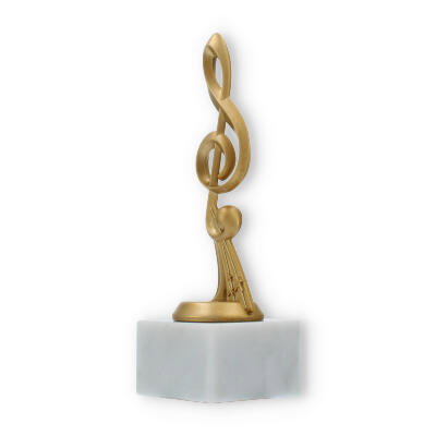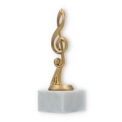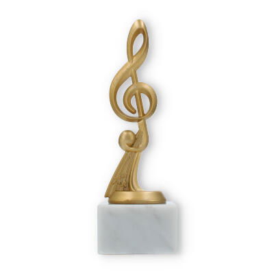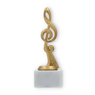 Introducing the Clef trophy, a symbol of musical excellence and a true eye-catcher at any event. Standing tall at 19.7 cm, this trophy combines the cool elegance of a polished white marble base with the dynamic design of a gold-colored plastic clef figure. It’s the perfect way to celebrate outstanding performances and make moments unforgettable.