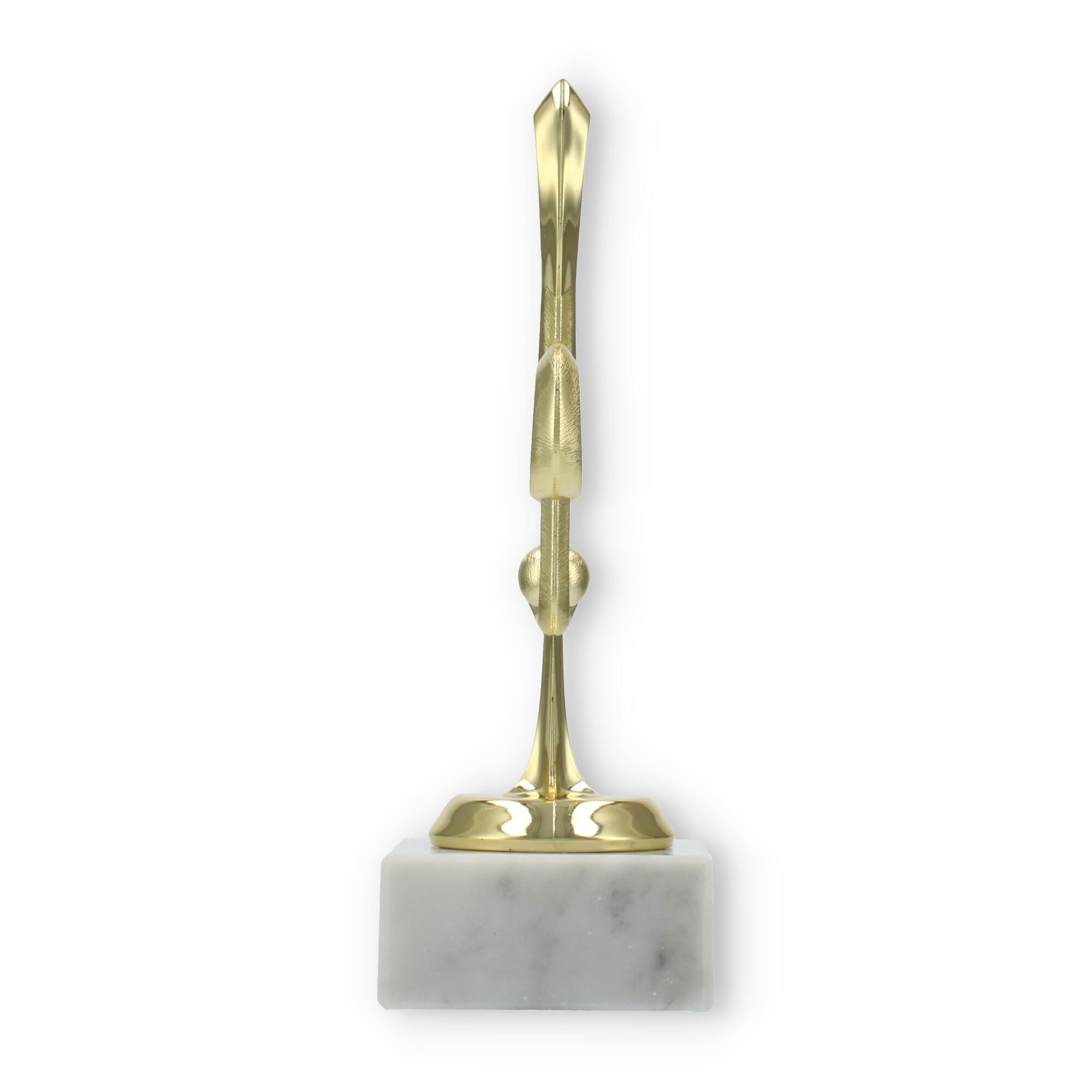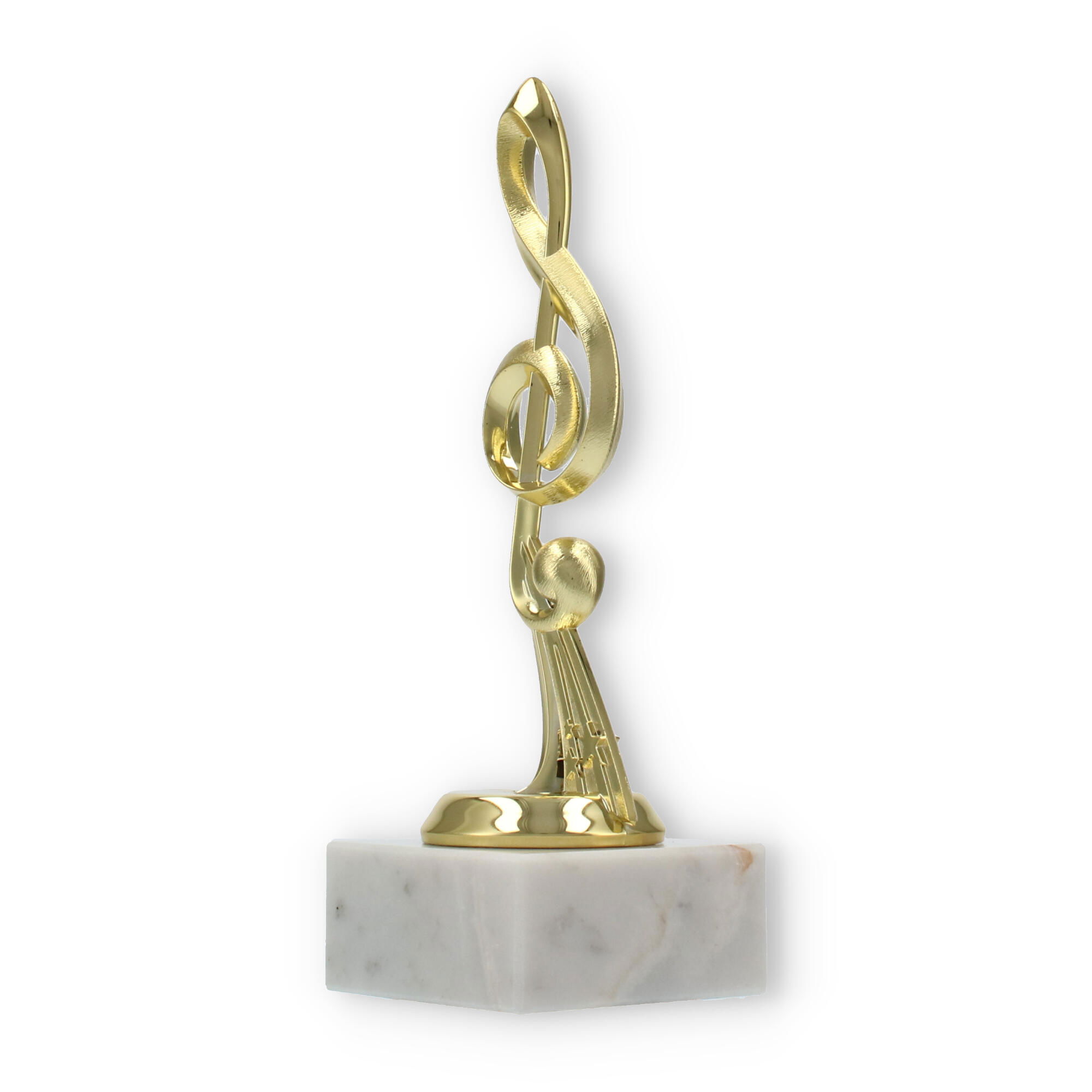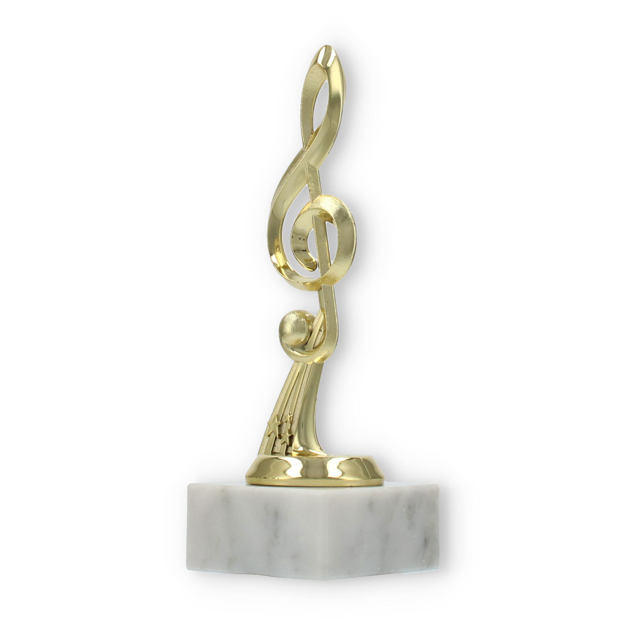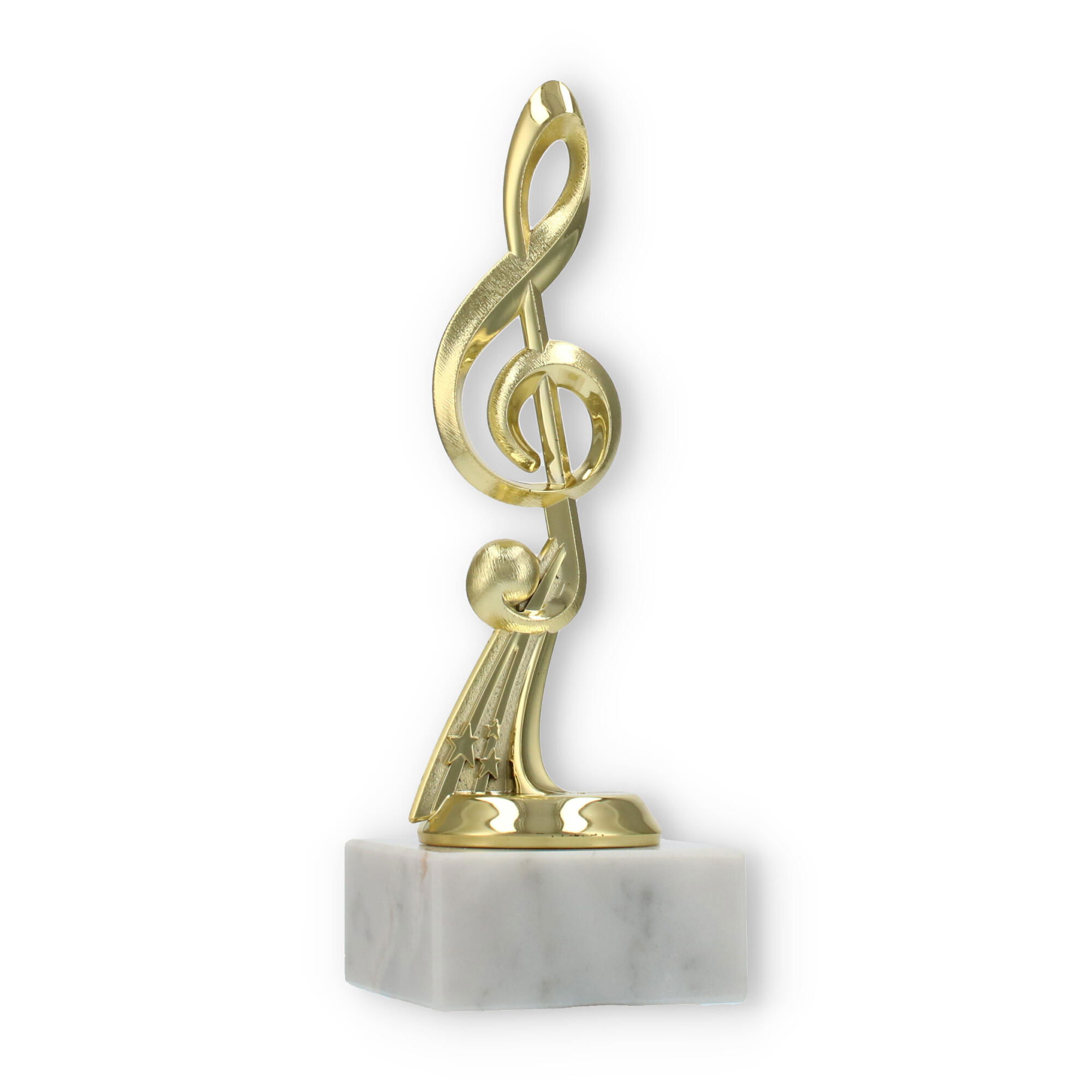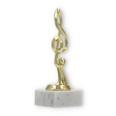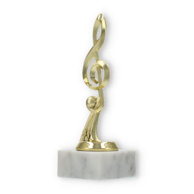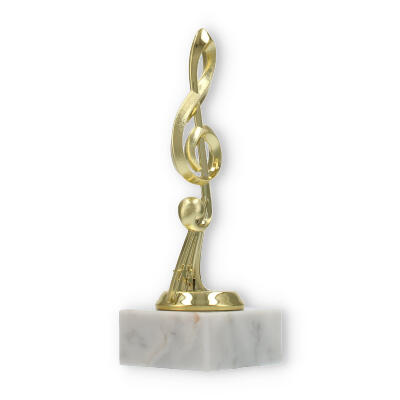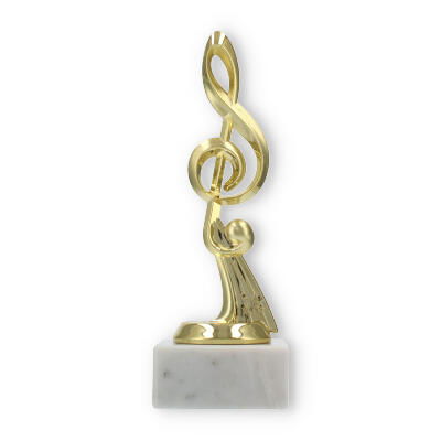 Ideal for honoring outstanding musical achievements, the Clef trophy is designed to leave a lasting impression. Whether displayed in a trophy case or on a shelf, it serves as a constant reminder of success and commitment to the art of music. The base’s chic white color with gray veining complements the gold-colored figurine perfectly, creating a harmonious and elegant design.