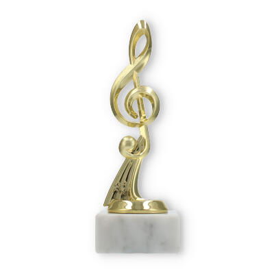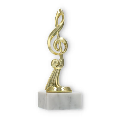 The Clef trophy represents a fusion of elegance and meaningful recognition. Every music competition becomes unforgettable when this stunning trophy is part of the award ceremony. The gold-colored plastic G-clef atop the sleek white marble base stands out, thus adding a touch of sophistication to any event. With the possibility of personalized engraving, the Clef trophy transforms ordinary moments into lasting memories that resonate with emotion.