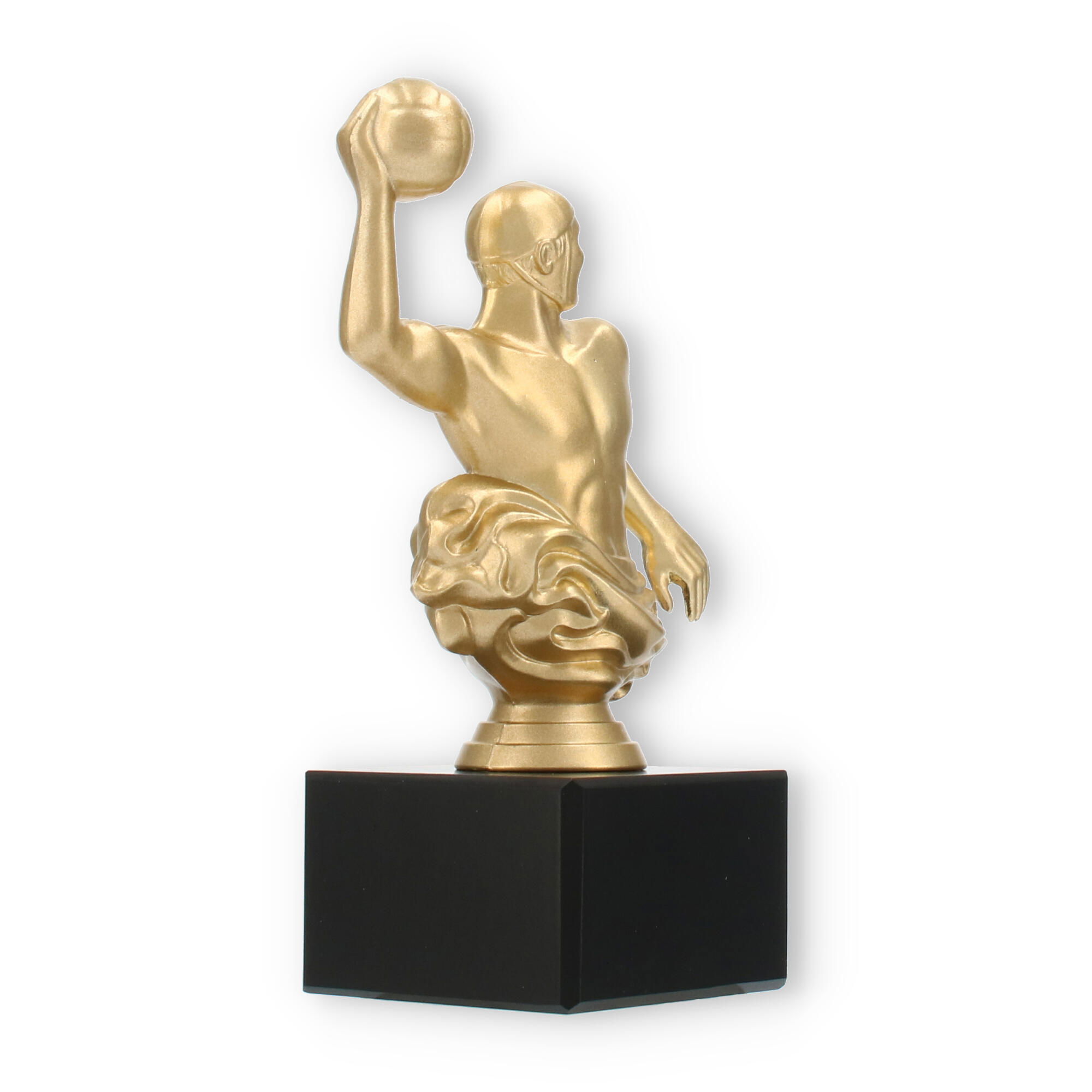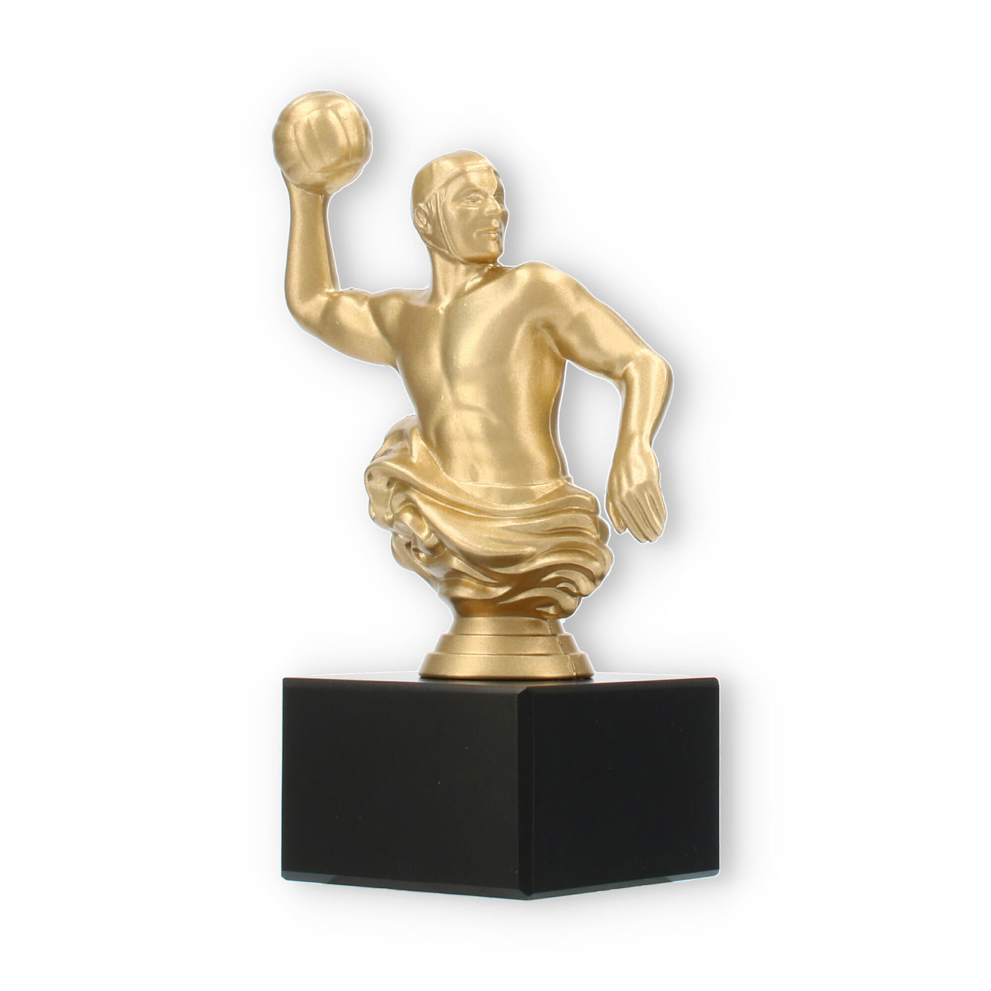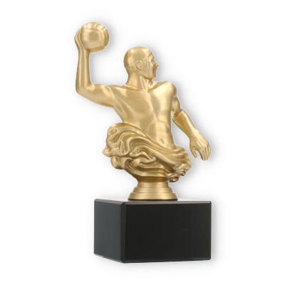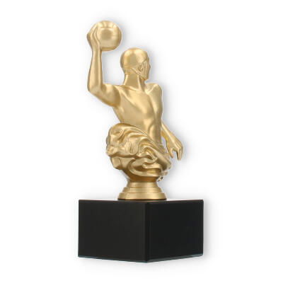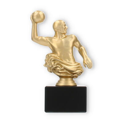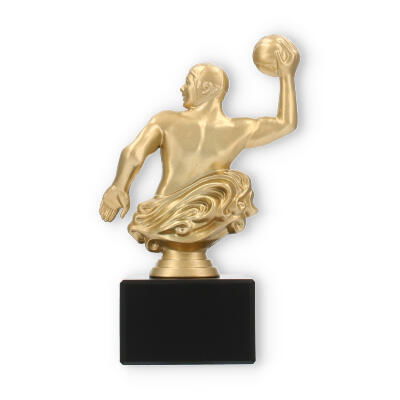 Celebrate the achievements of your water polo stars with this exquisitely crafted trophy figure. The detailed gold metallic plastic figure captures the dynamic motion of a water polo player, holding a ball high with confidence and determination. Standing at 16.3 cm, this trophy makes a significant impression at any ceremony.