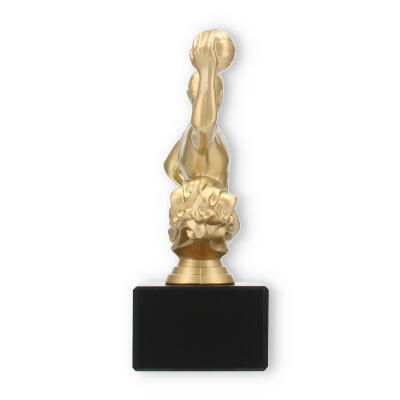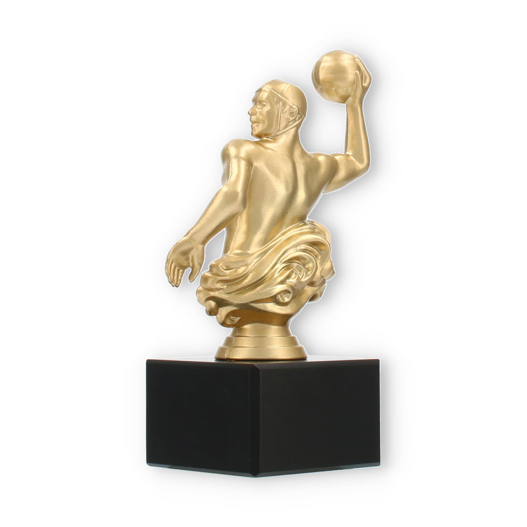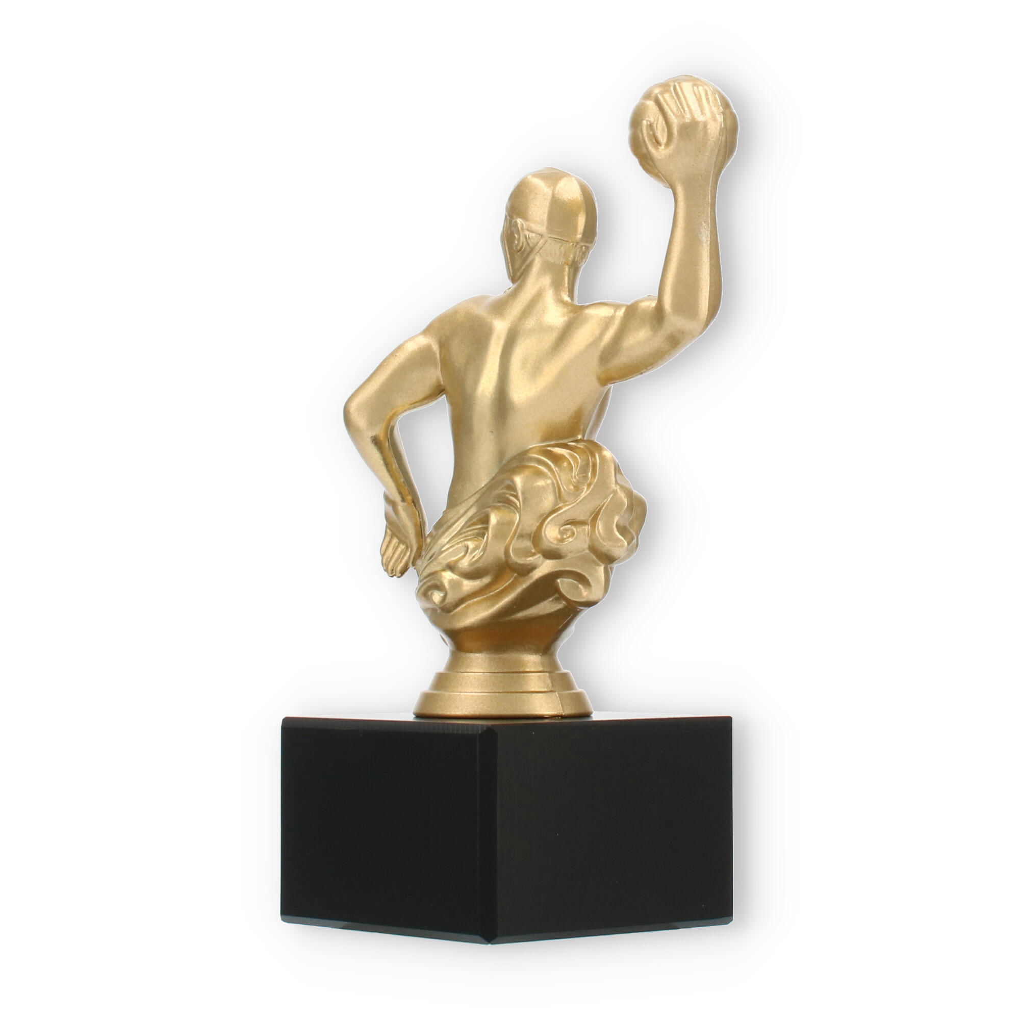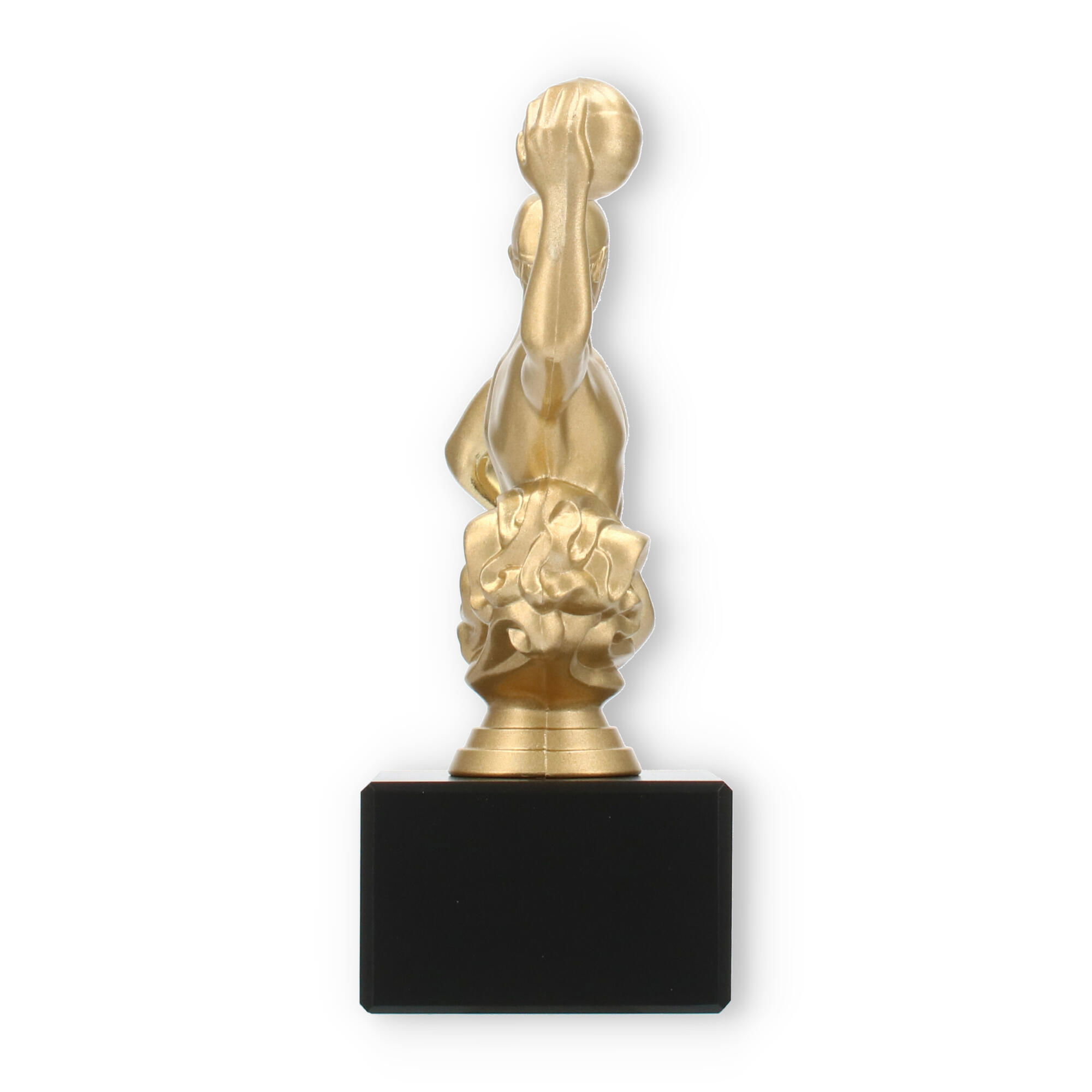 Celebrate the achievements of your water polo stars with this exquisitely crafted trophy figure. The detailed gold metallic plastic figure captures the dynamic motion of a water polo player, holding a ball high with confidence and determination. Standing at 16.3 cm, this trophy makes a significant impression at any ceremony.