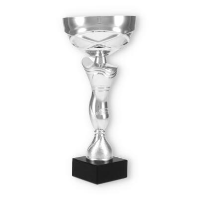 The trophy features a beautifully crafted shaft with graceful, asymmetrical lines and a combination of smooth and textured surfaces. The round, gleaming cup at the top enhances its majestic appearance, drawing all eyes towards the victorious moment.
