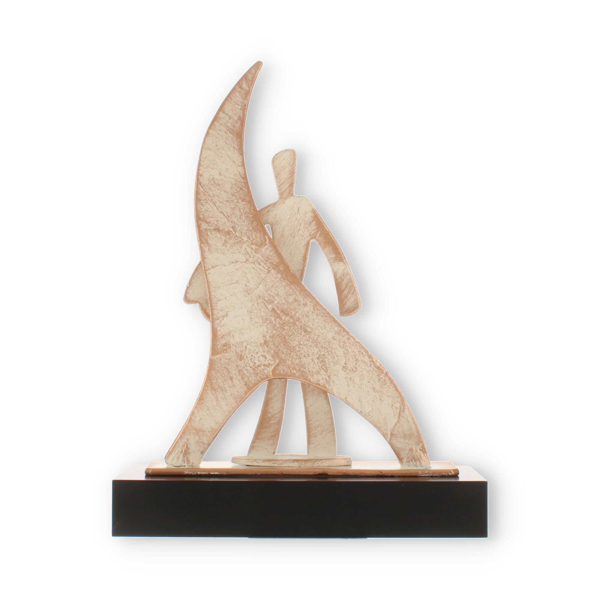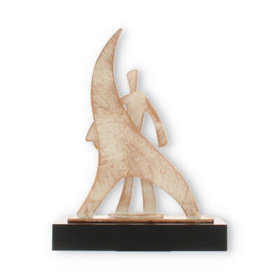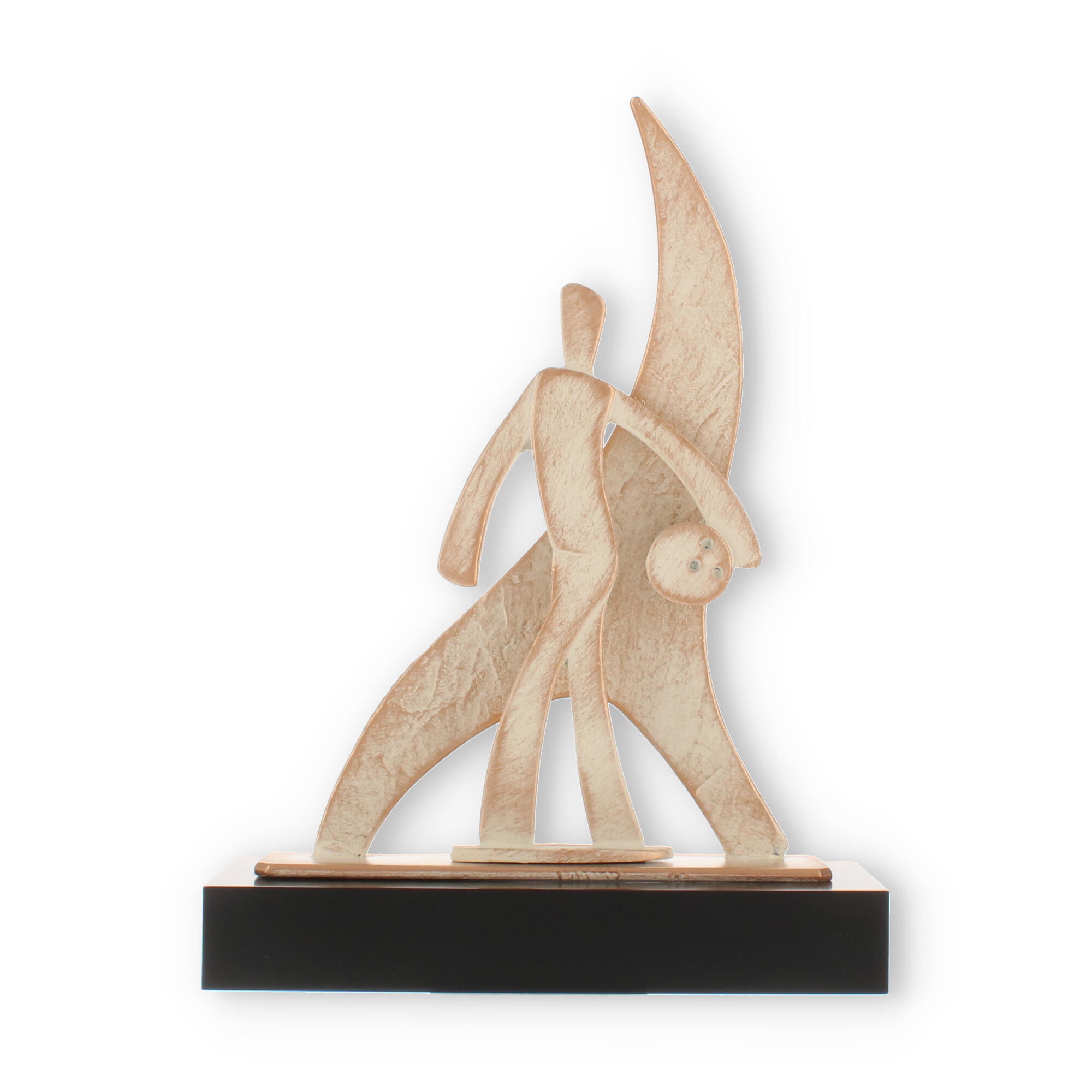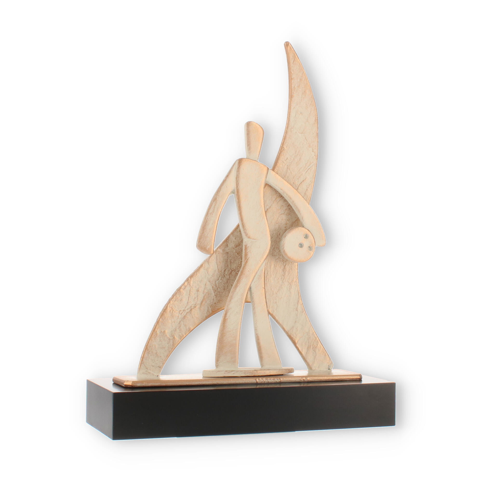 Introducing the Trophy Zamak figure Flame Skittles in gold and white, mounted on a black wooden base. This trophy is designed to bring a touch of sophistication and honor to your Skittles competition. Its modern and abstract form emphasizes movement and dynamism, showcasing a stylized figure in motion.