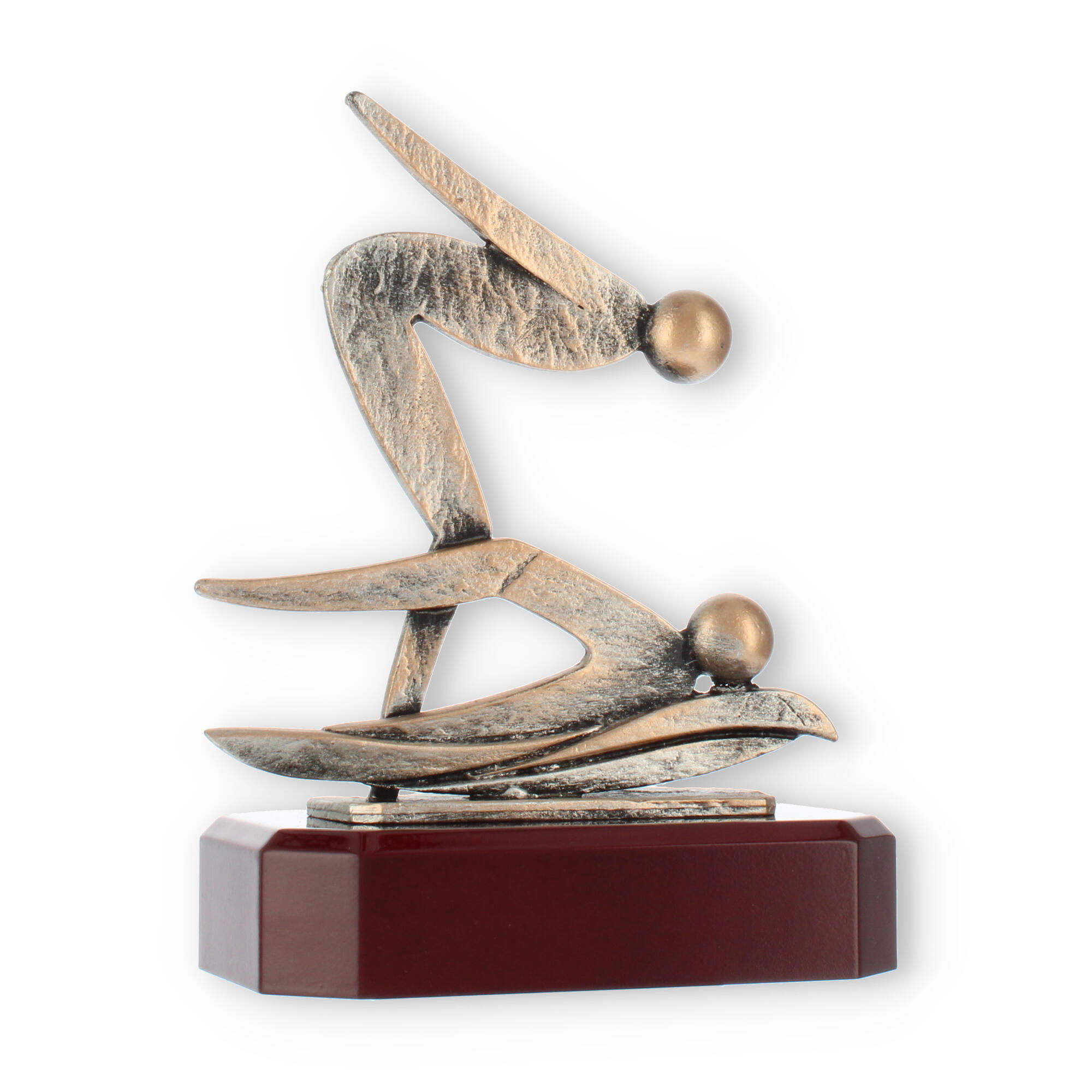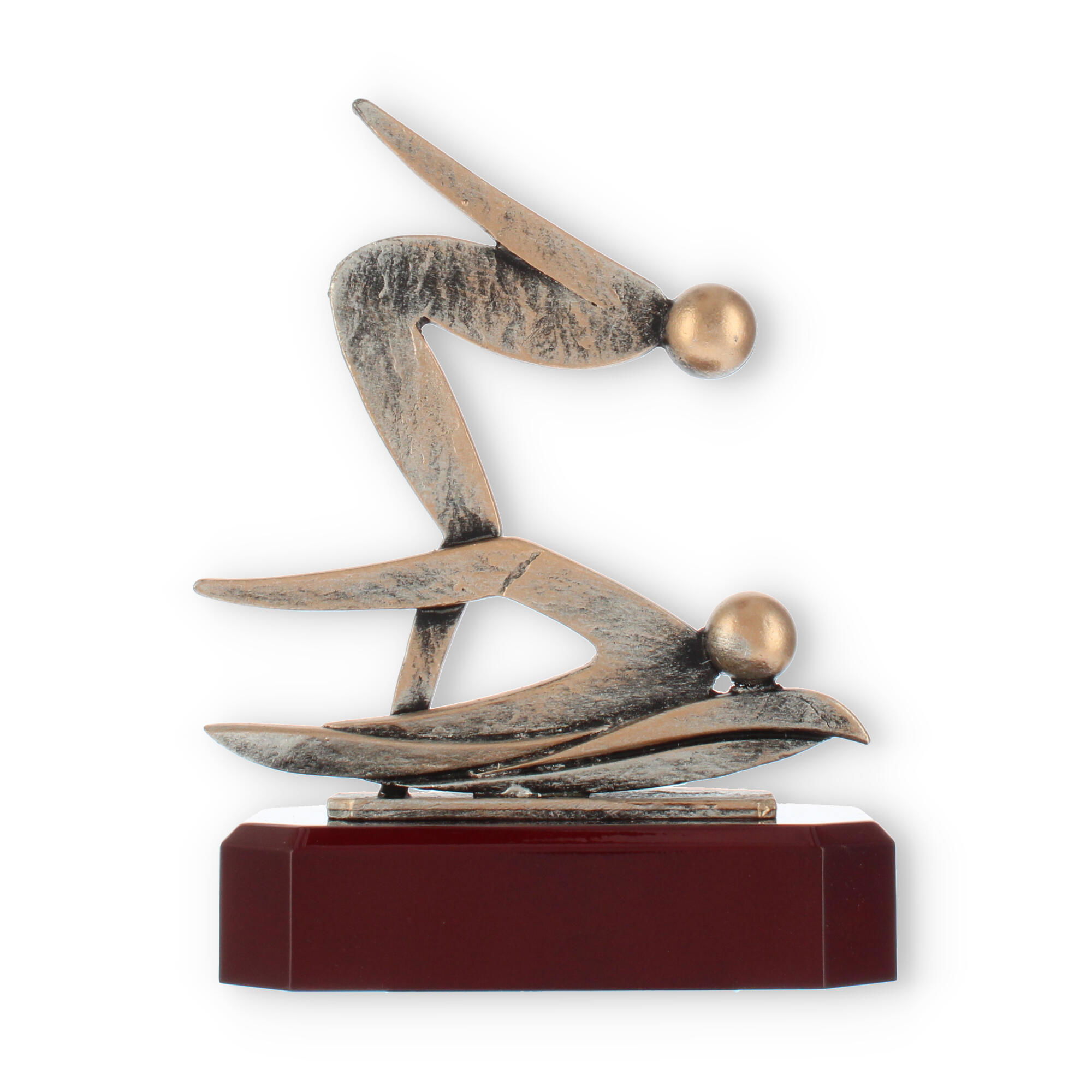 The Swimmer trophy is a striking award designed with sophistication and emotion. Featuring an abstract zamak figure with an old-gold patina, this trophy is a symbol of excellence and achievement in swimming. The textured, dynamic forms of the two intertwined figures create a sense of movement, capturing the energy and dedication required to excel in the sport.