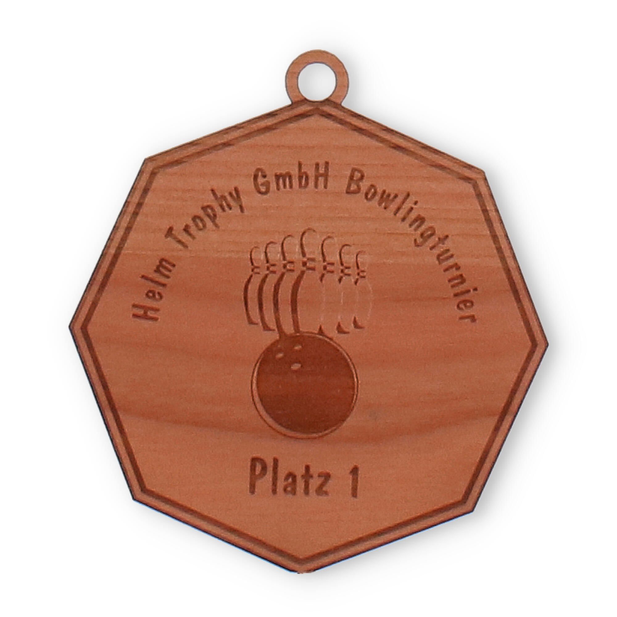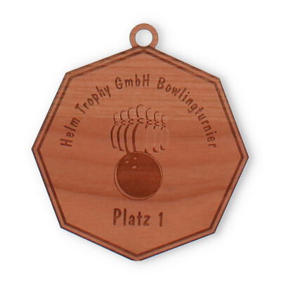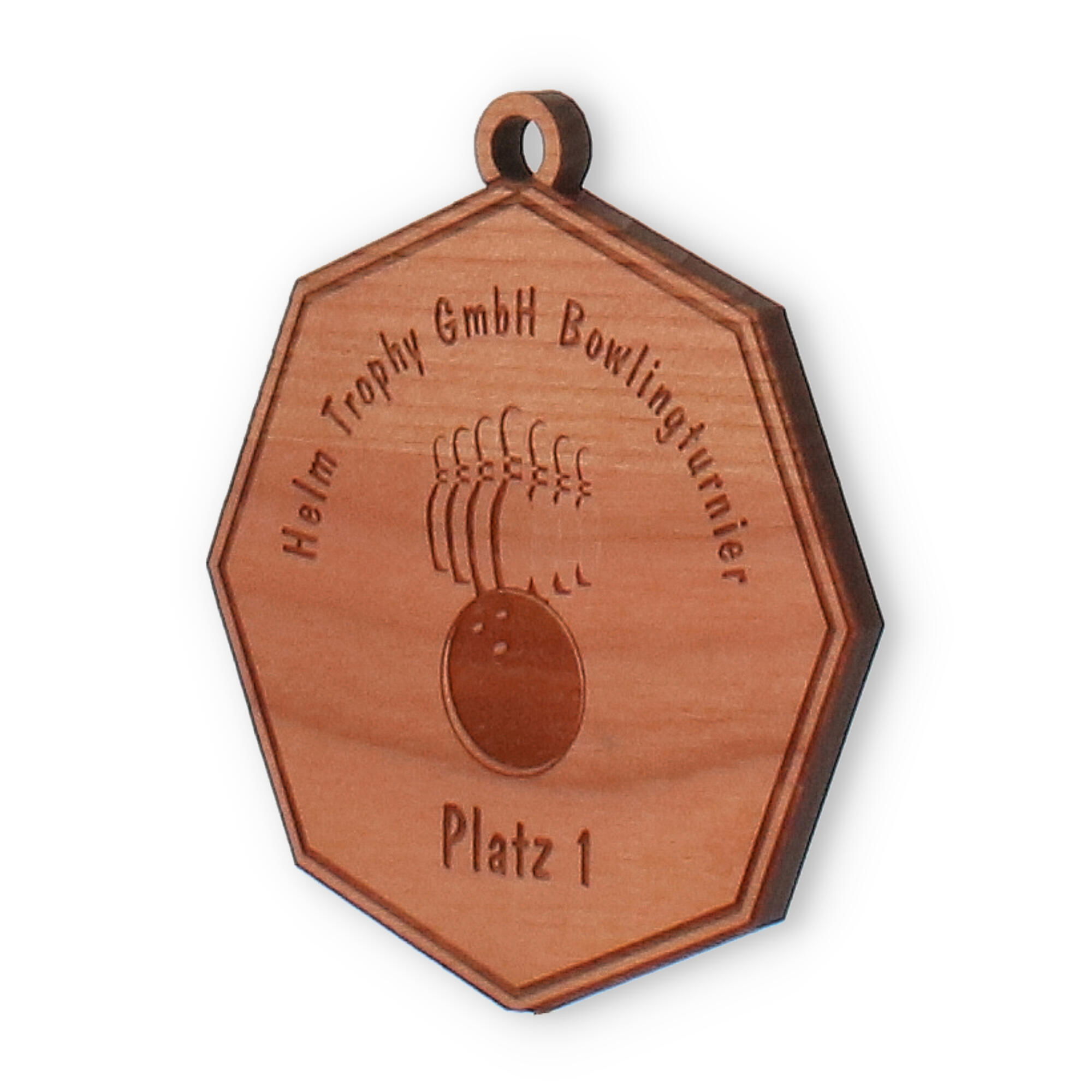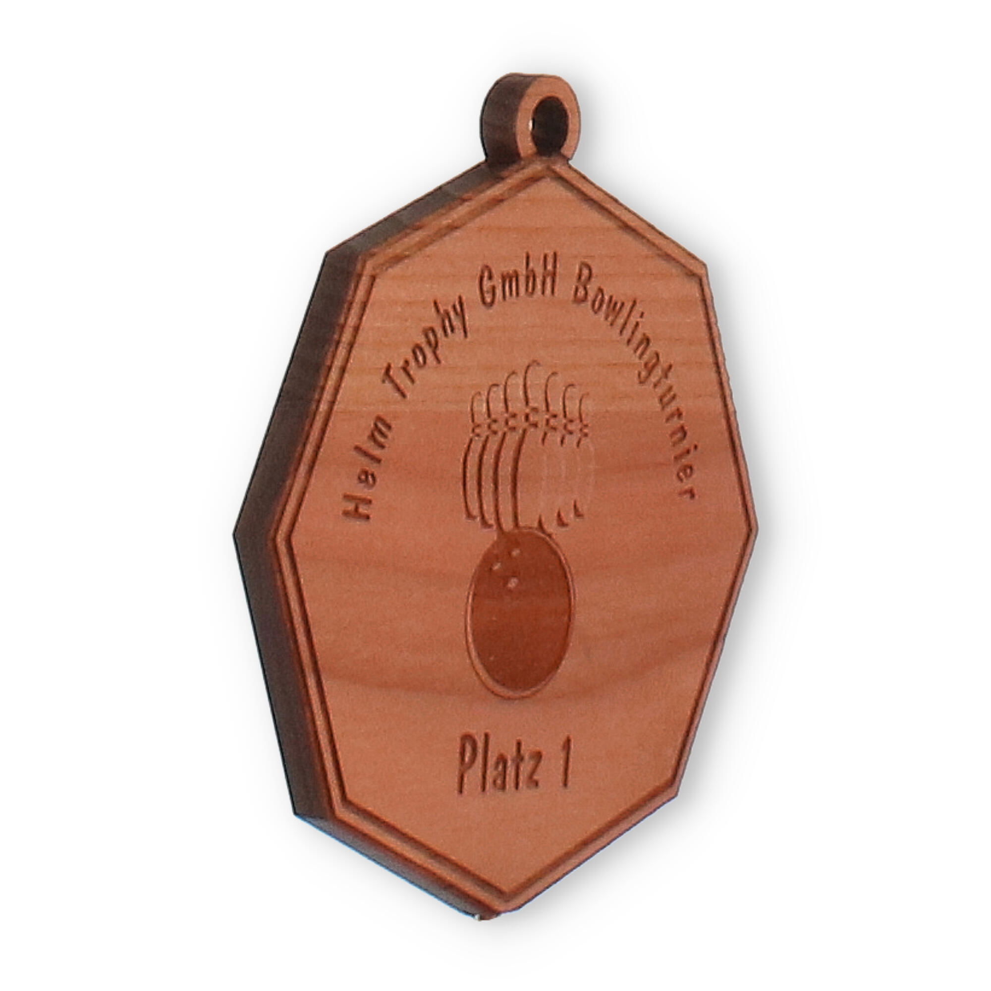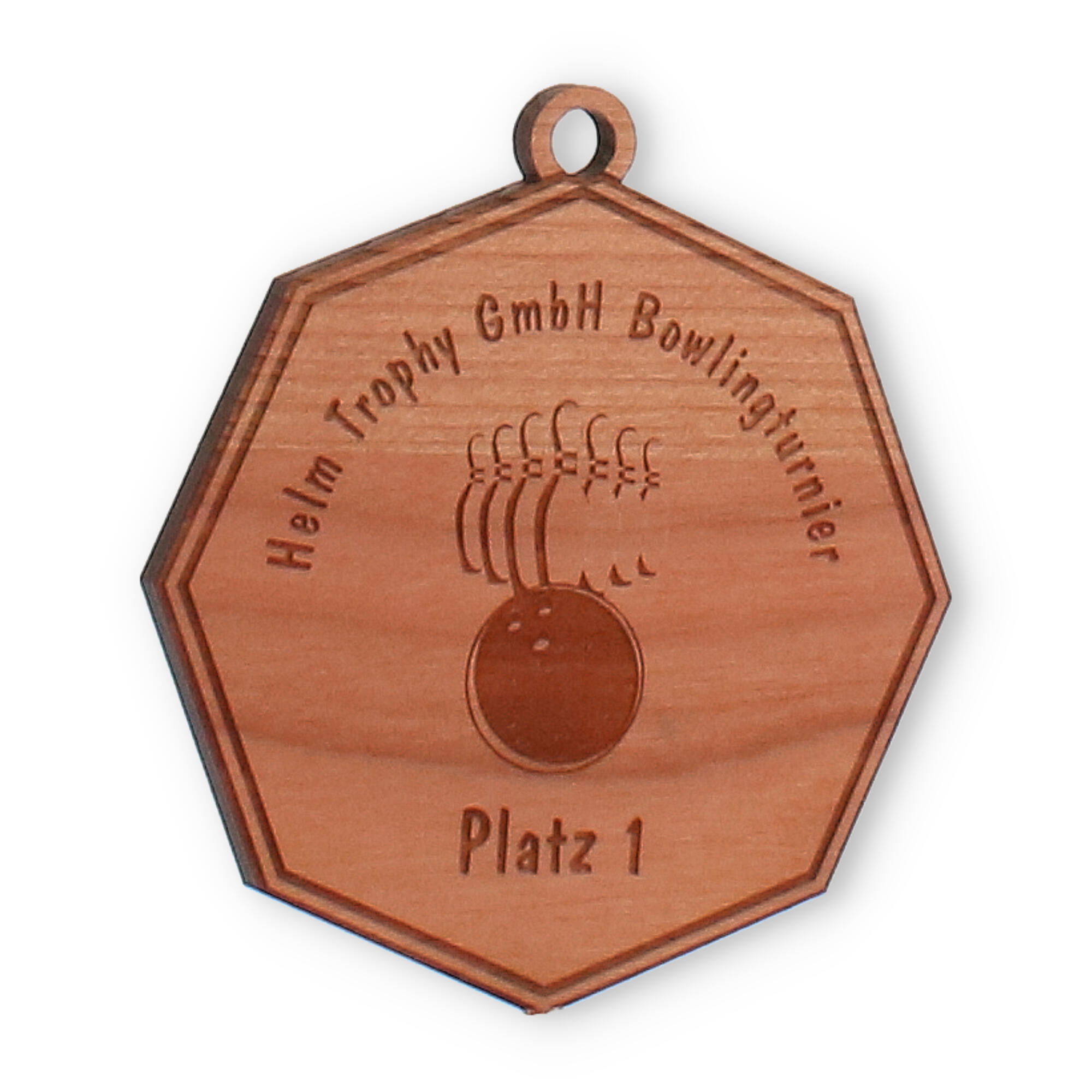 The Wooden medal Gerd, made from cherry solid wood, brings an elegant yet natural look to award ceremonies, making each recognition extra special. Its unique octagonal shape and detailed engravings showcase precision and artistry, providing a memorable keepsake for every recipient.