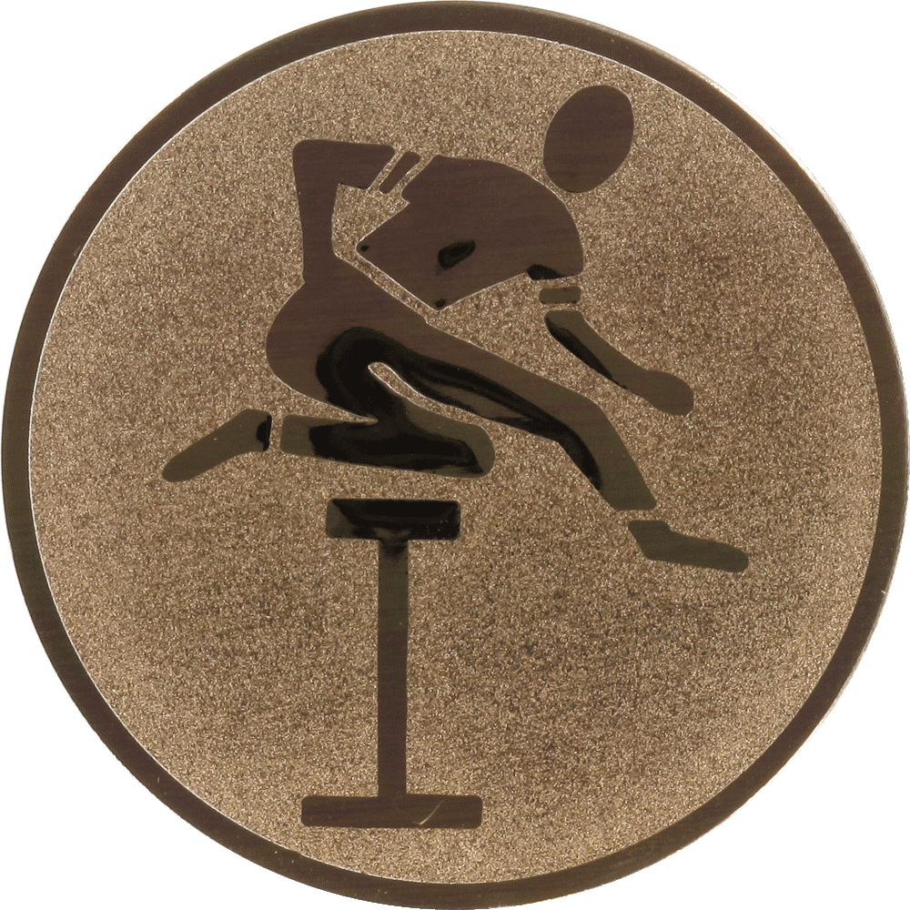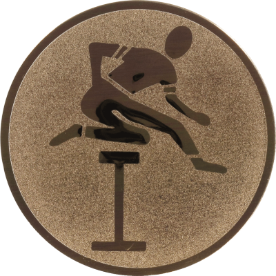 Este emblema en color bronce captura la esencia del atletismo. Con un diseño centrado en la figura de un corredor en acción, es ideal para competiciones de carreras de obstáculos. Fabricado en aluminio, su acabado meticuloso resalta en cada evento.