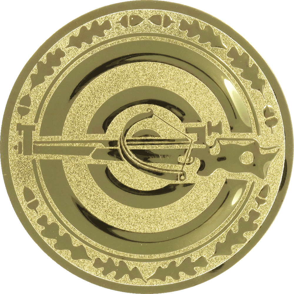 Además, su refinado color dorado otorga una apariencia noble, amplificando el valor emocional de cualquier reconocimiento. La destacada ballesta en el centro del diseño es un símbolo de destreza y precisión, atributos que son celebrados en cualquier competencia.