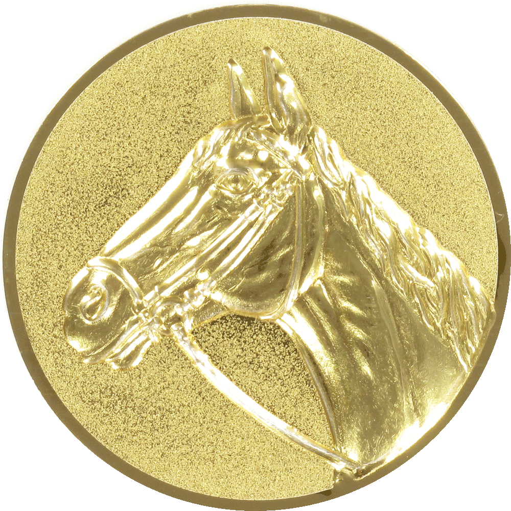 Este emblema de aluminio en color dorado es una pieza excelente para realzar tus trofeos ecuestres. La imagen en relieve de una cabeza de caballo ofrece un efecto tridimensional que captura la esencia y la majestuosidad de estos nobles animales.