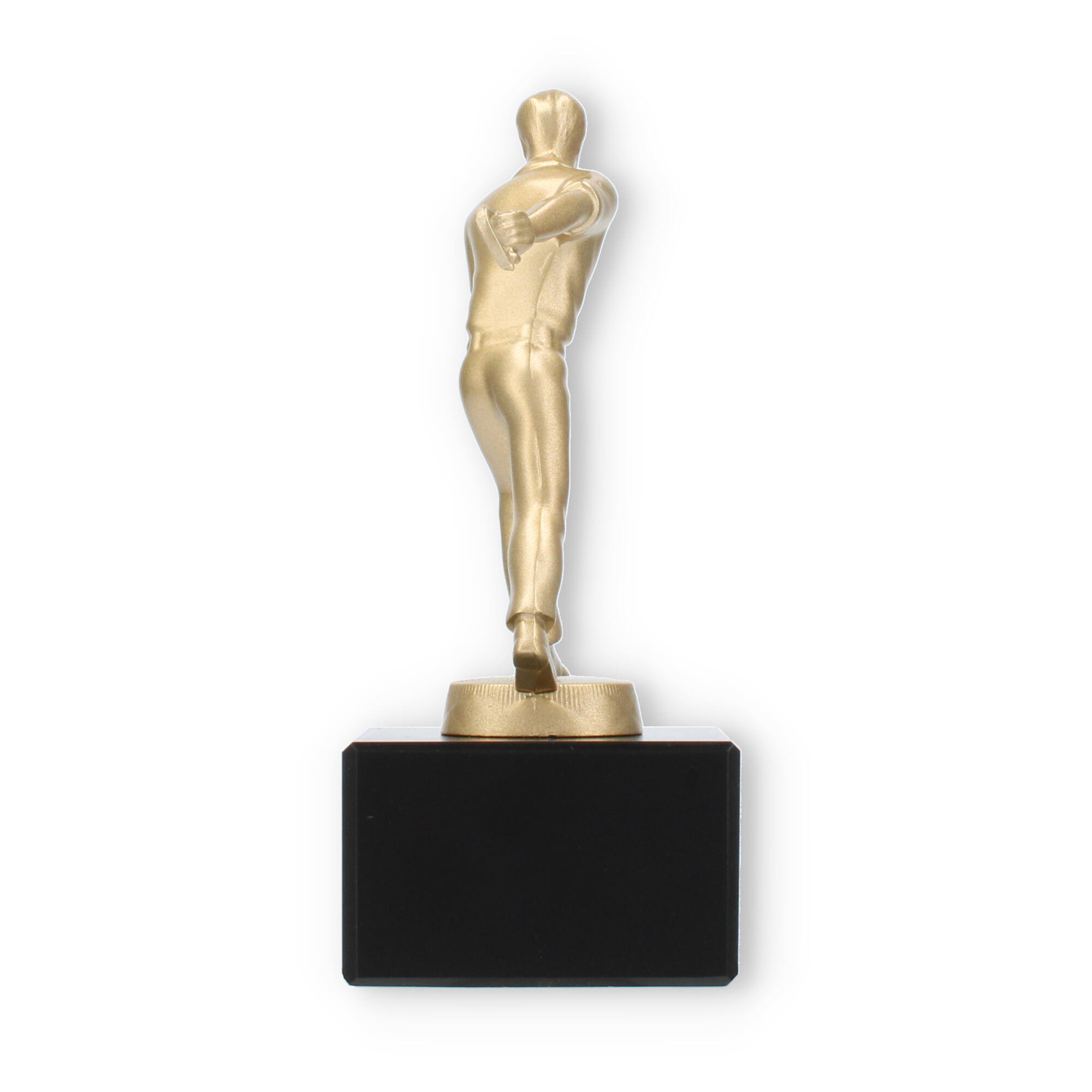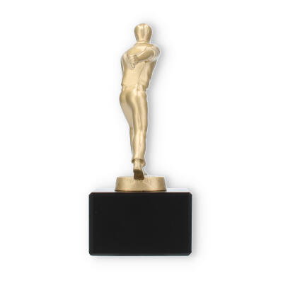 Imagina el instante en que uno de tus participantes sostiene el trofeo figura de metal en oro metálico sobre su base de mármol negro. Esta pieza no solo simboliza un triunfo, sino que también cuenta una historia de esfuerzo y dedicación. Diseñada cuidadosamente, la figura presenta detalles que capturan la energía del momento, desde las curvas del cuerpo hasta el brillo metálico que refleja la luz.