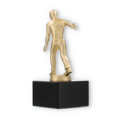 Cada parte del trofeo está armoniosamente equilibrada. La figura, con 11,3 cm de altura, se monta firmemente sobre el mármol negro de 65 mm, creando una imponente declaración de victoria. Esta sólida base no solo aporta estabilidad, sino que su textura pulida contrasta elegantemente con el acabado metálico de la figura.