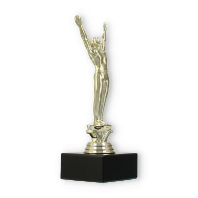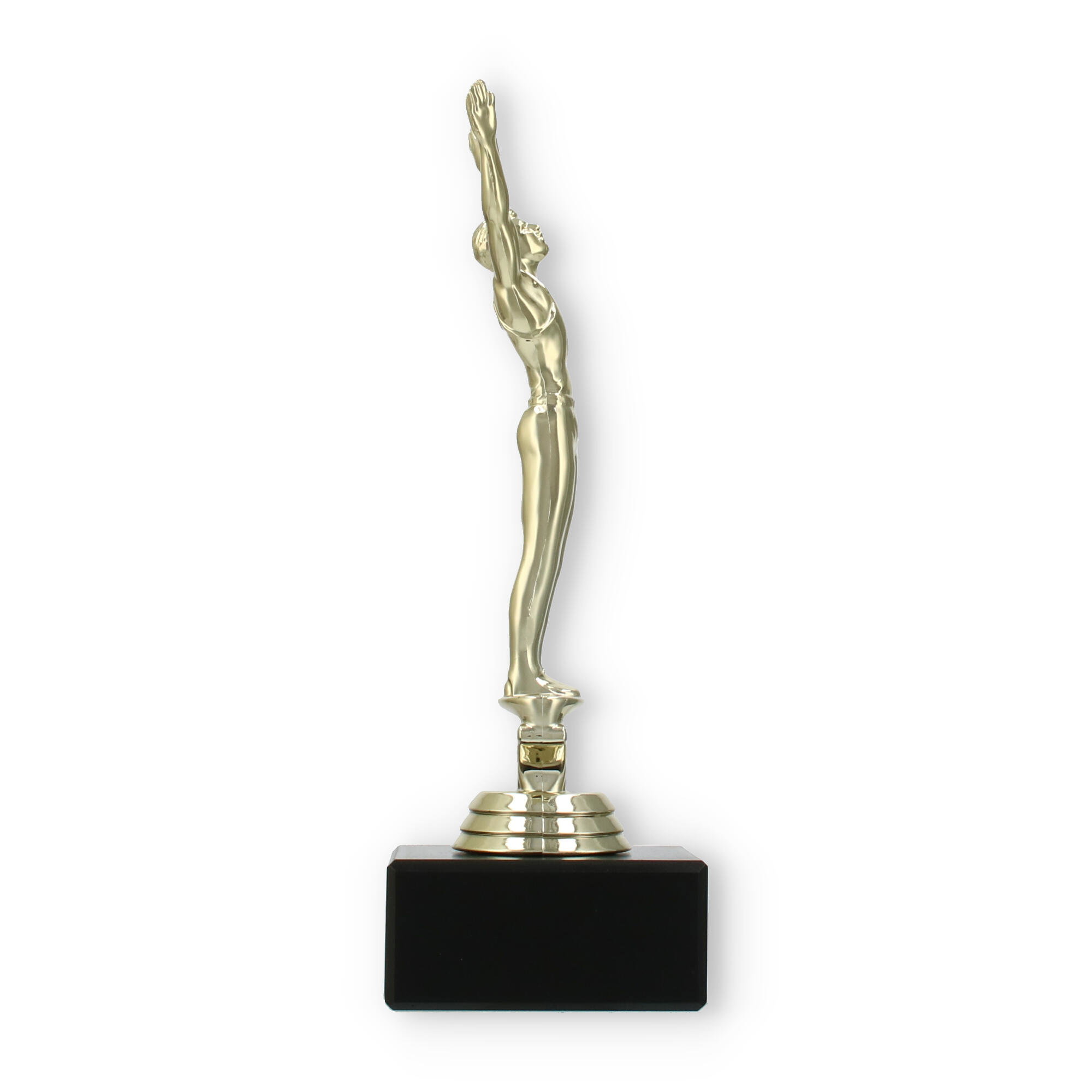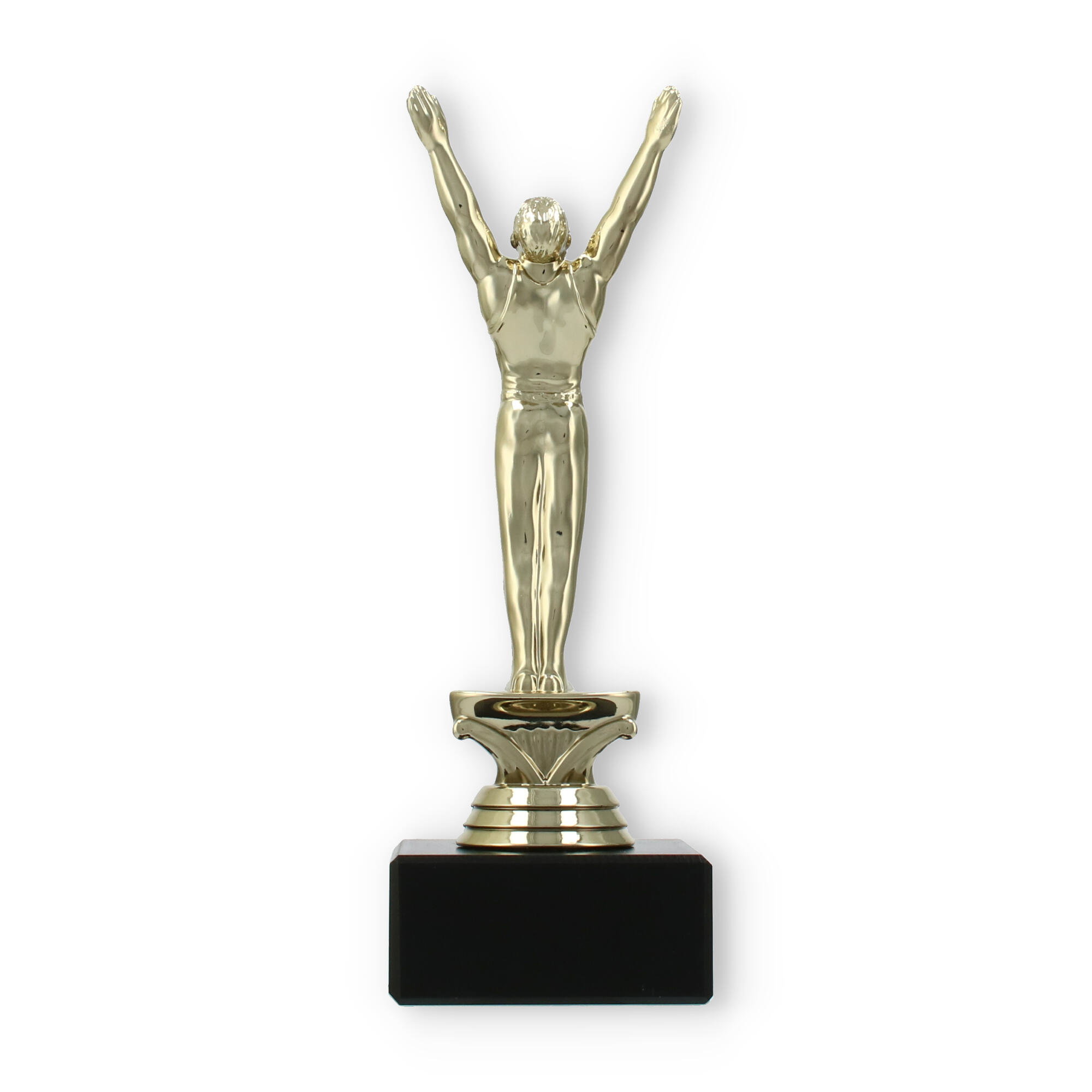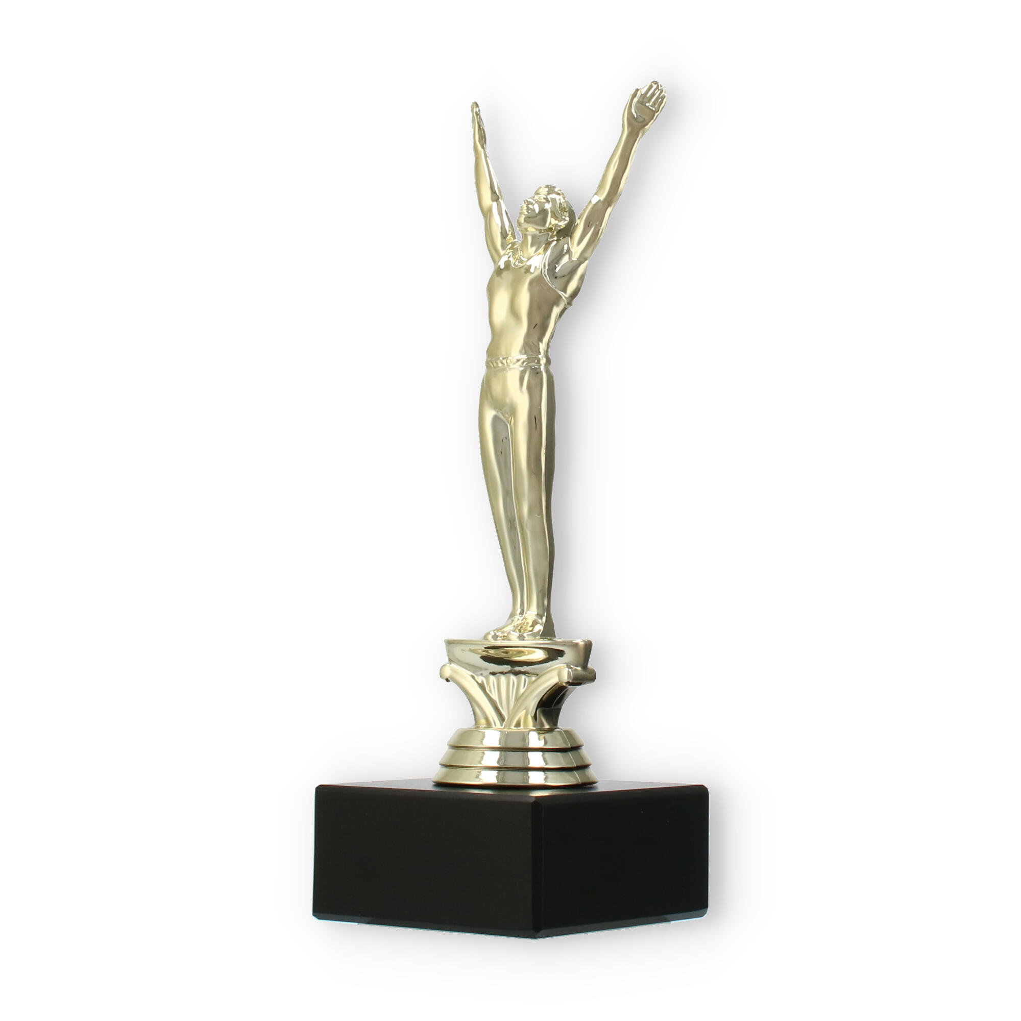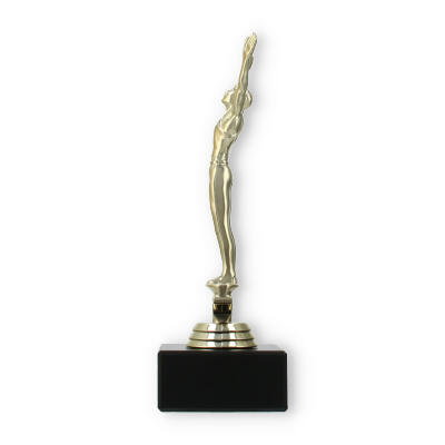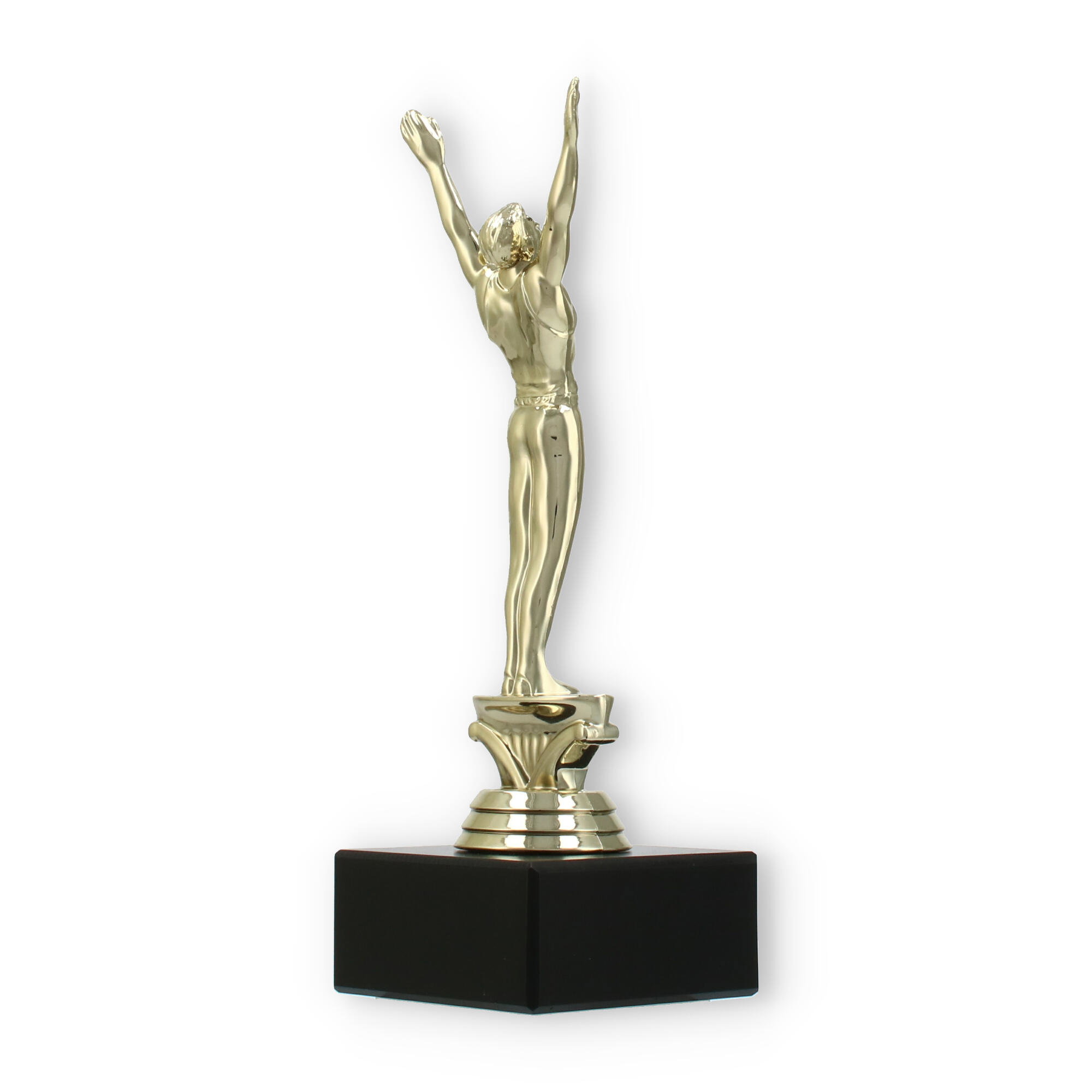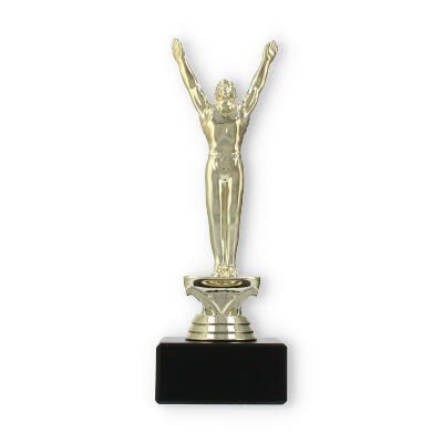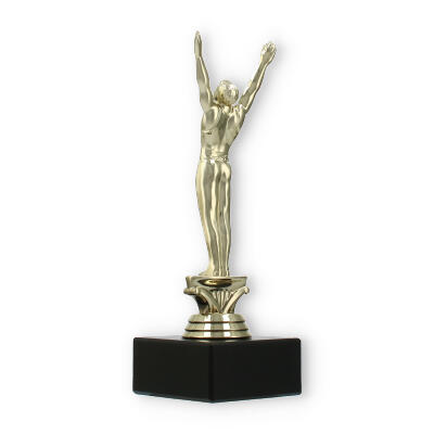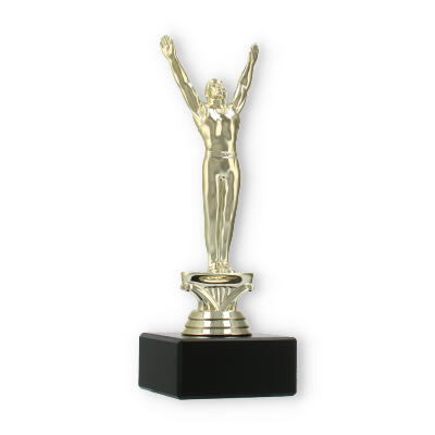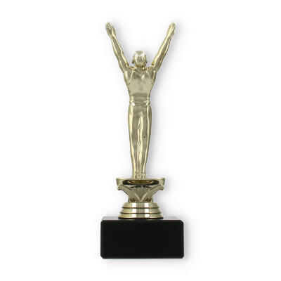 Los trofeos de Gimnasia hombres capturan la esencia del logro atlético en su diseño. La figura, de 16 cm, está realizada en plástico resistente con un acabado en color dorado que simboliza la grandeza de la victoria. La base cuadrada de mármol negro no solo aporta estabilidad, sino que también añade un toque de elegancia a cada ceremonia de premiación.