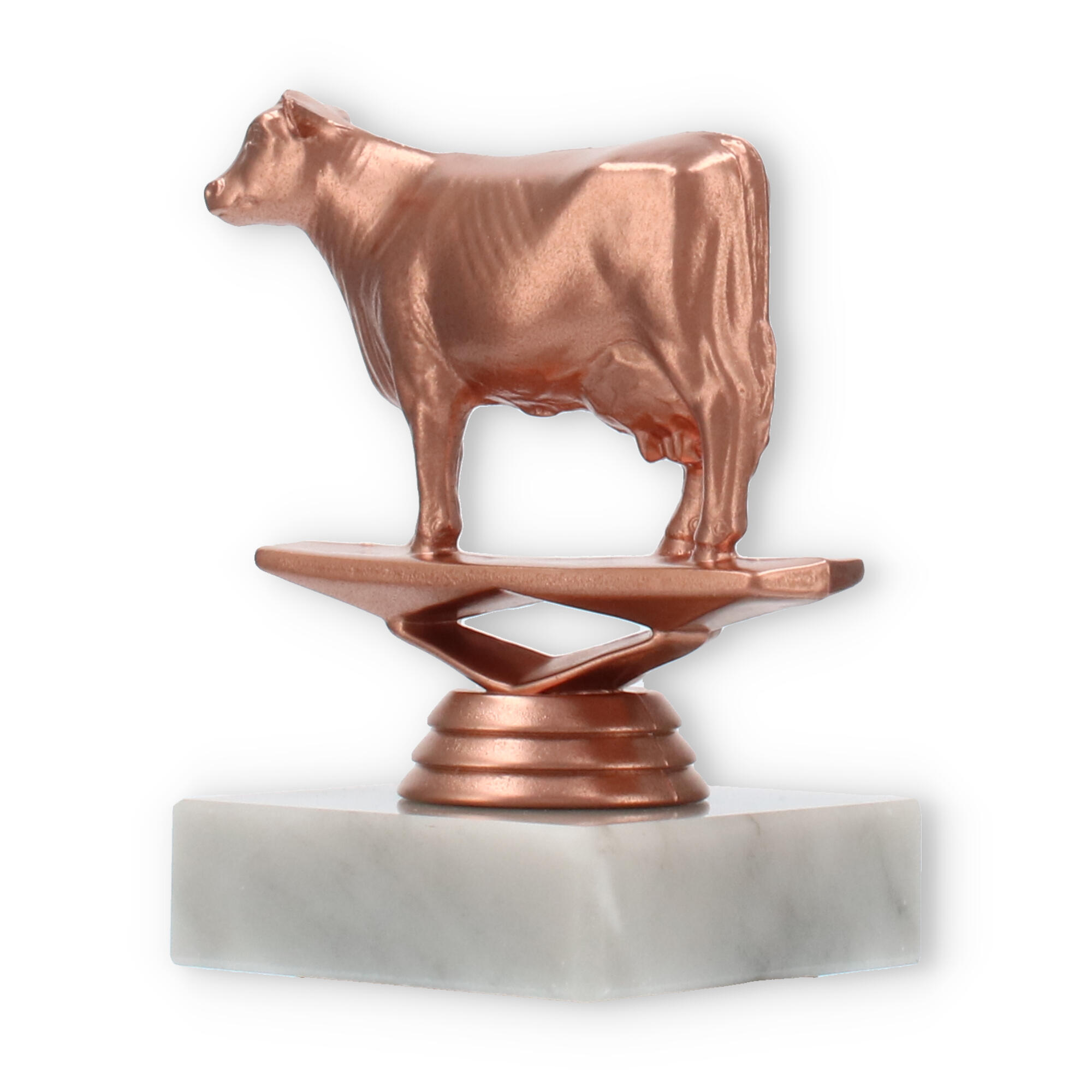 Con una base de mármol en color blanco, la figura refleja elegancia y estabilidad. La estructura detallada de la vaca es un reflejo de la atención al detalle y el respeto por la diversidad de eventos donde puede ser otorgada, desde competencias agrícolas hasta acontecimientos culturales.