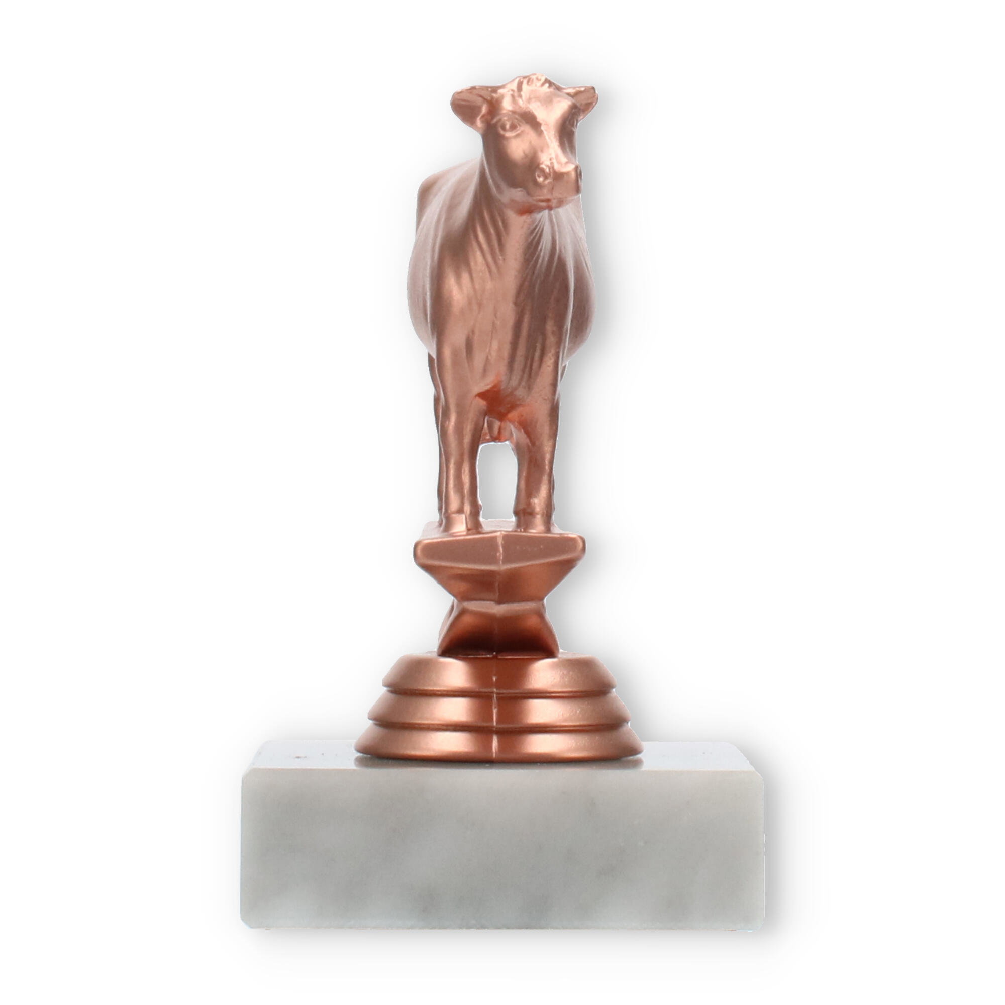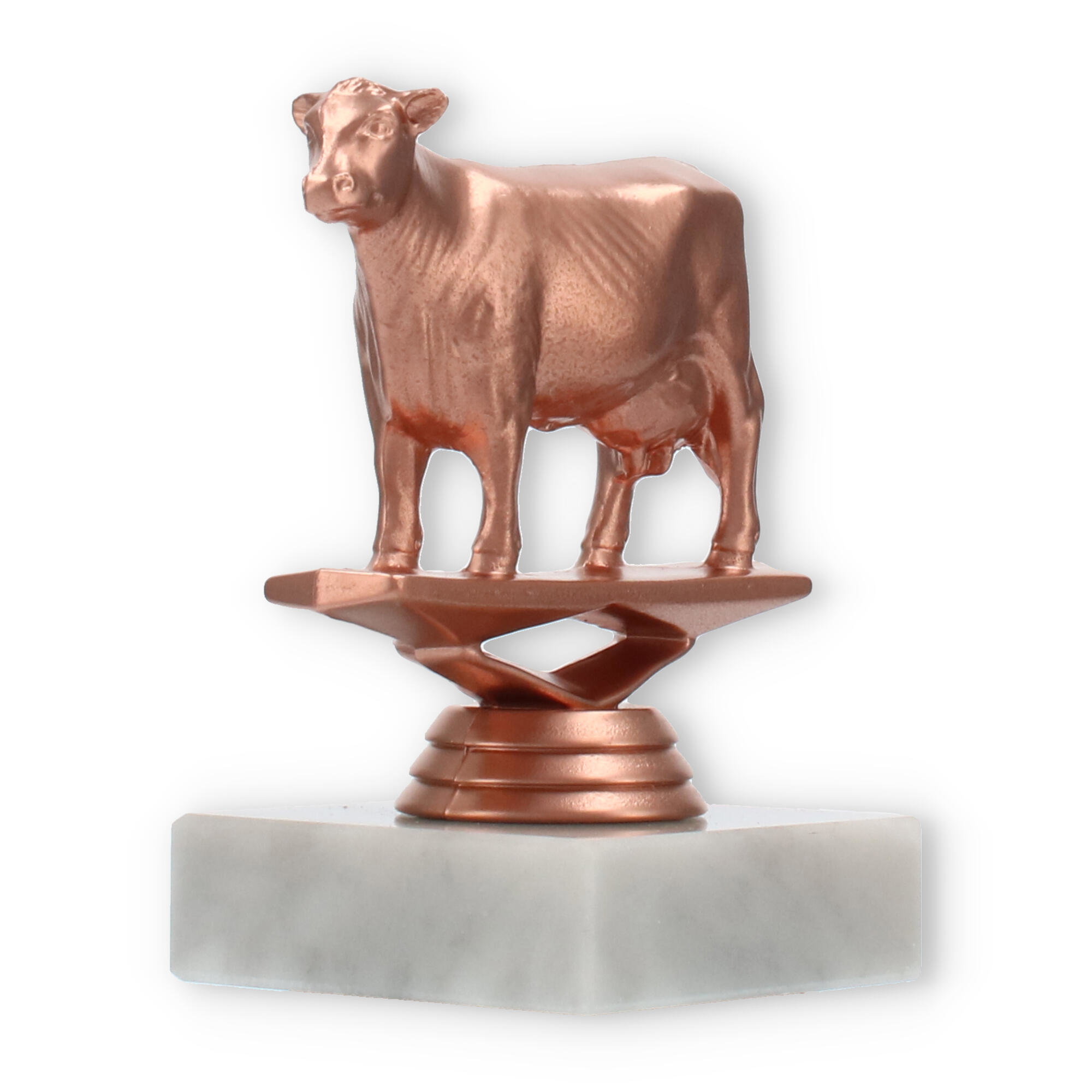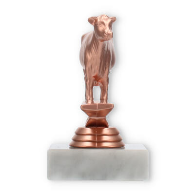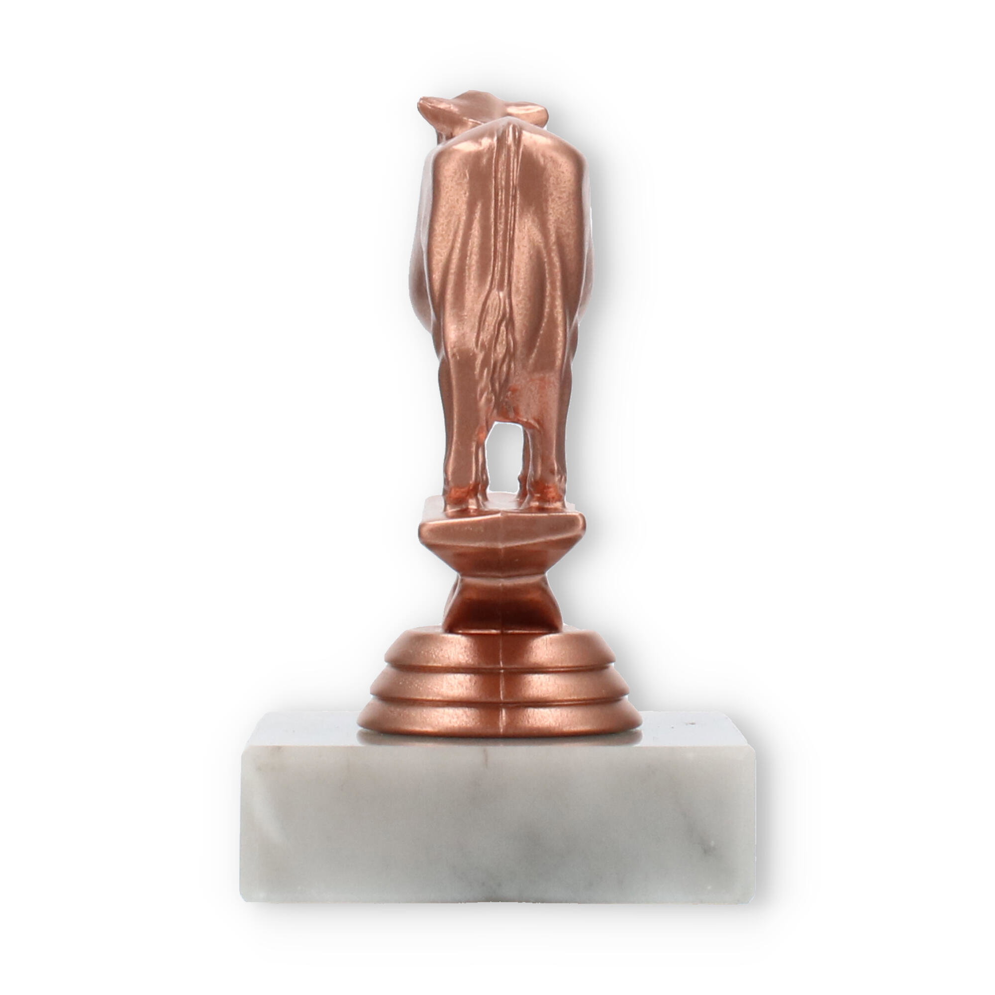La figura de trofeo de vaca, con base de mármol en color blanco y detalles en color bronceado, es el reconocimiento perfecto para celebraciones únicas. Personalizada con grabado láser, convierte cada premiación en un evento inolvidable. Disponible en un tamaño destacado.