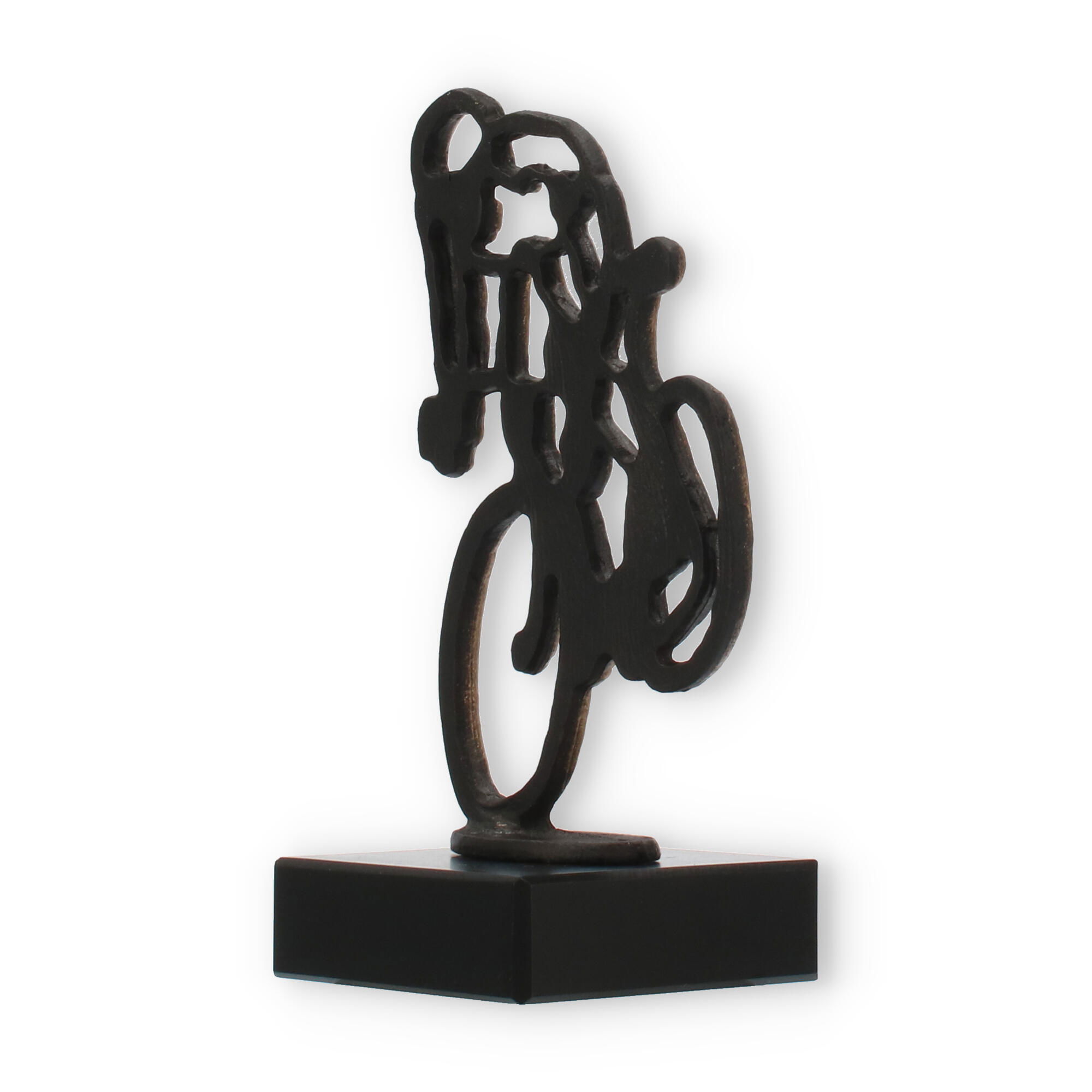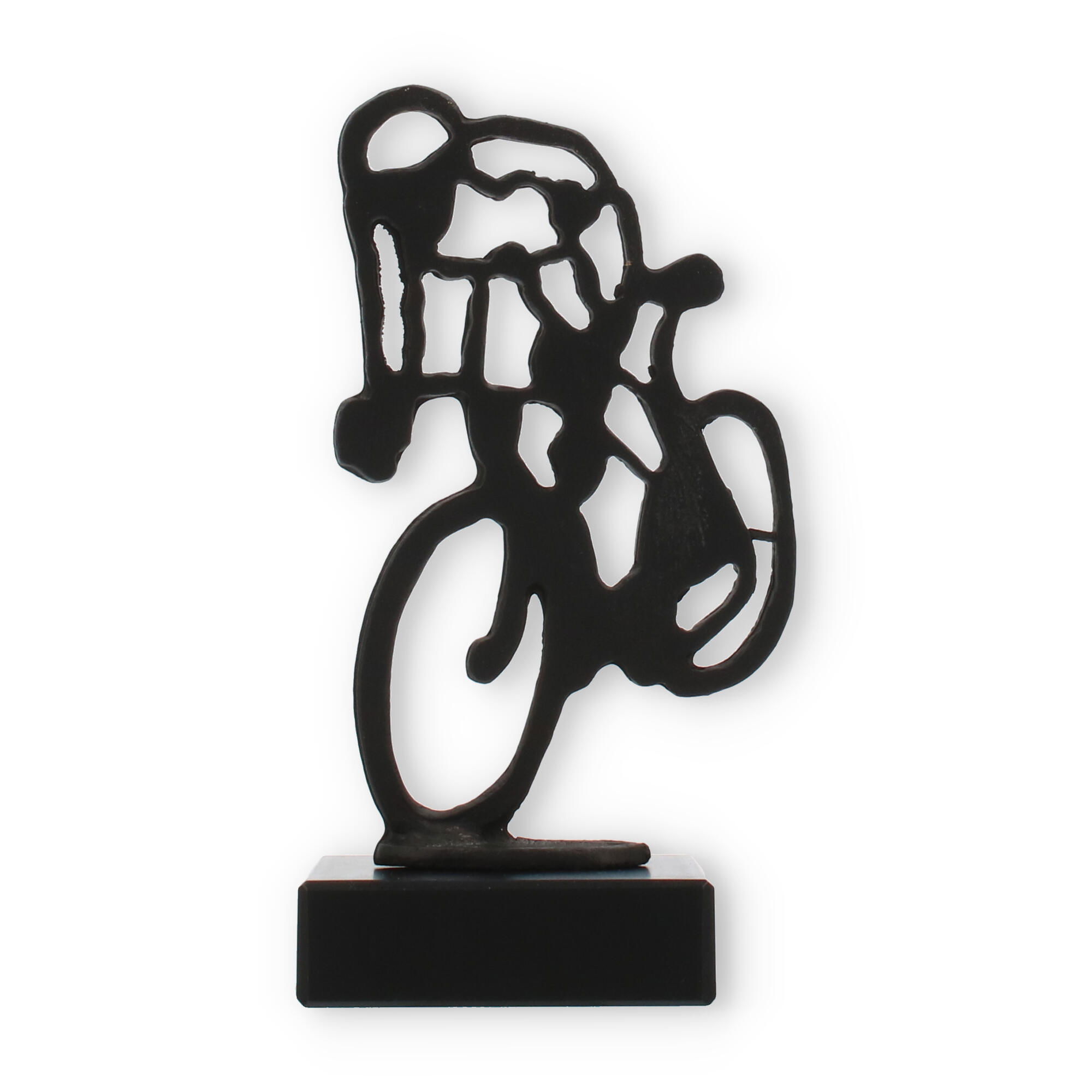 Con 14,5 cm de altura, el trofeo Ciclista es lo suficientemente compacto para ocupar un lugar especial en cualquier estantería o vitrina. Su peso de 401 g lo hace fácil de manejar, permitiendo que cada ganador sienta la gratificación de su esfuerzo al sostenerlo en sus manos.