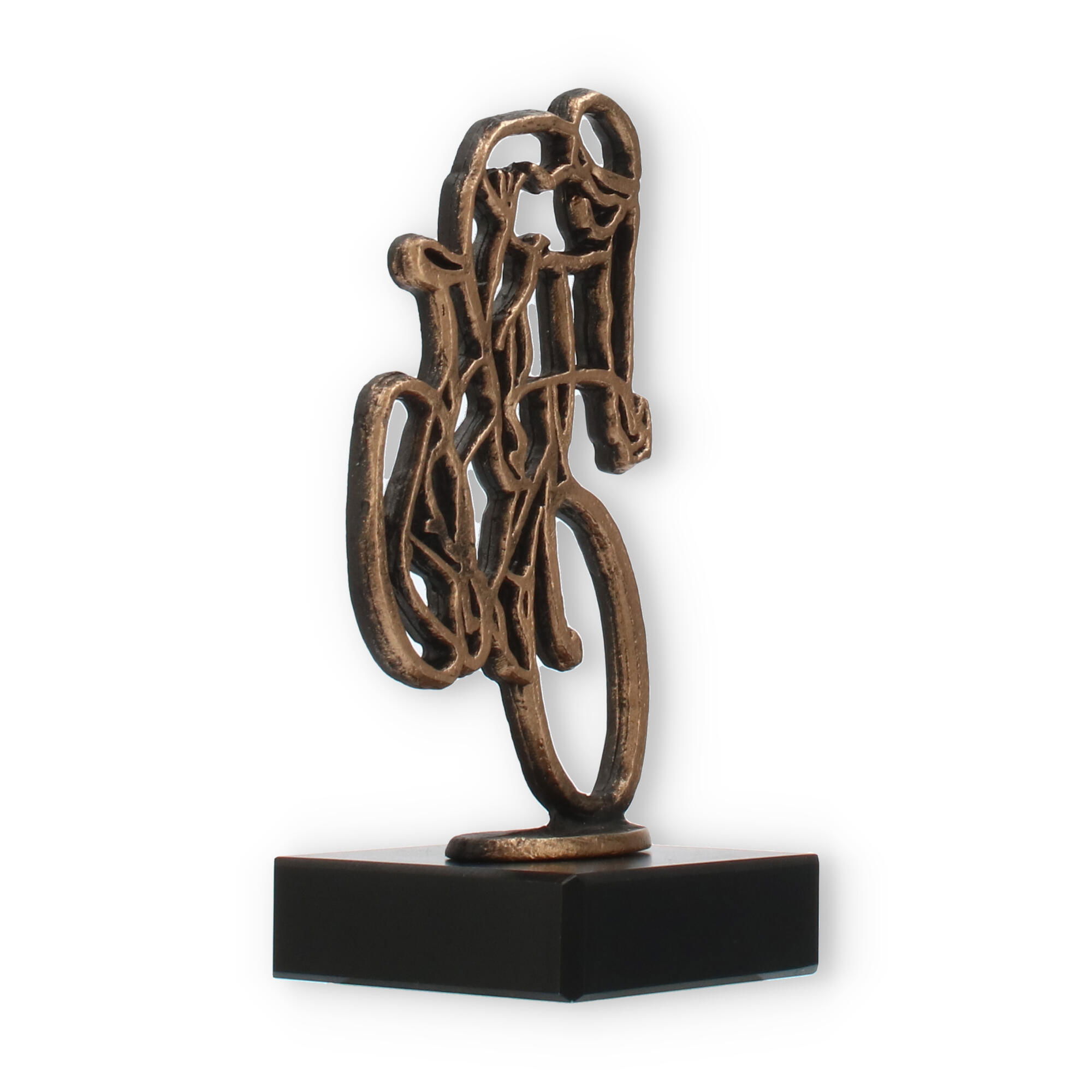El trofeo Ciclista está diseñado especialmente para los apasionados del ciclismo. Cada figura, con su diseño en color oro viejo, simboliza el esfuerzo y la dedicación que llevan a la victoria. El zamac, utilizado para la figura, asegura una resistencia que perdurará a lo largo del tiempo, mientras que su acabado artístico añade un toque moderno y estilizado.